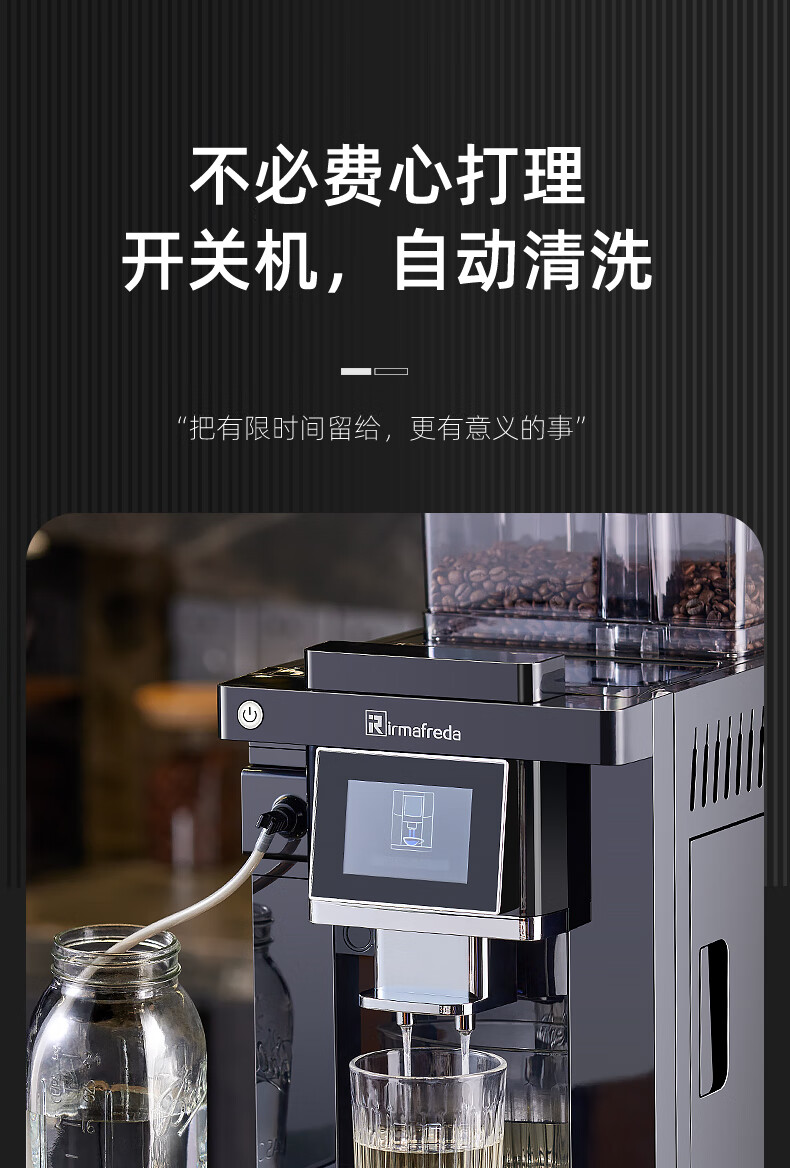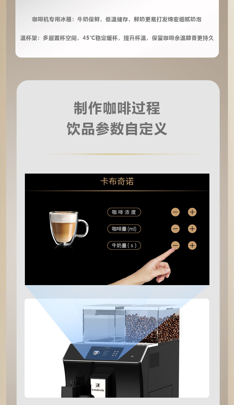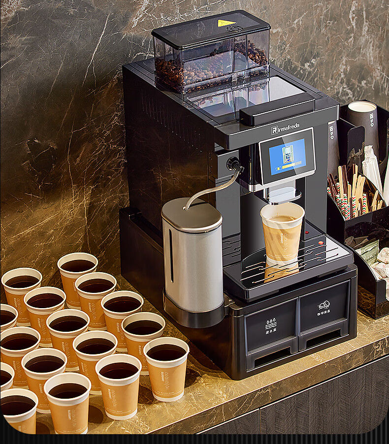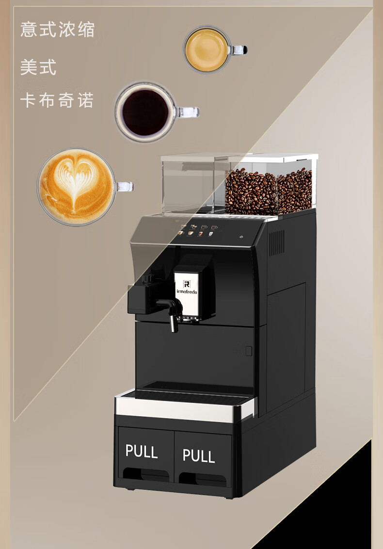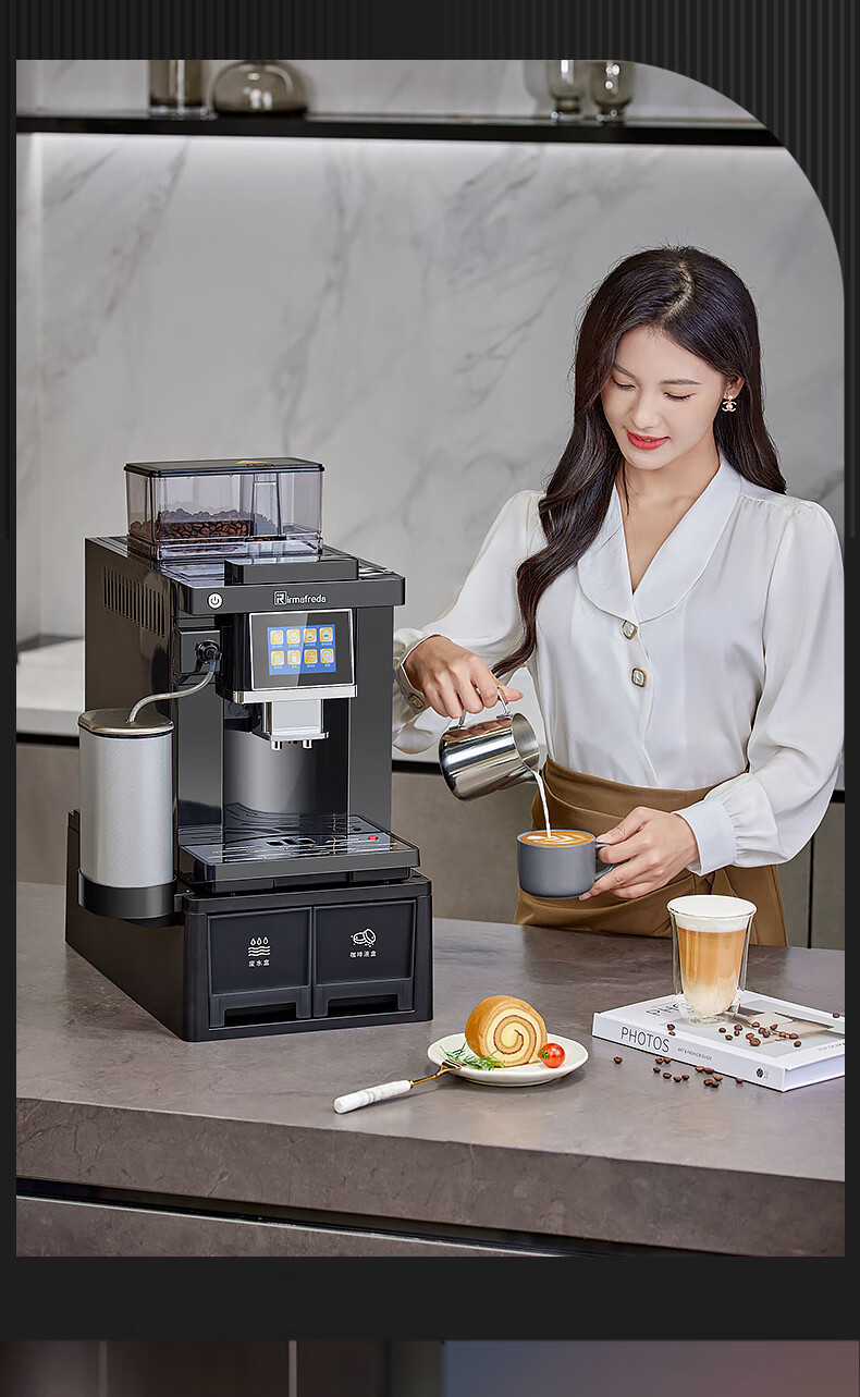 Irmafreda Elfeld coffee machine fully automatic grinding all-in-one milk foam extraction commercial freshly ground household American bean powder dual-purpose office professional espresso coffee machine office business use + upgraded refrigerator + ice maker + cup holder