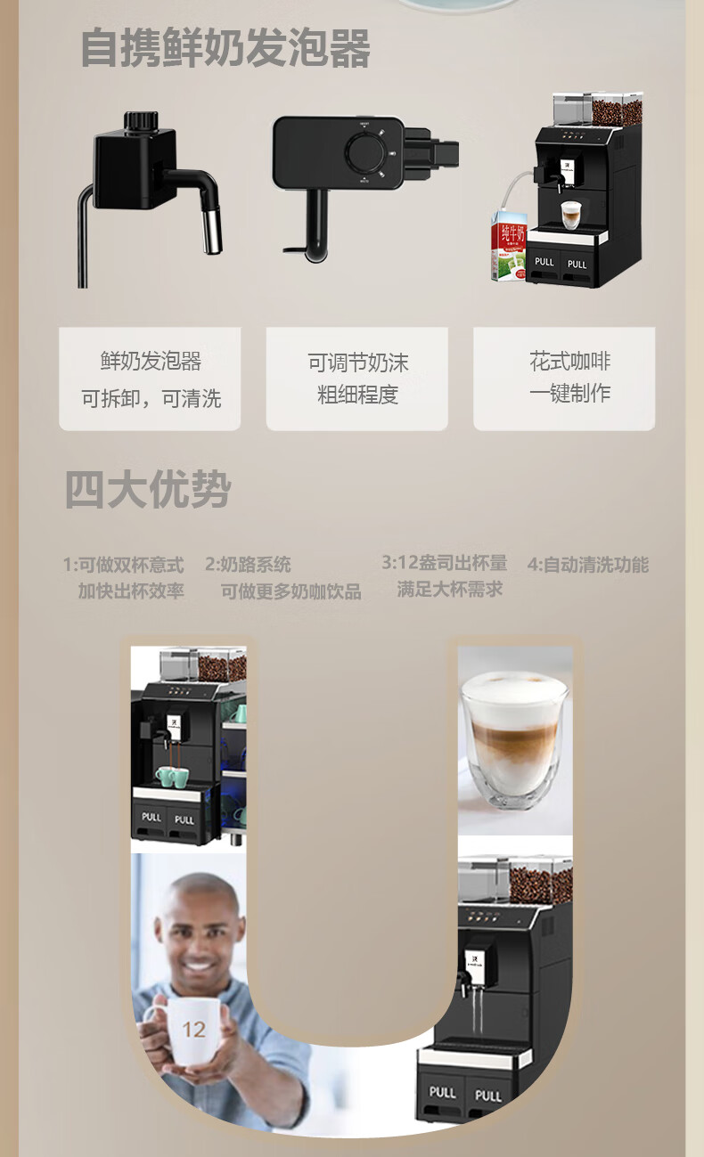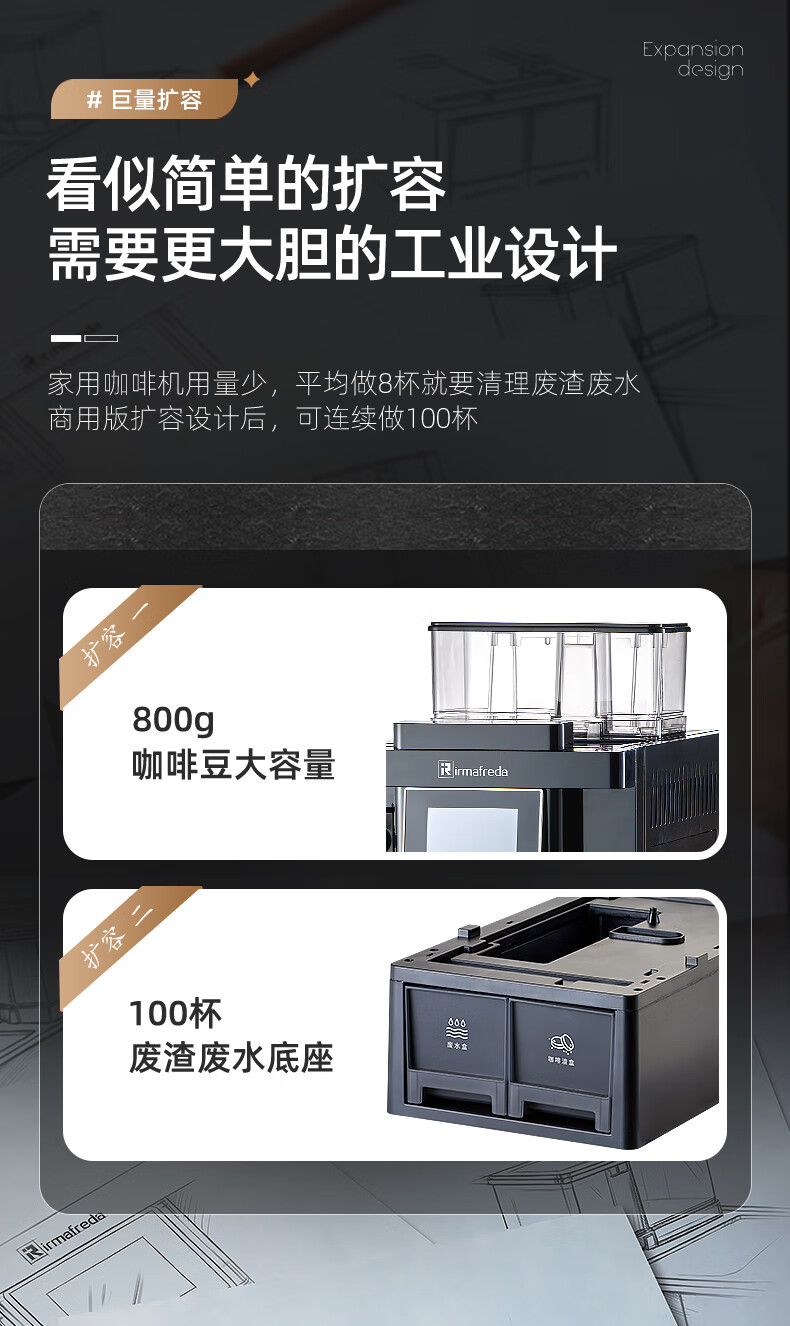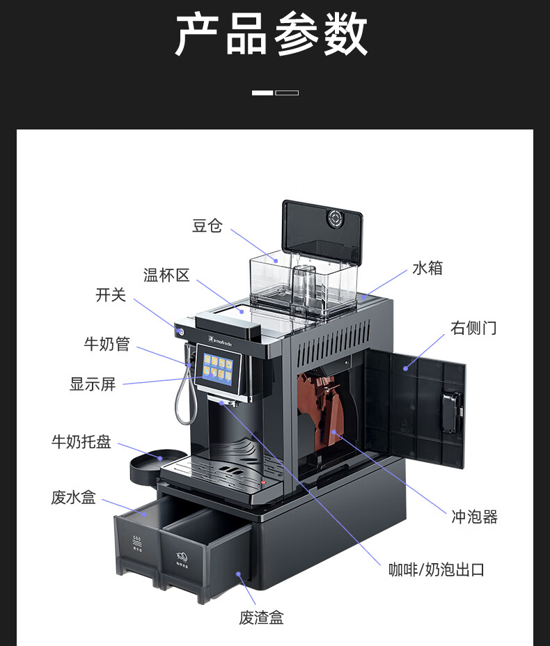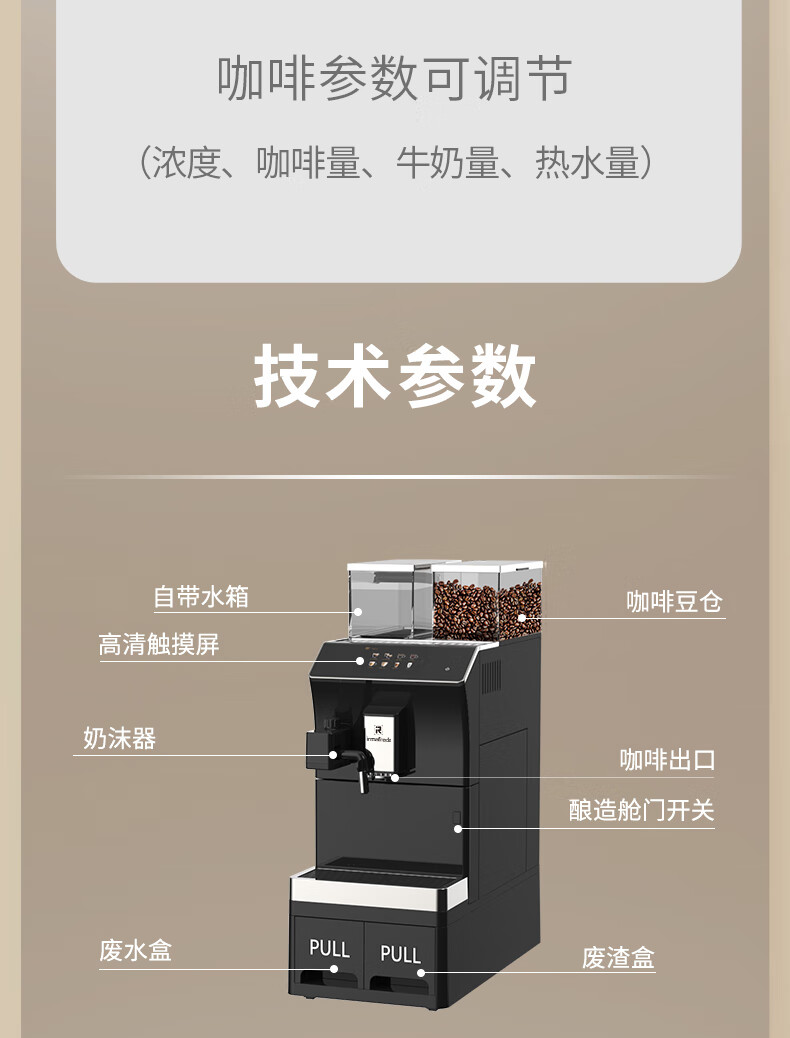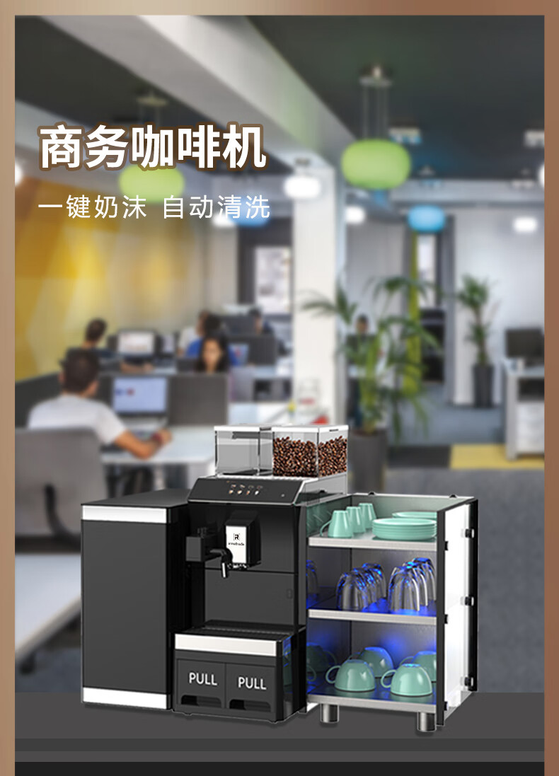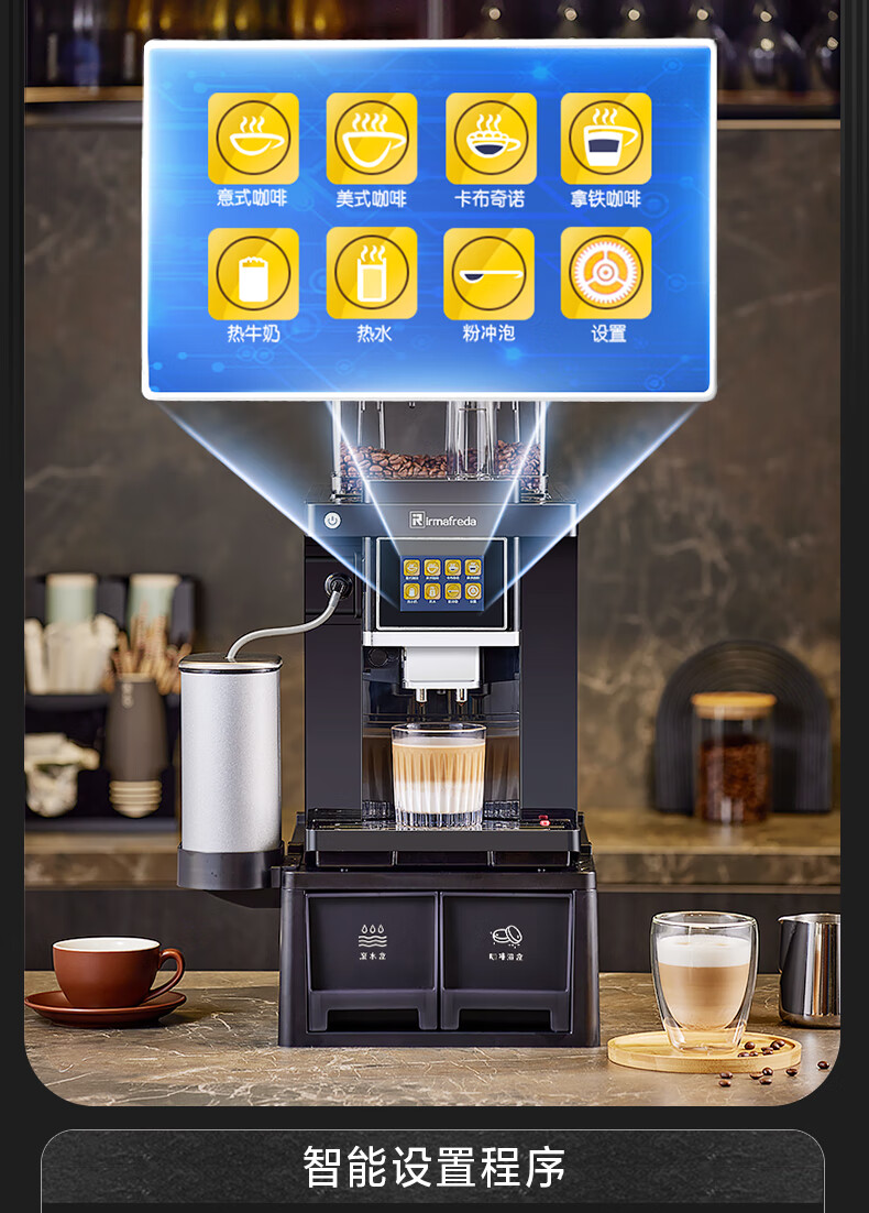 Irmafreda Elfeld coffee machine fully automatic grinding all-in-one milk foam extraction commercial freshly ground household American bean powder dual-purpose office professional espresso coffee machine office business use + upgraded refrigerator + ice maker + cup holder