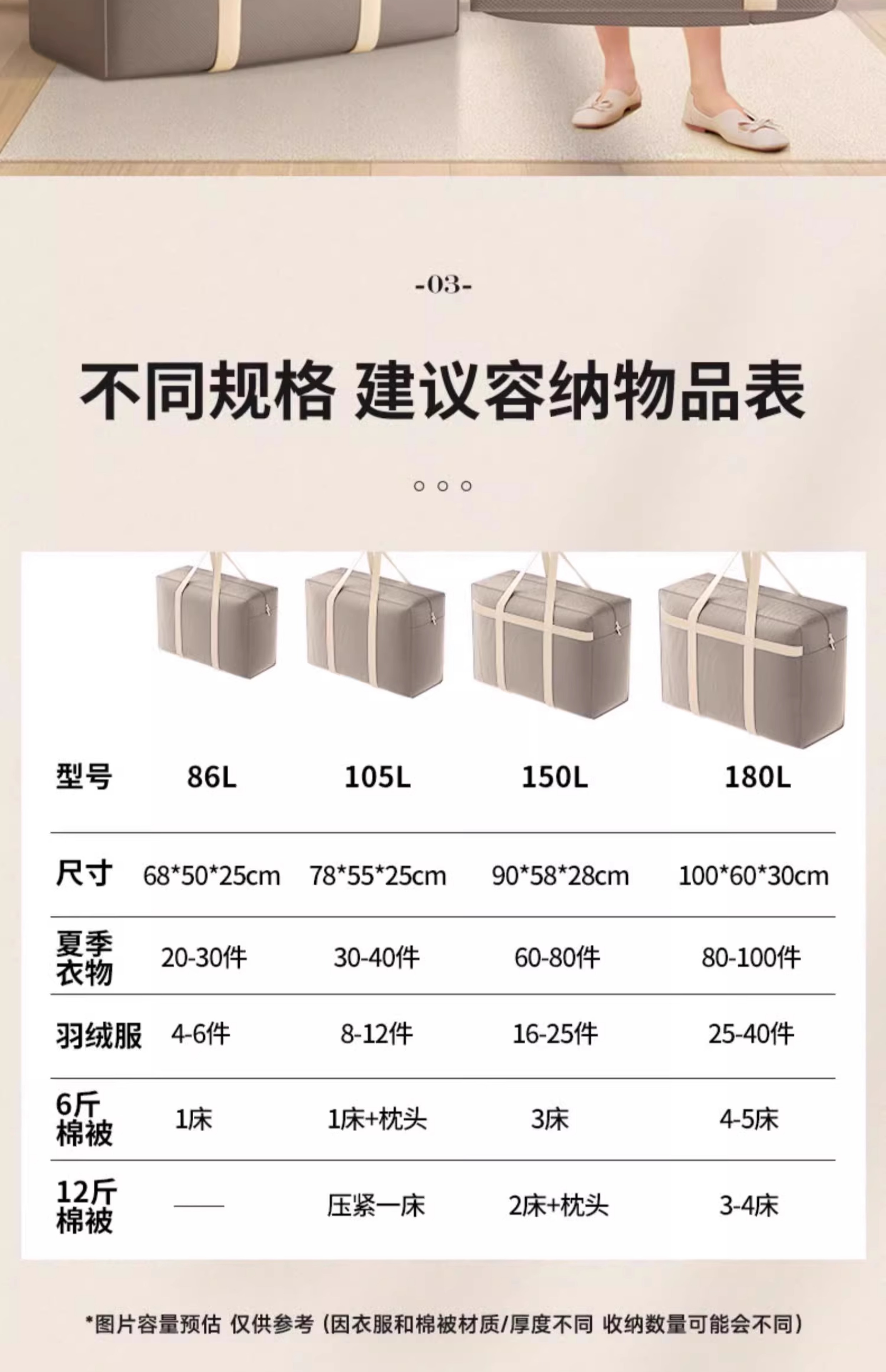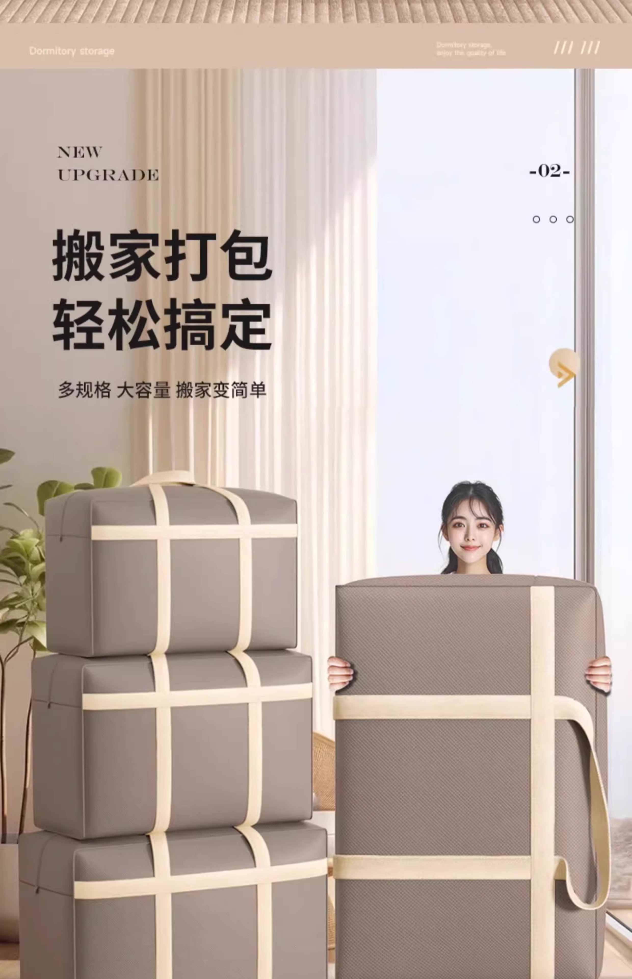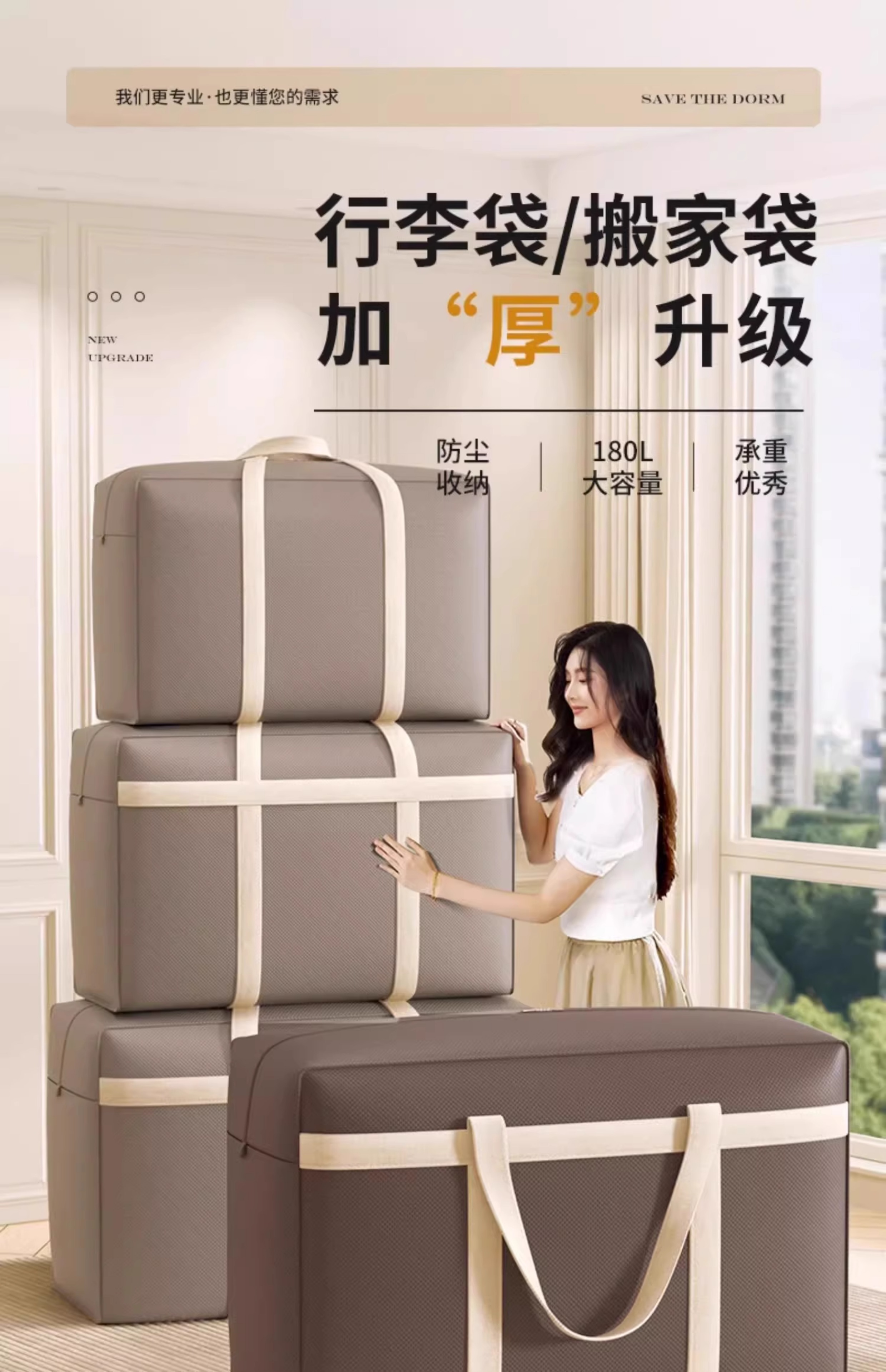 Baicaoyuan student quilt luggage bag dormitory bedding mattress storage bag special moving packing bag for living on campus 105L dark coffee 1 piece - thickened and strong load-bearing