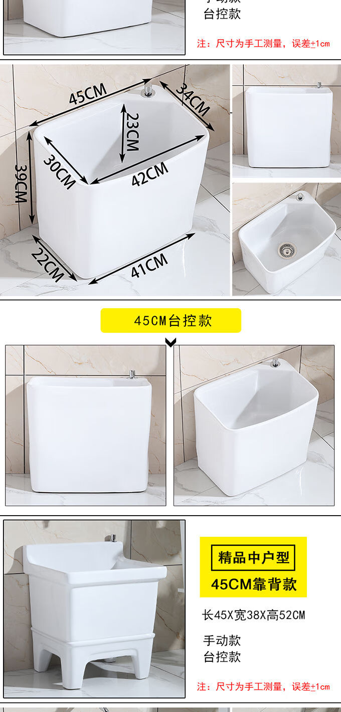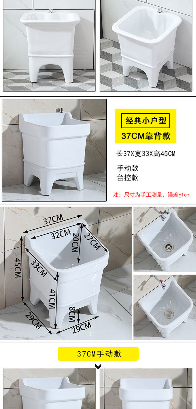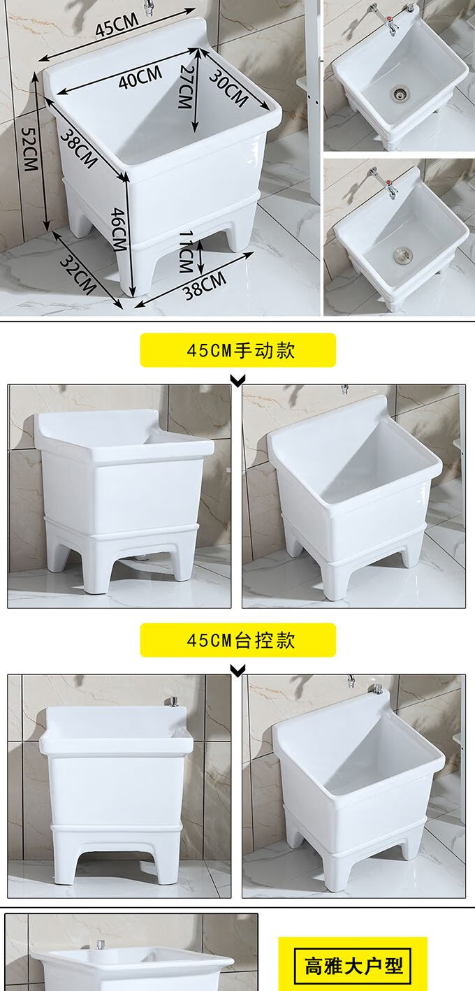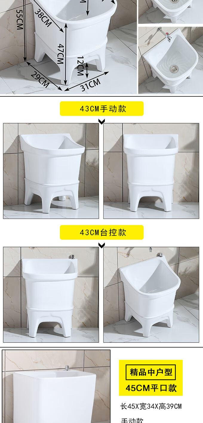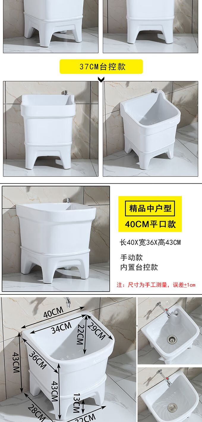 Mopeng mop pool integrated basin ceramic balcony mop pool large square long mop washing wide mop basin table-controlled automatic sink 36 cm manual high-bend faucet