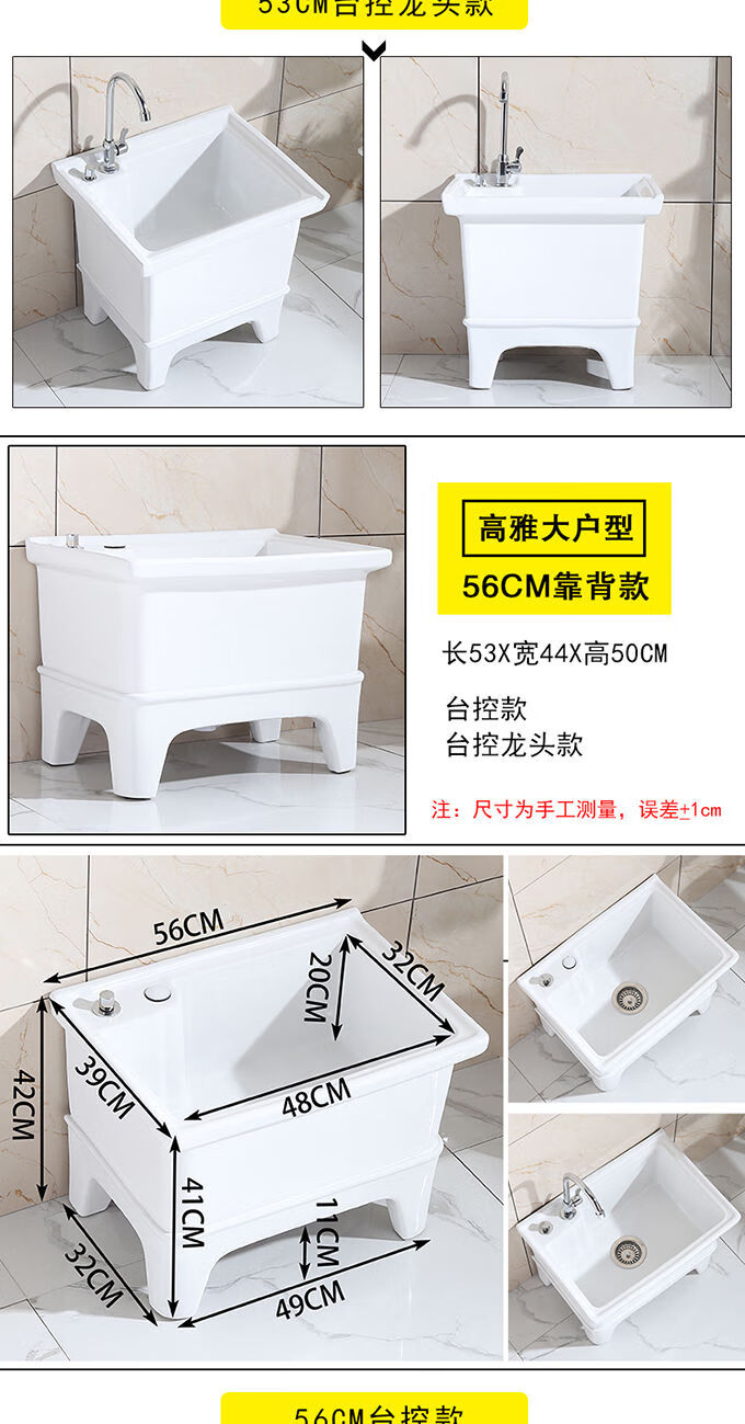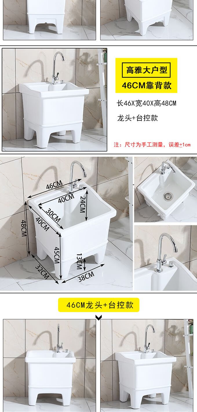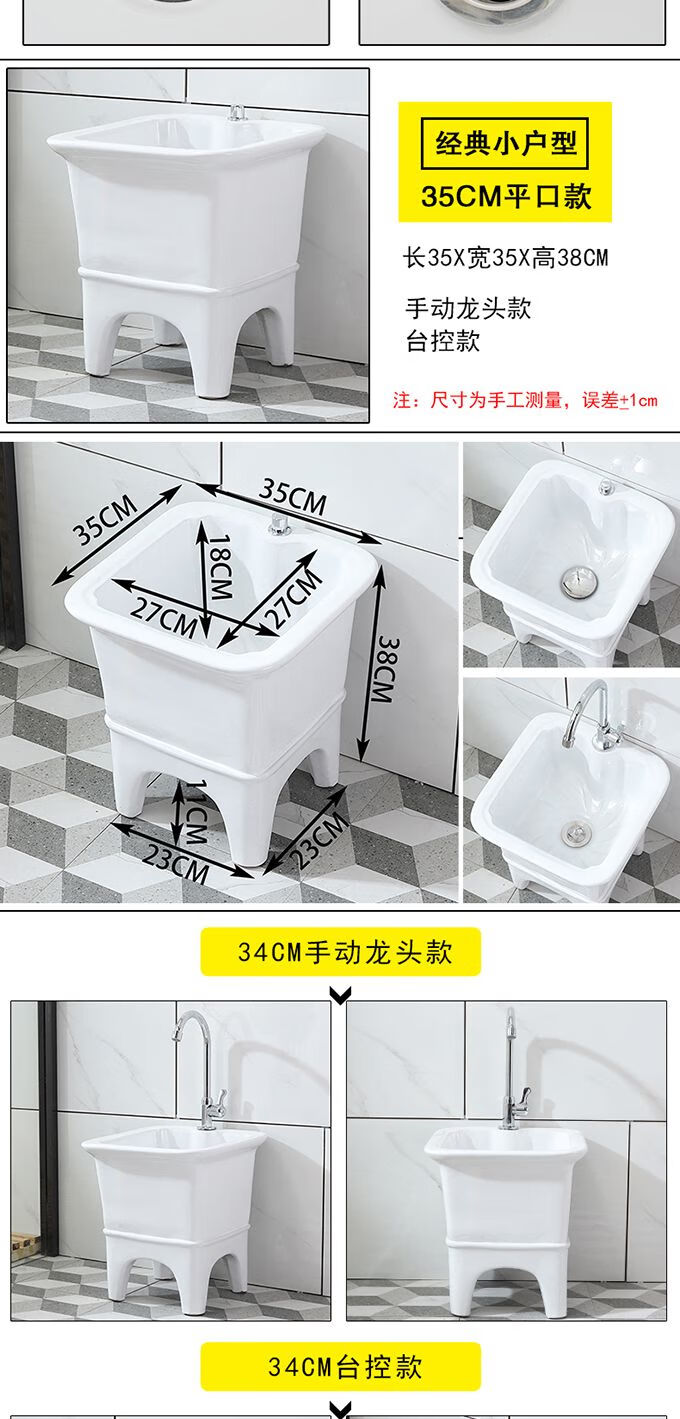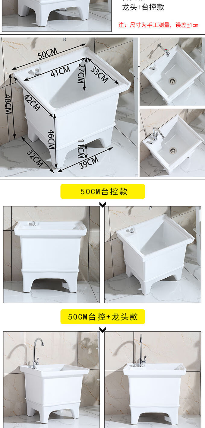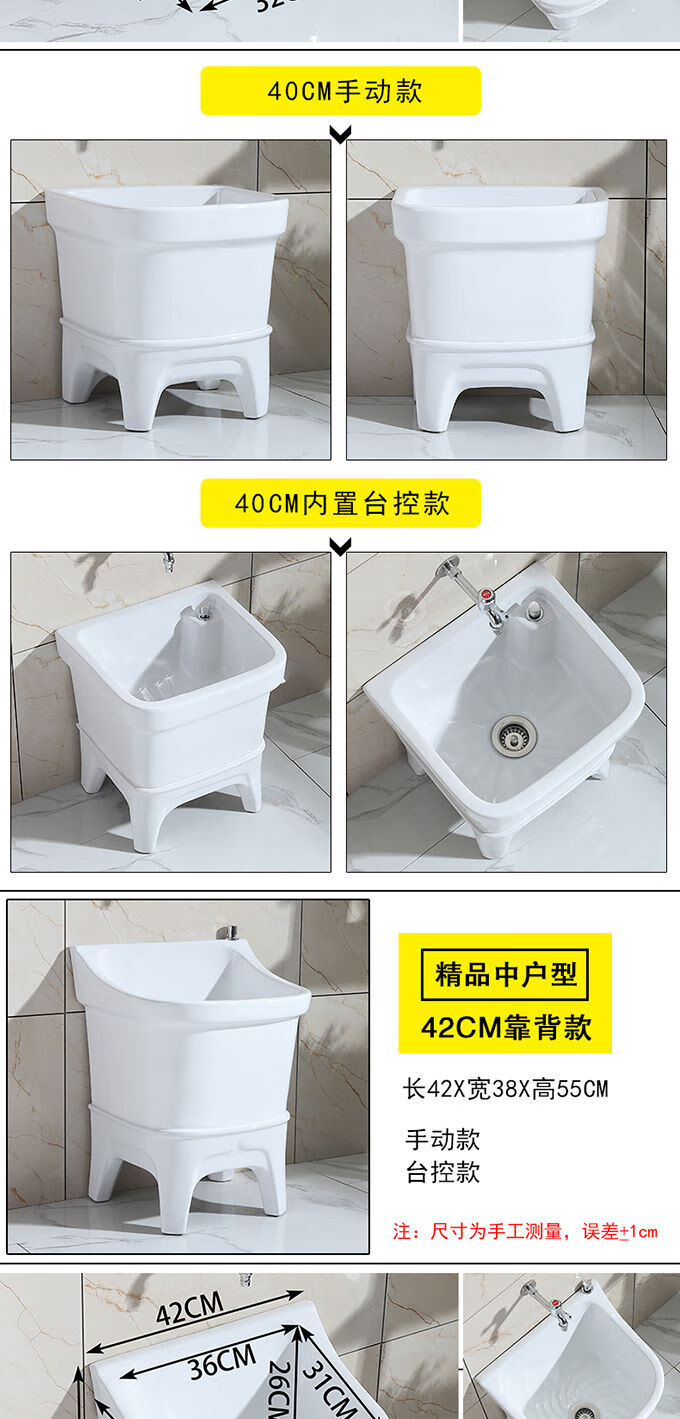 Mopeng mop pool integrated basin ceramic balcony mop pool large square long mop washing wide mop basin table-controlled automatic sink 36 cm manual high-bend faucet