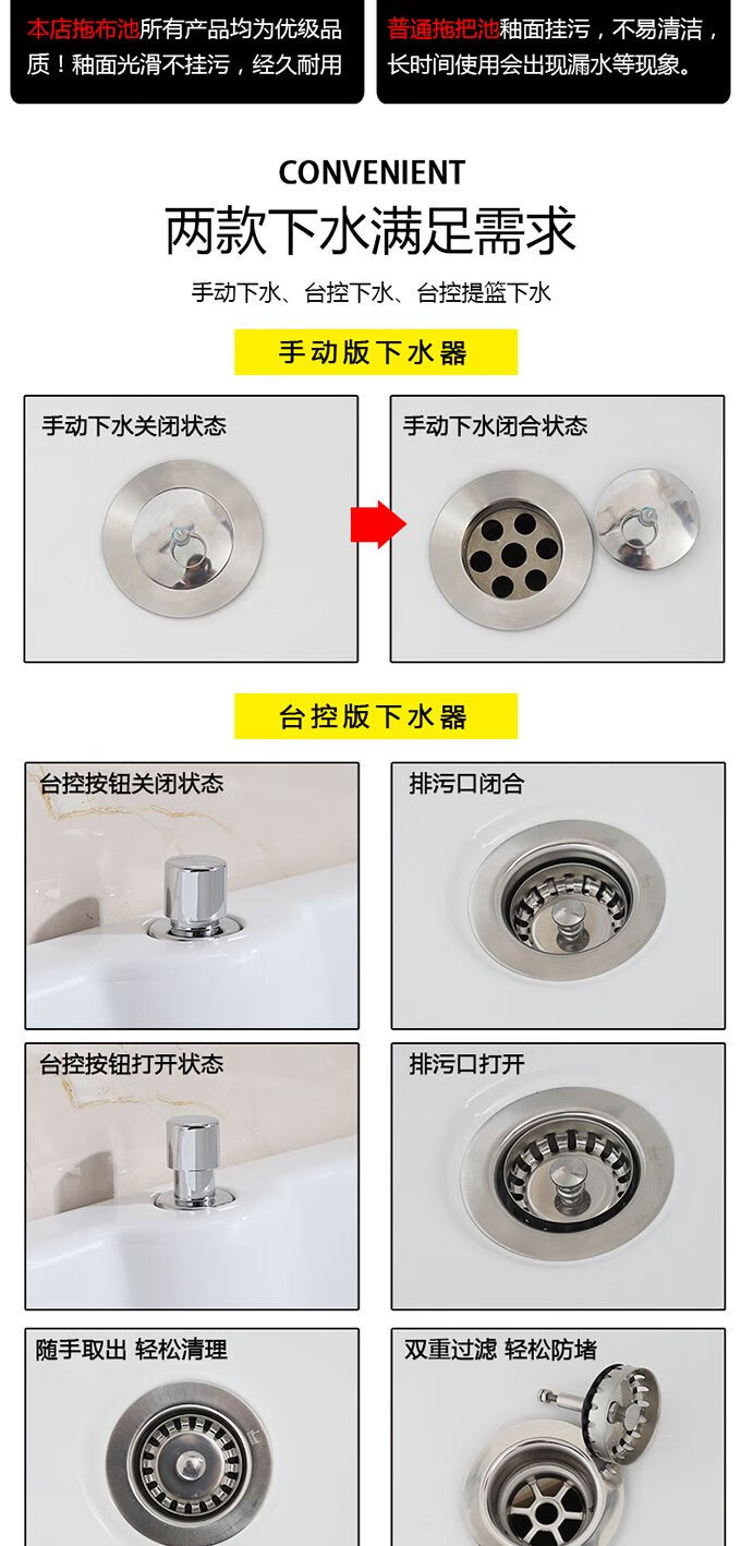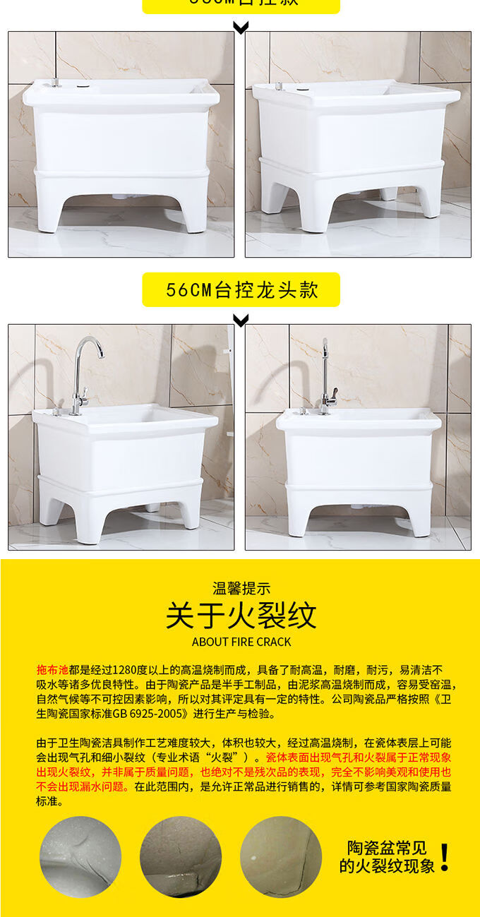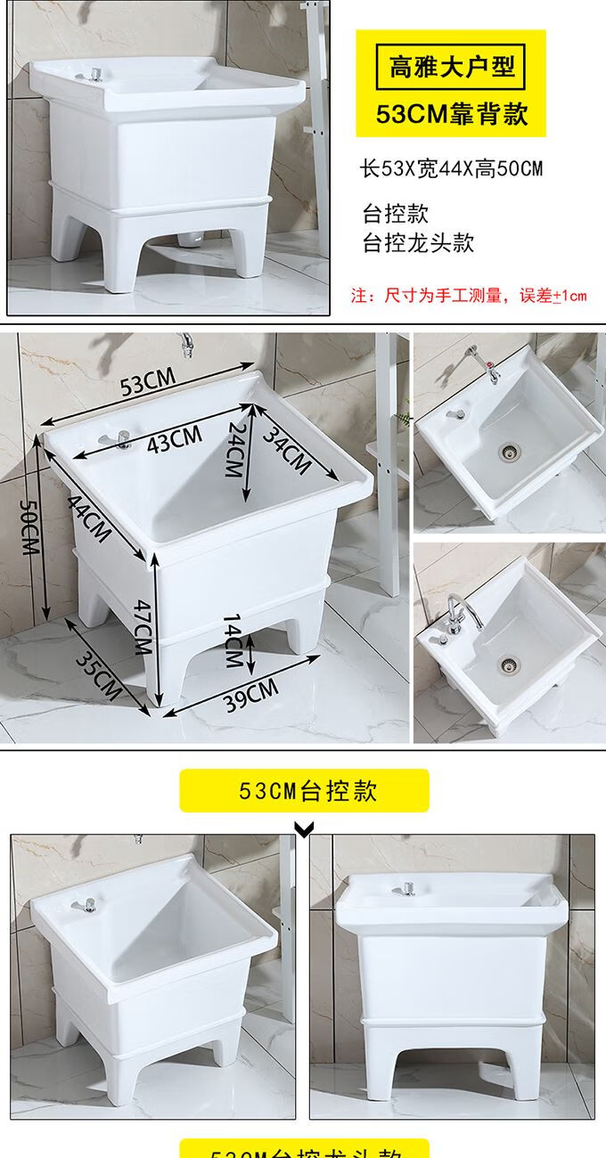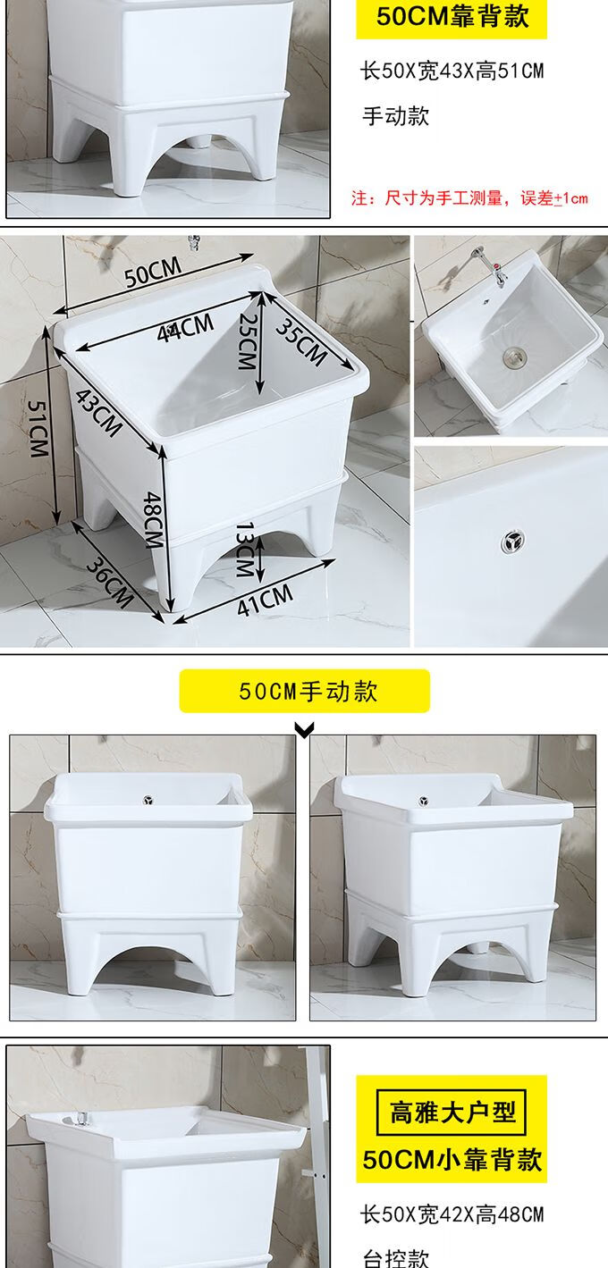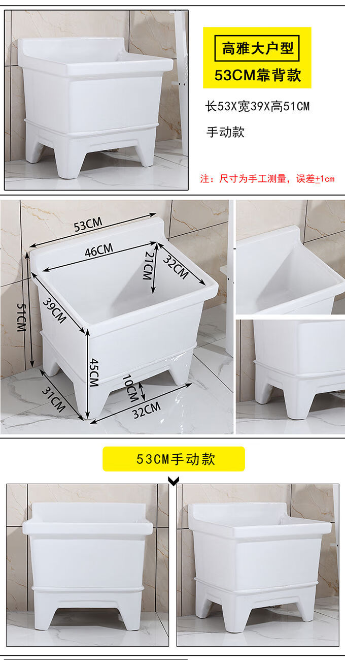 Mopeng mop pool integrated basin ceramic balcony mop pool large square long mop washing wide mop basin table-controlled automatic sink 36 cm manual high-bend faucet