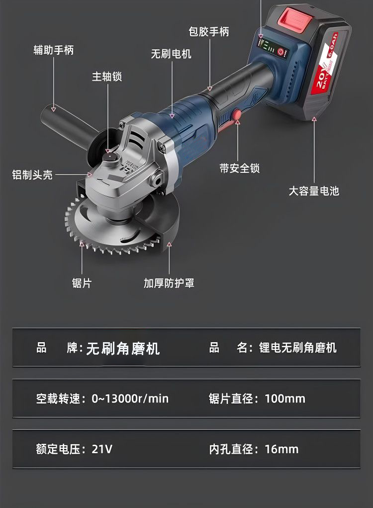 Dongcheng's angle grinder lithium battery cutting machine grinder electric hand grinder rechargeable genuine household grinder high power pure copper brushless paper box without accessories 4.0Ah one charge one charge