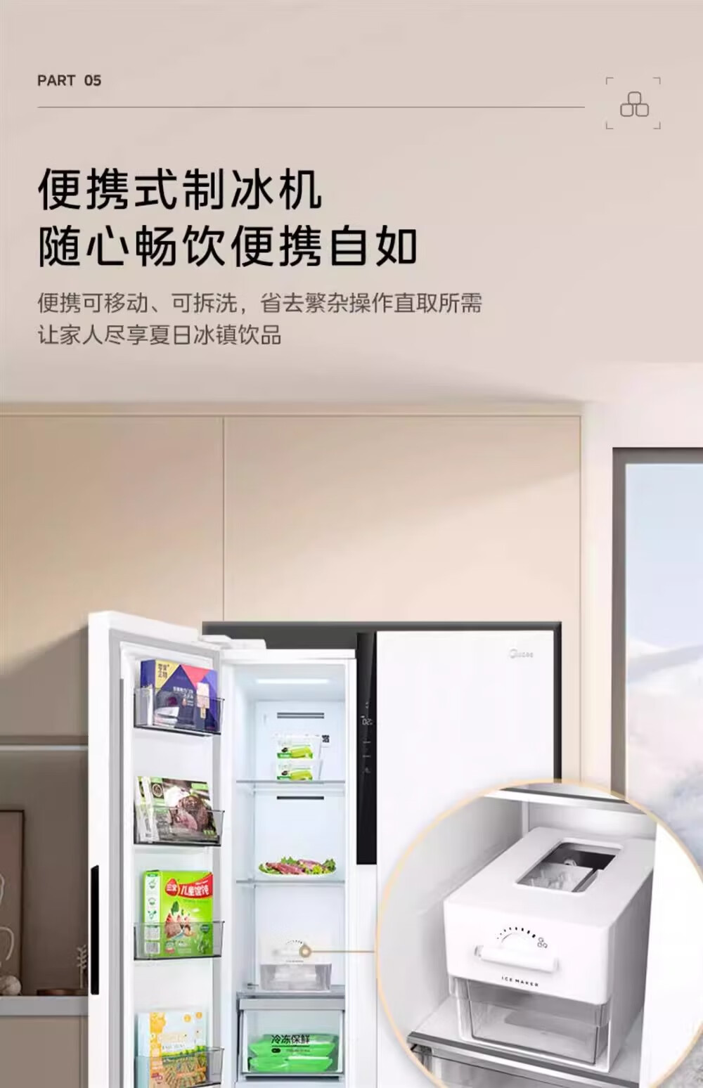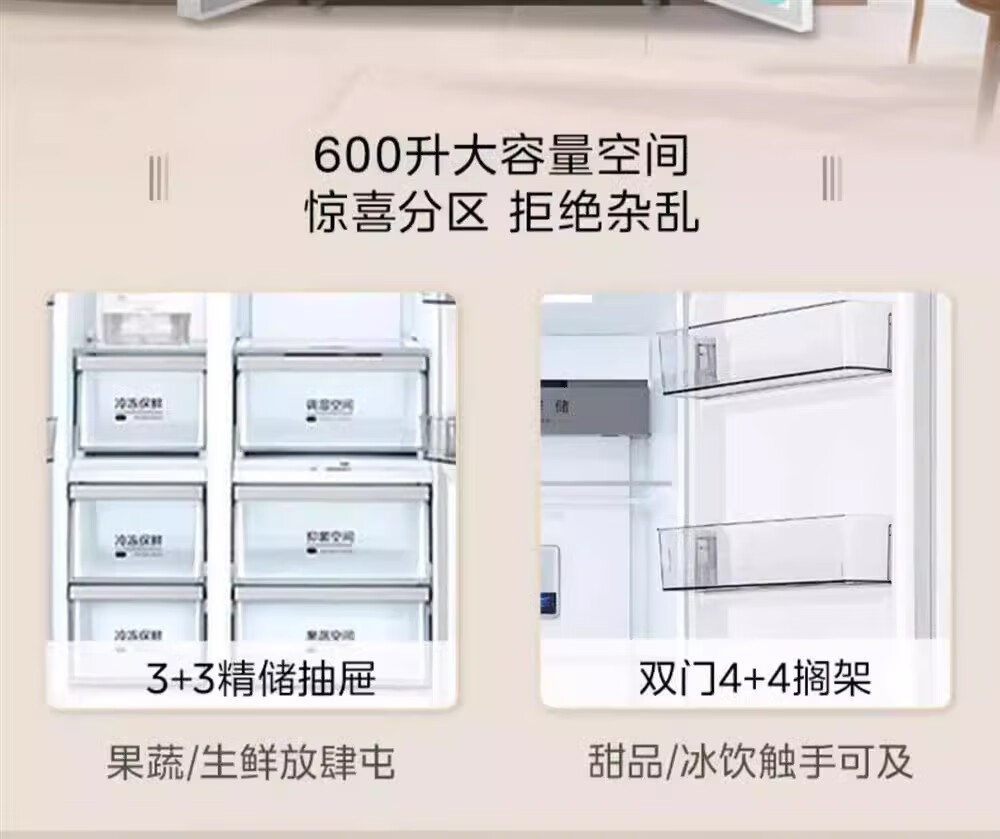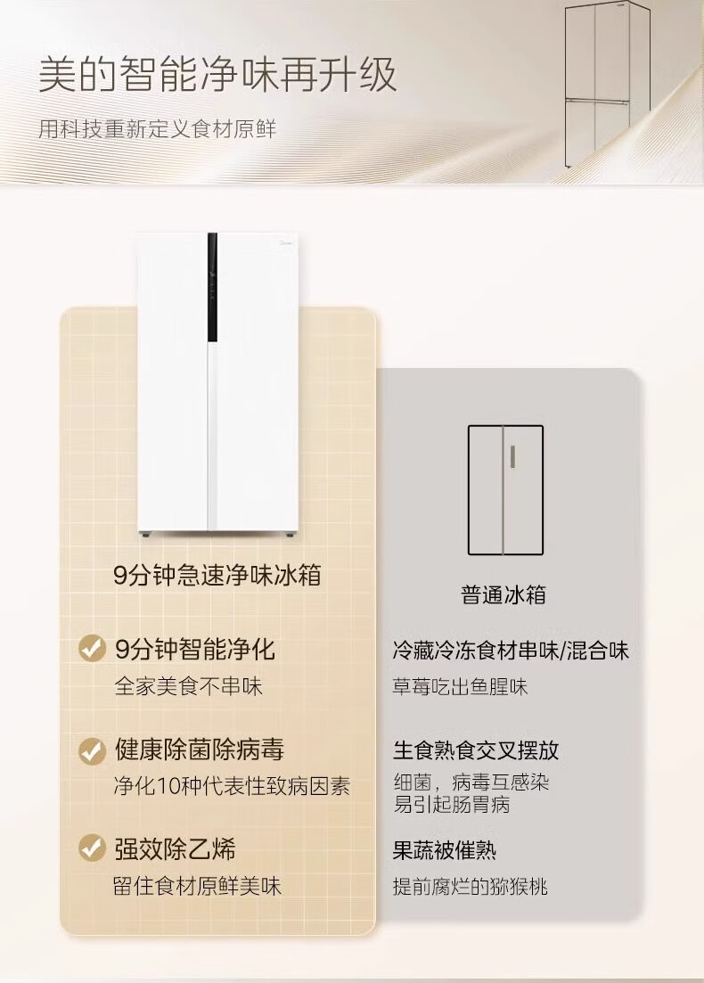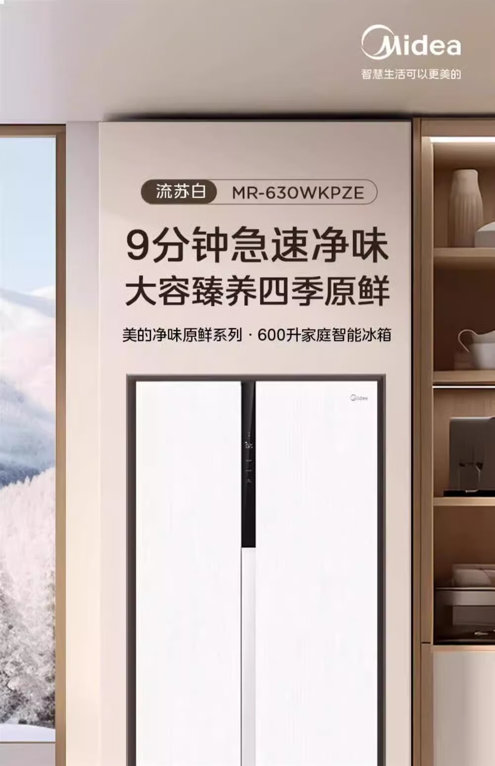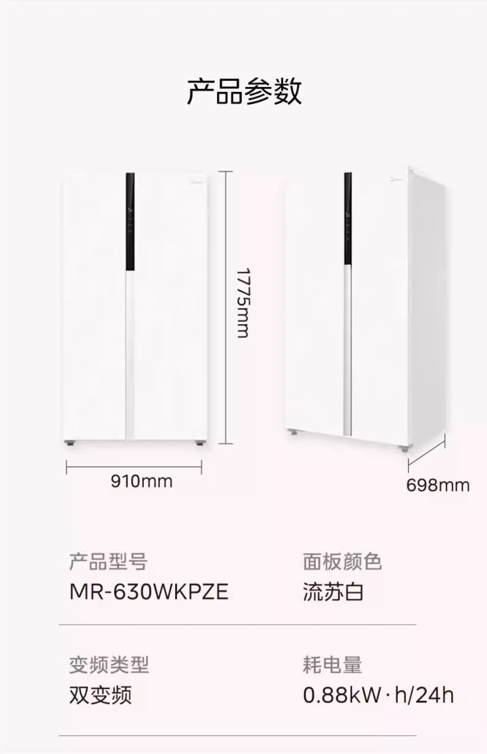 Midea sample machine MR-630WKPZE double door with ice making air-cooled frost-free frequency conversion large capacity household refrigerator quality tail goods MR-630WKPZE tassel white