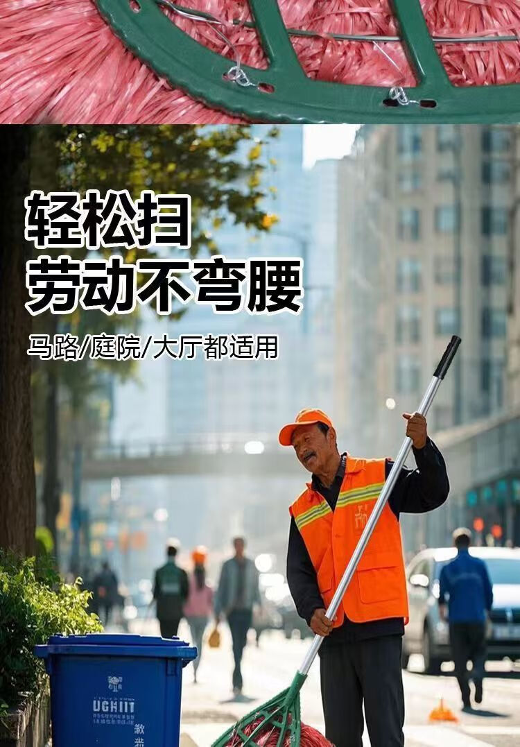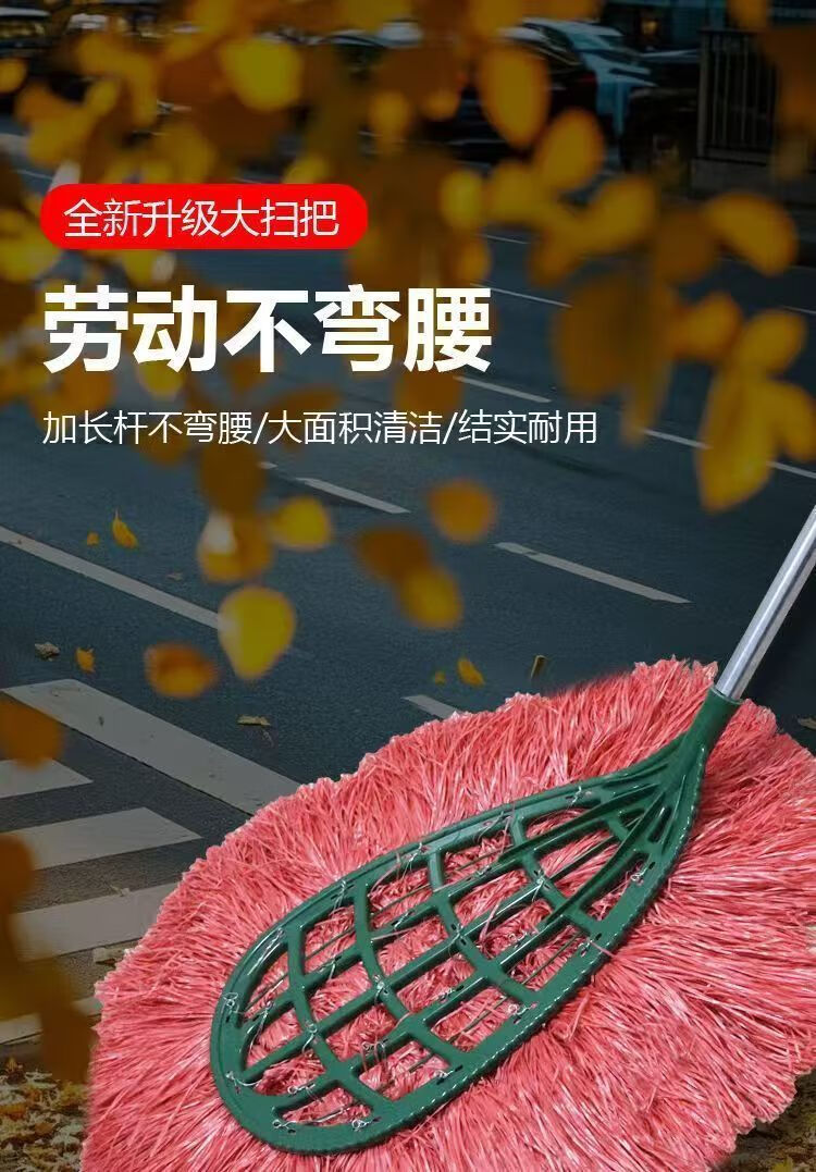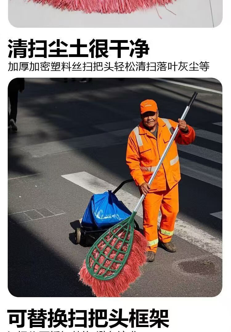 Bun Peng Plastic Wire Big Broom Head Big Mac Encrypted Thickened Plastic Broom National Universal Garden Road Broom Extra Large Soft Bristles Thickened Rod + Big Broom Brand New Material Fully Cooked Glue Damage Guaranteed Customized