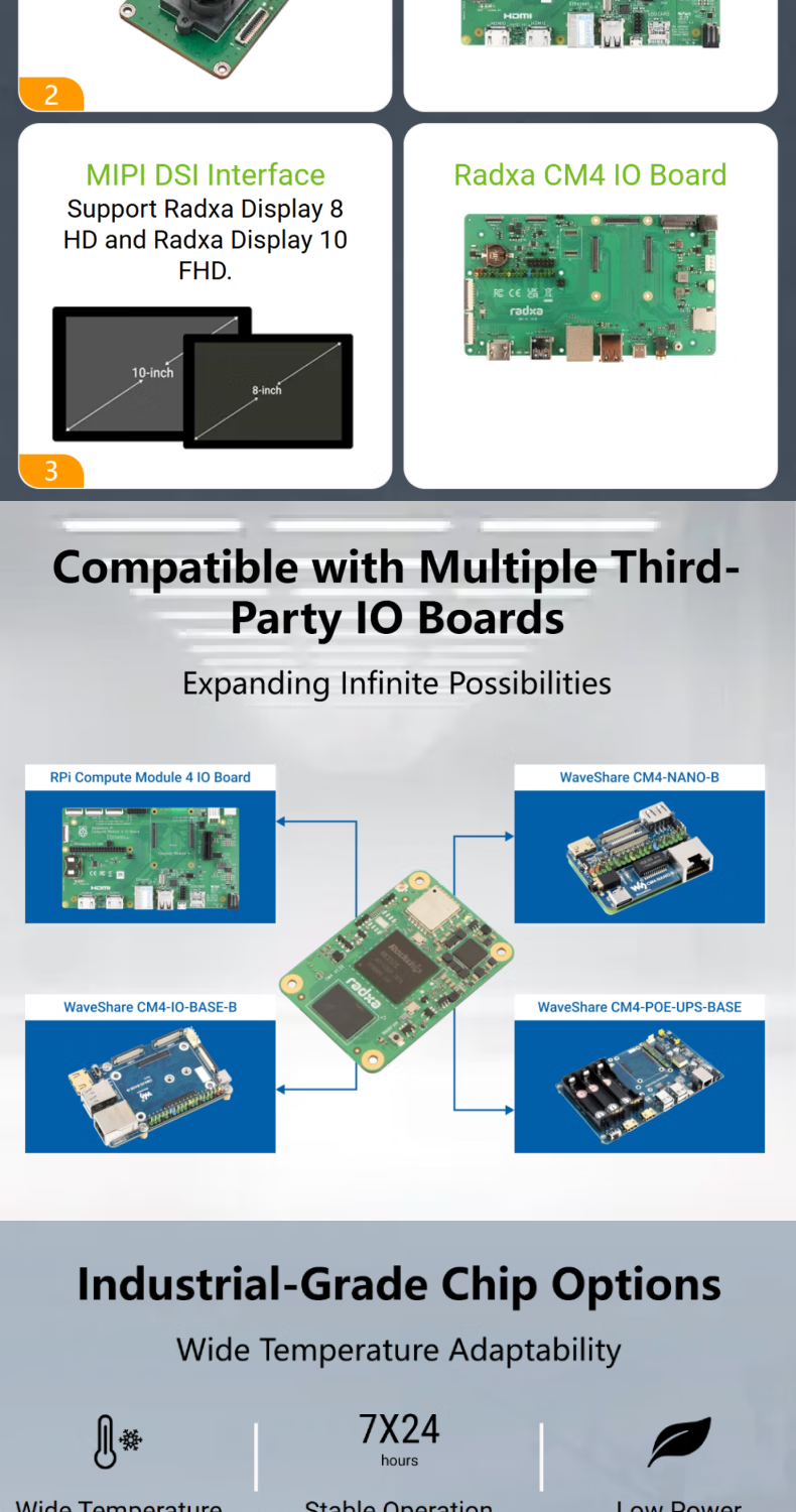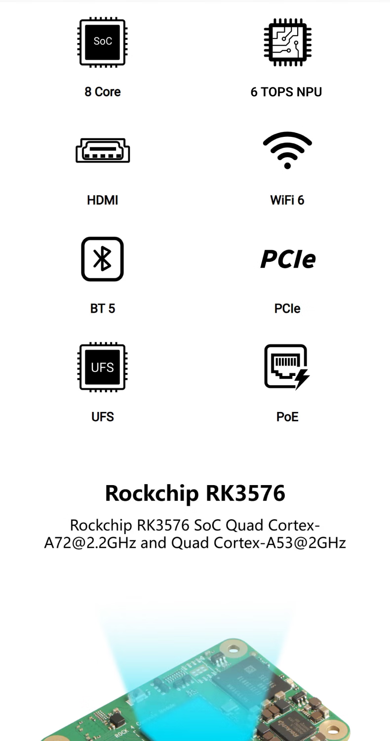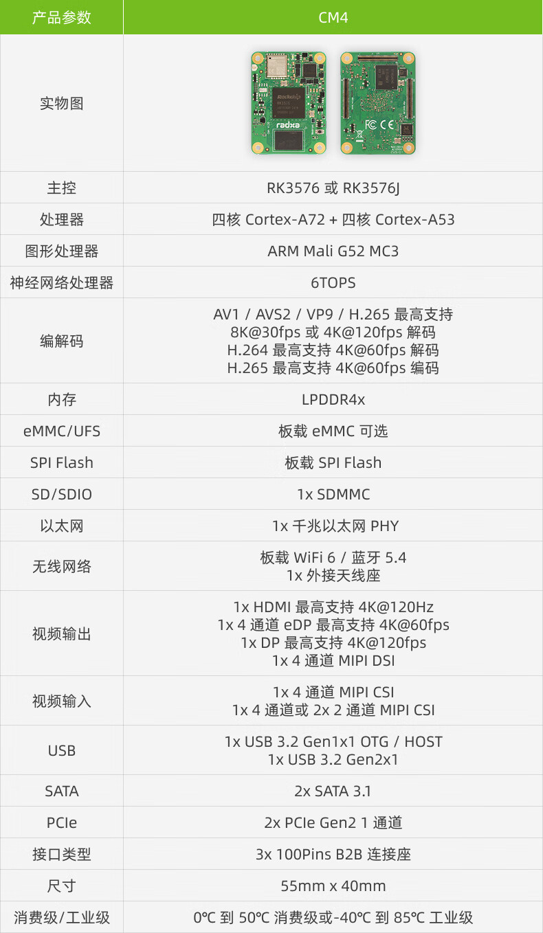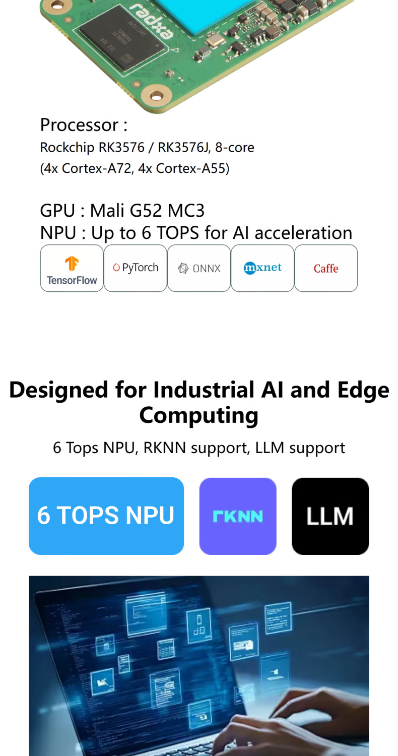 RADXA CM4 RK3576 high-performance AI computing module multi-function interface 8-core CPU 6 TOPS NPU WiFi 6/ Bluetooth 5.4/ eMMC 5.1 8GB RAM 64GB eMMC