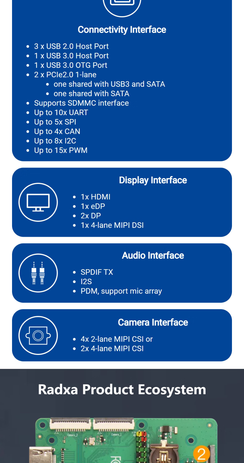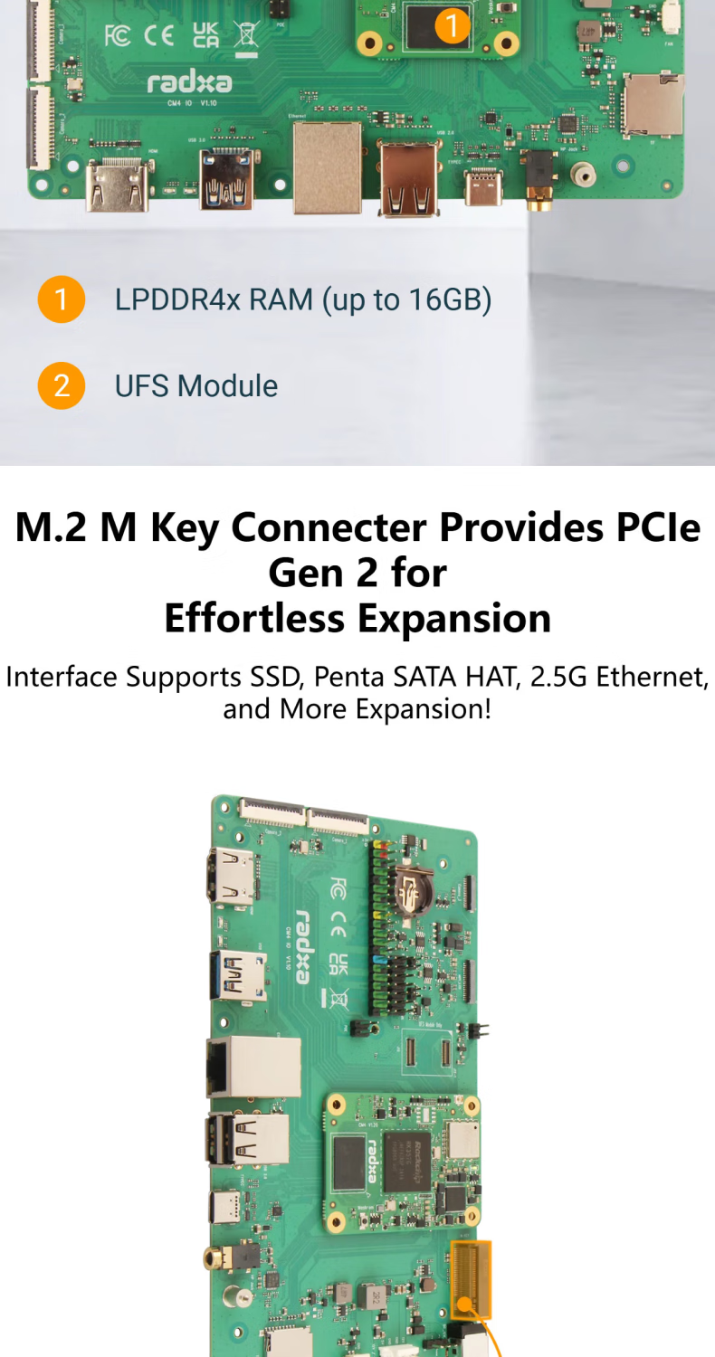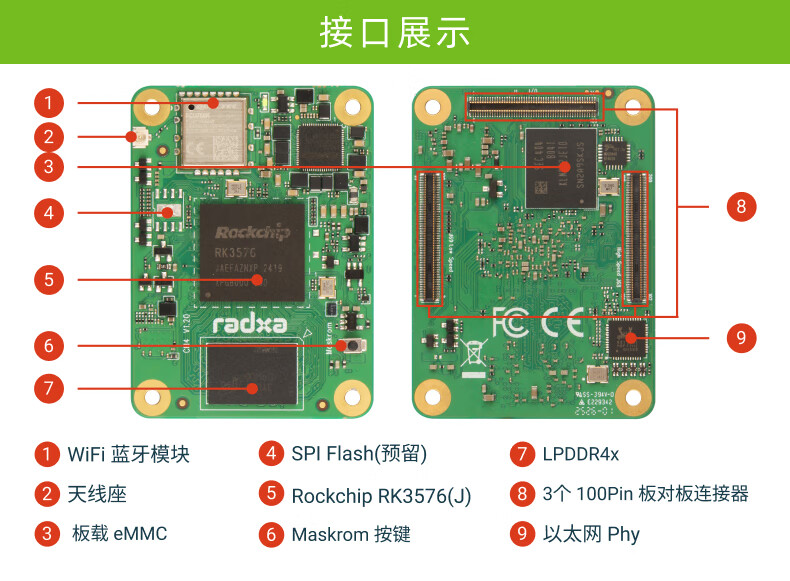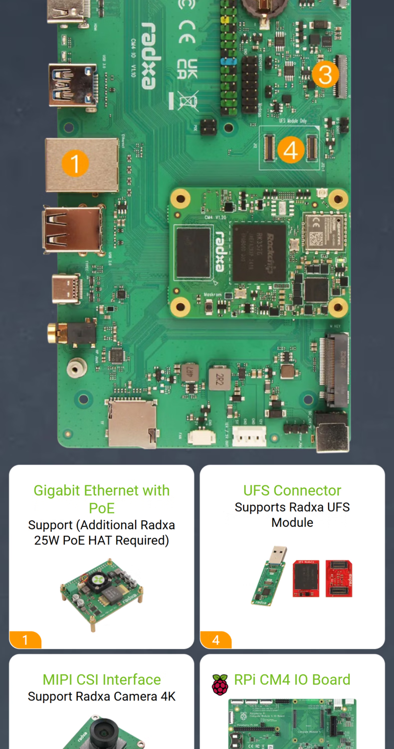 RADXA CM4 RK3576 high-performance AI computing module multi-function interface 8-core CPU 6 TOPS NPU WiFi 6/ Bluetooth 5.4/ eMMC 5.1 8GB RAM 64GB eMMC