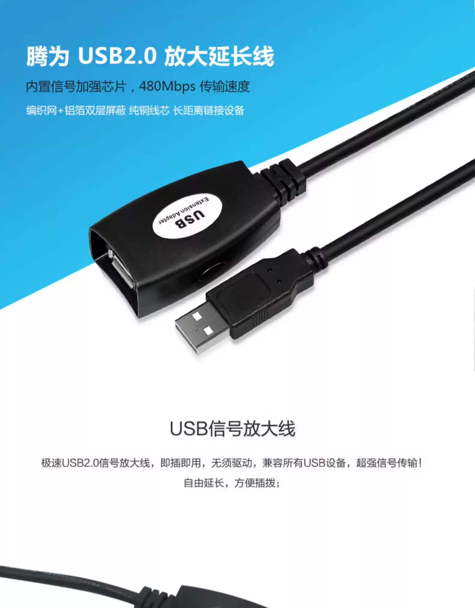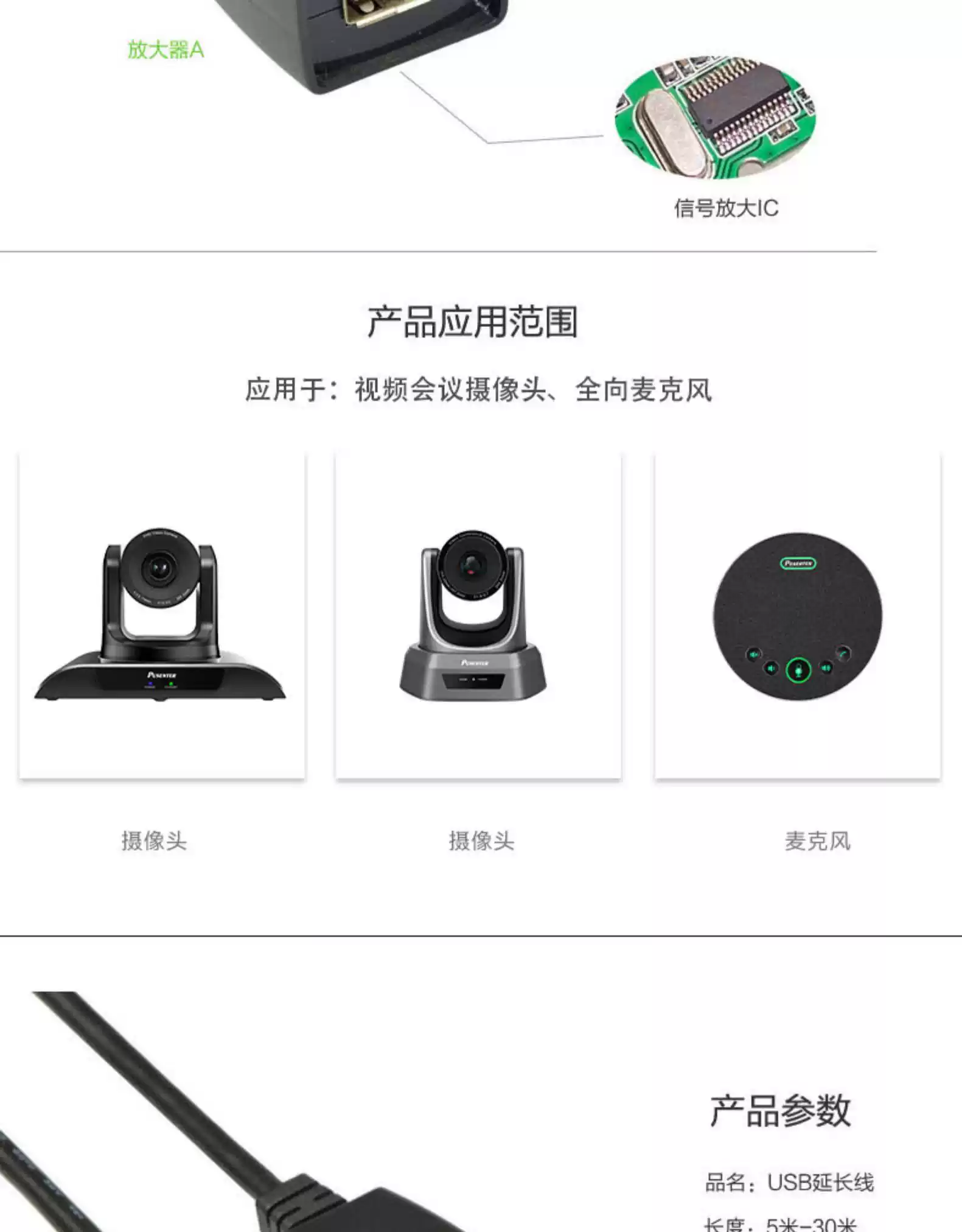 Tenveo video conferencing camera USB extension cable HD conferencing camera video conferencing omnidirectional microphone universal with signal amplifier can be connected without attenuation black 15m