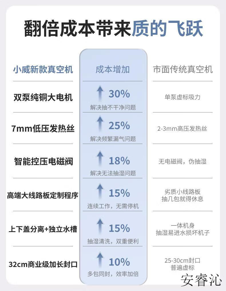 Willin Xiaowei Xiaowei double pump vacuum sealing machine small household commercial food preservation packaging machine plastic sealing fully automatic sealing titanium empty gray double pump flagship machine +17*25c