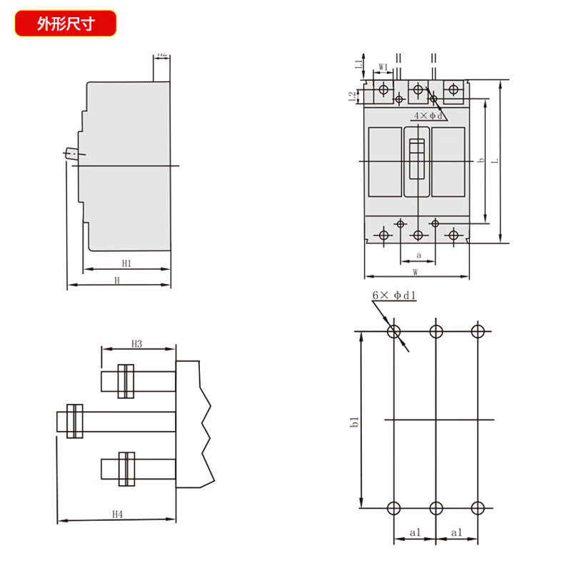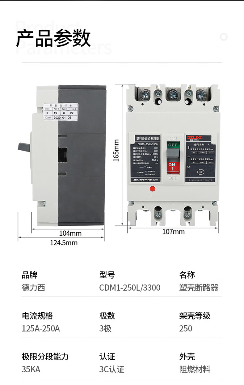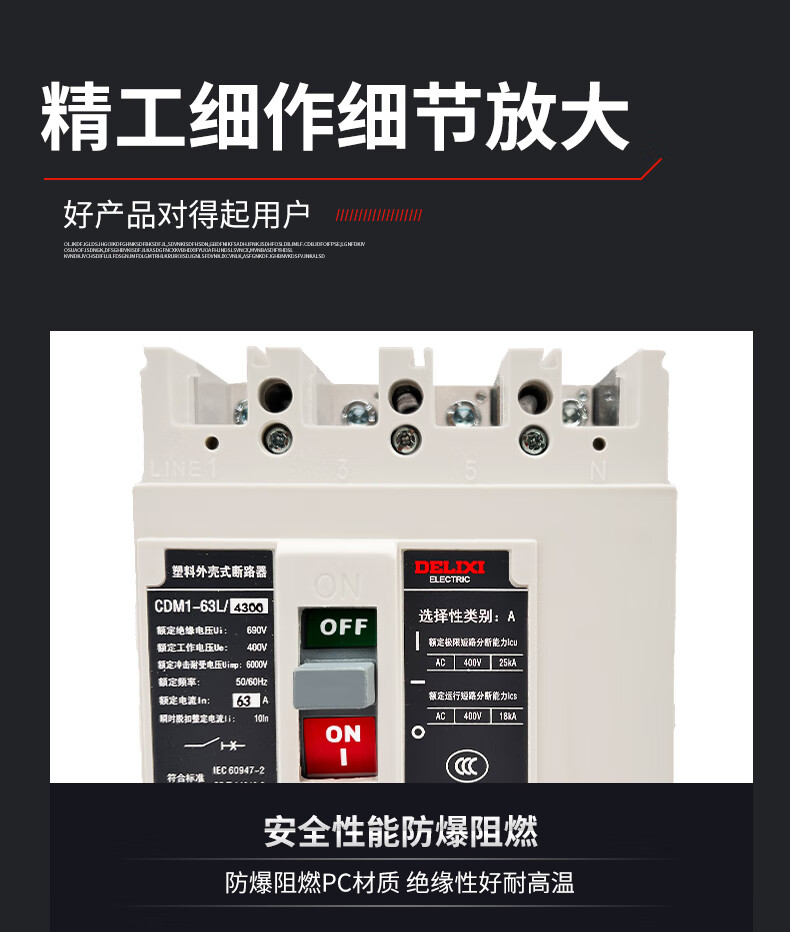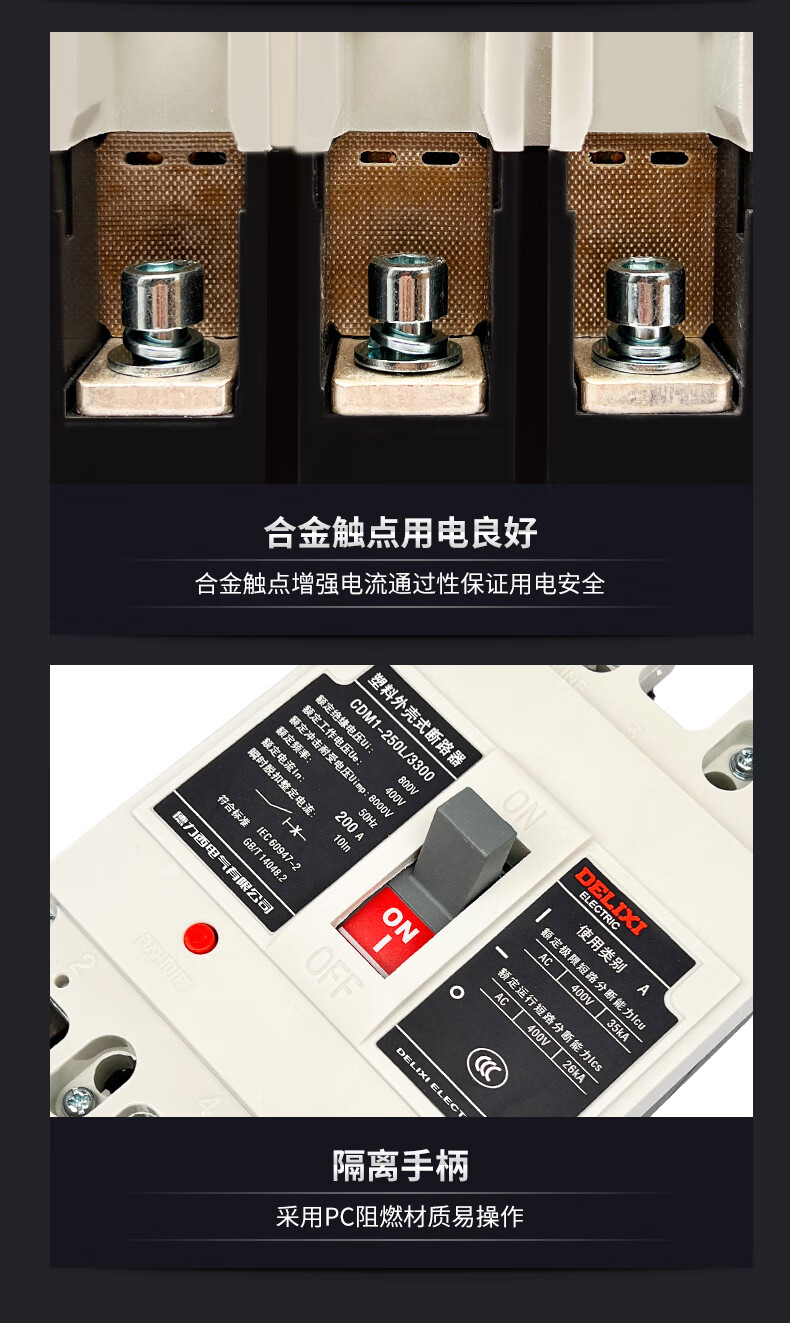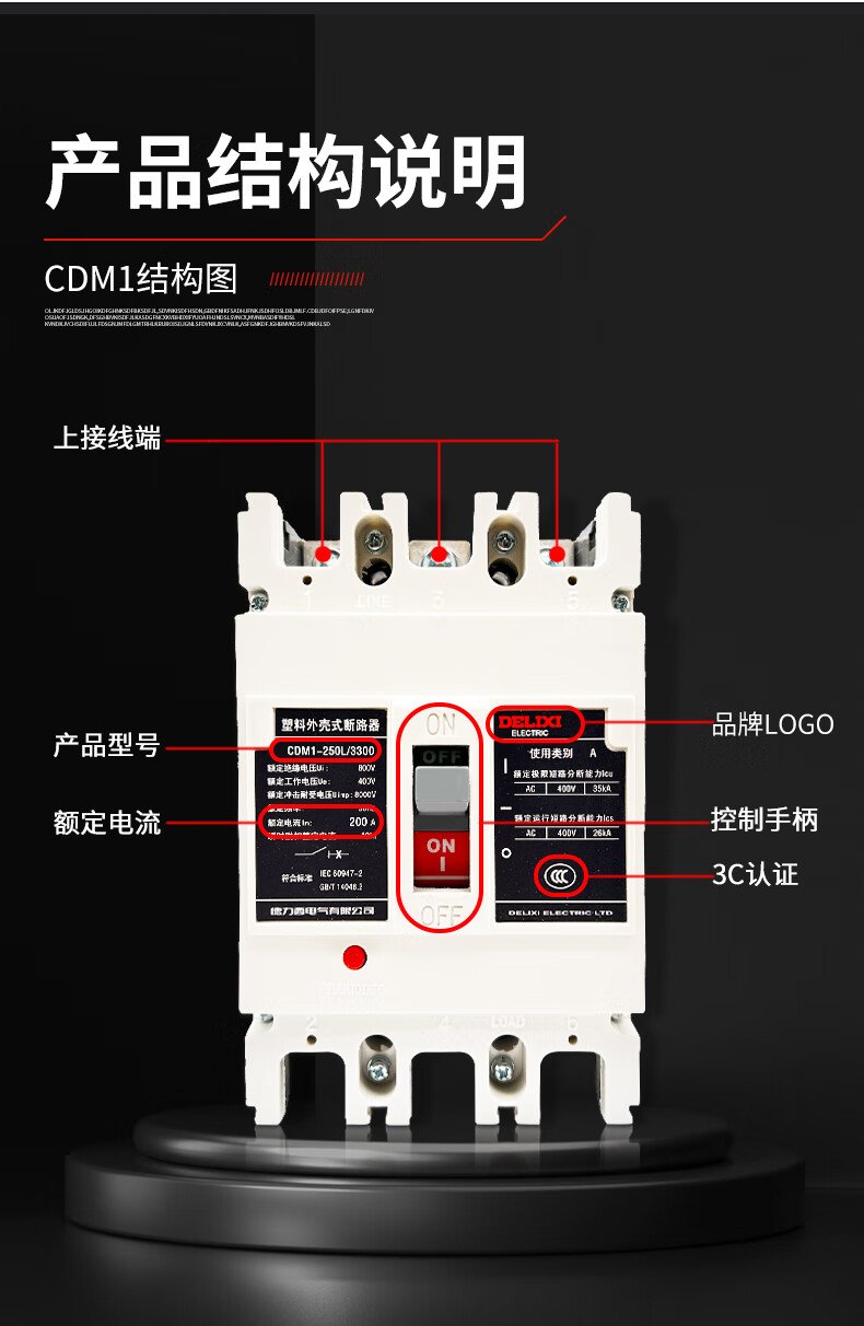 Delixi plastic case circuit breaker CDM1 air switch flame retardant material 160A 225A 400A air switch 630A 250A 4P