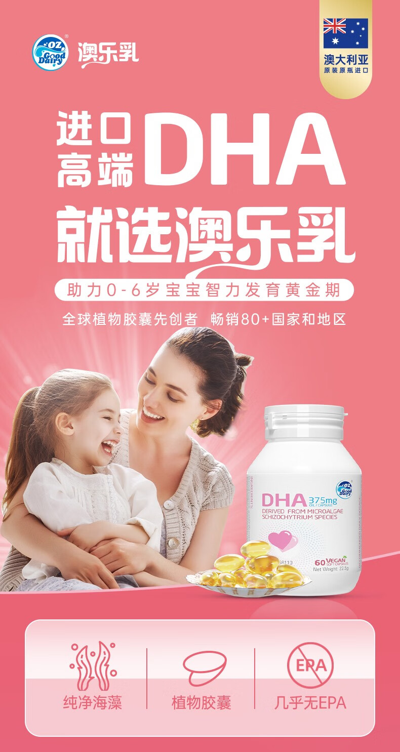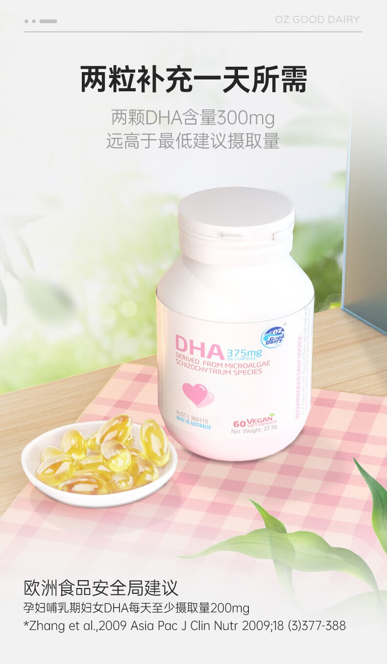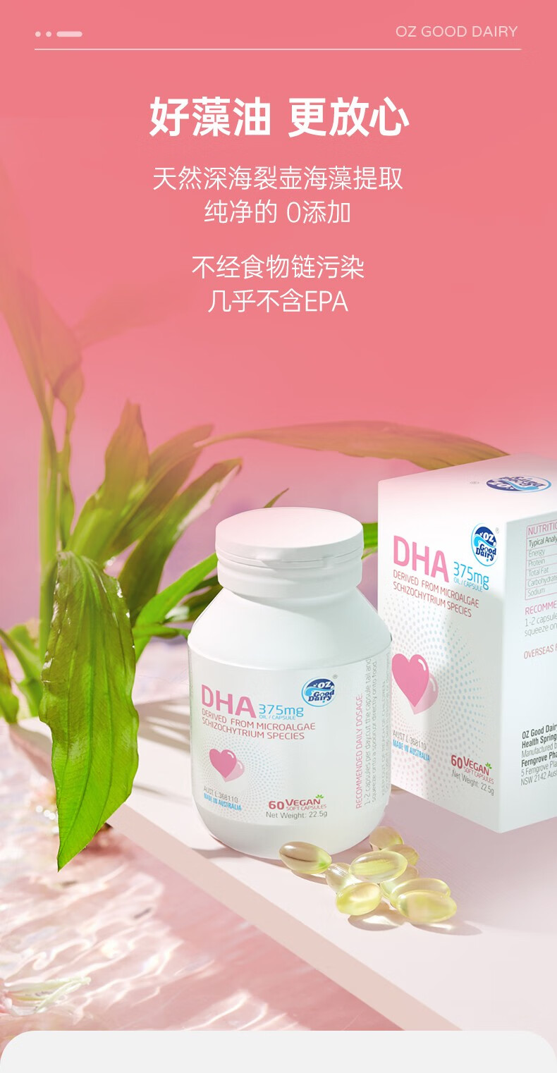 OZ Good Dairy Pro-Baby Plant DHA Algae Oil imported from Australia, Fresh DHA 60 capsules 60 capsules*1 bottle (buy 1 get 1 free)