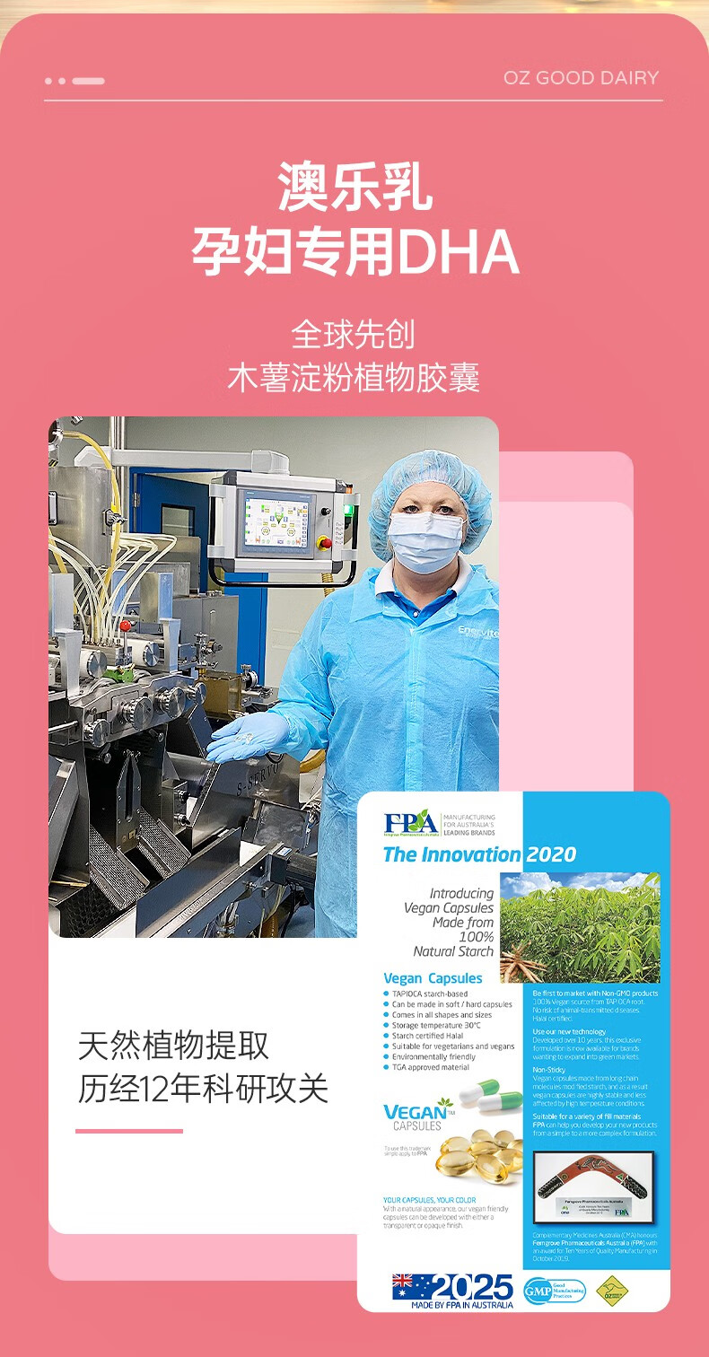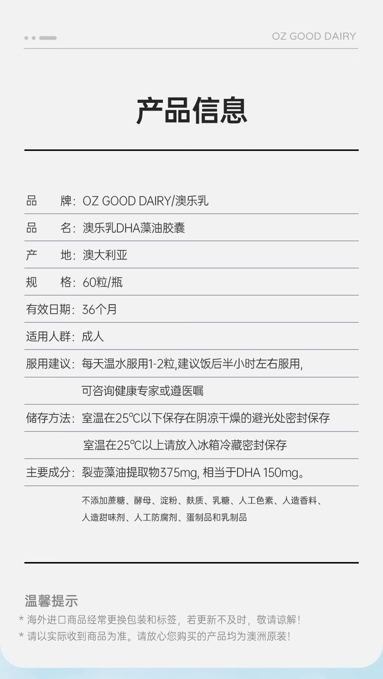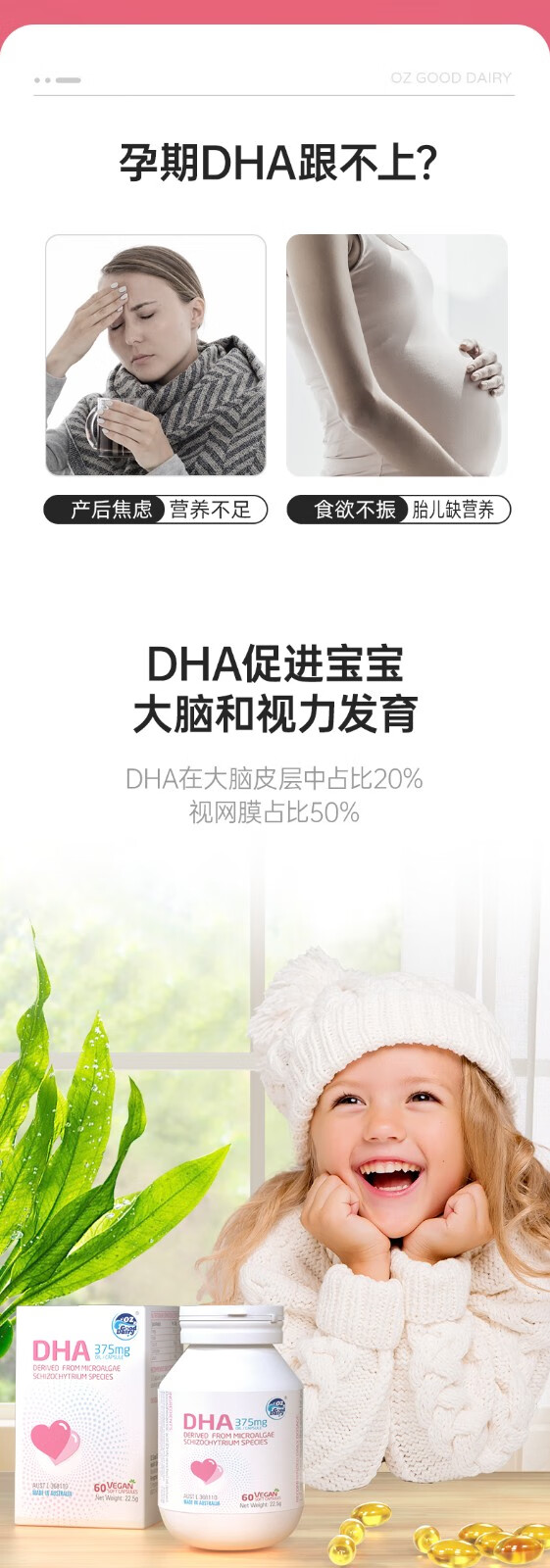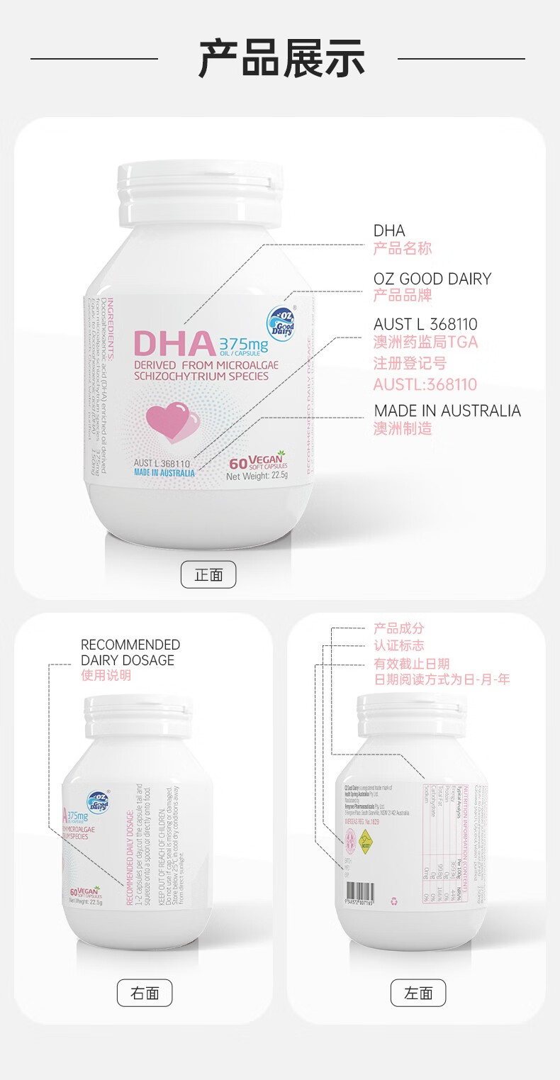 OZ Good Dairy Pro-Baby Plant DHA Algae Oil imported from Australia, Fresh DHA 60 capsules 60 capsules*1 bottle (buy 1 get 1 free)