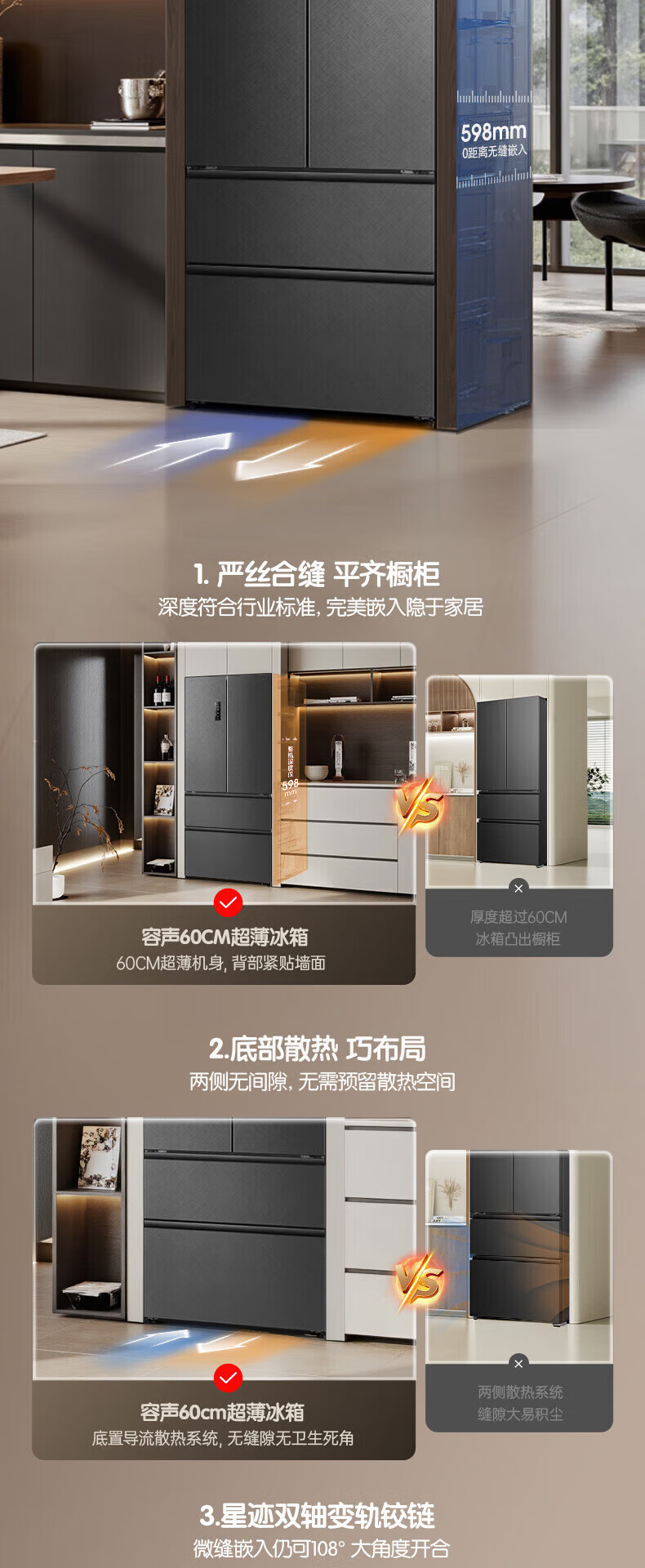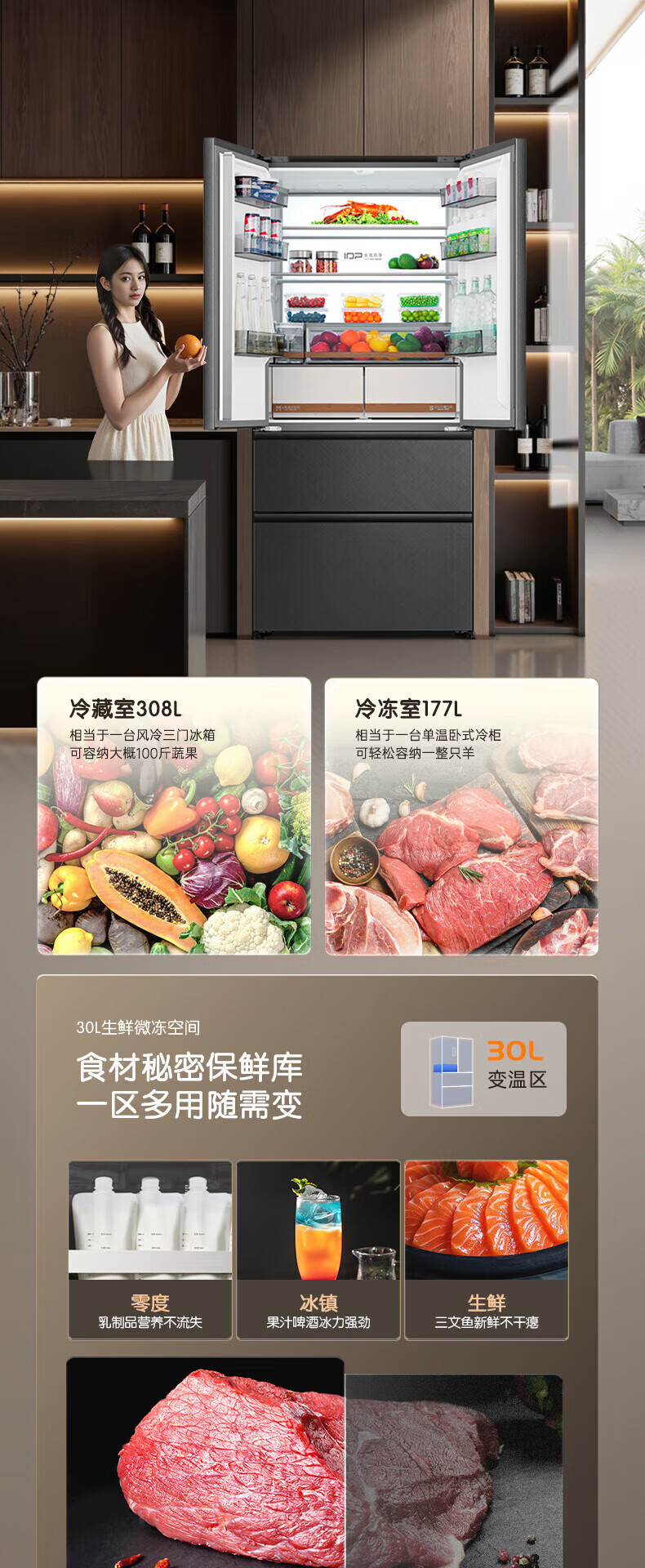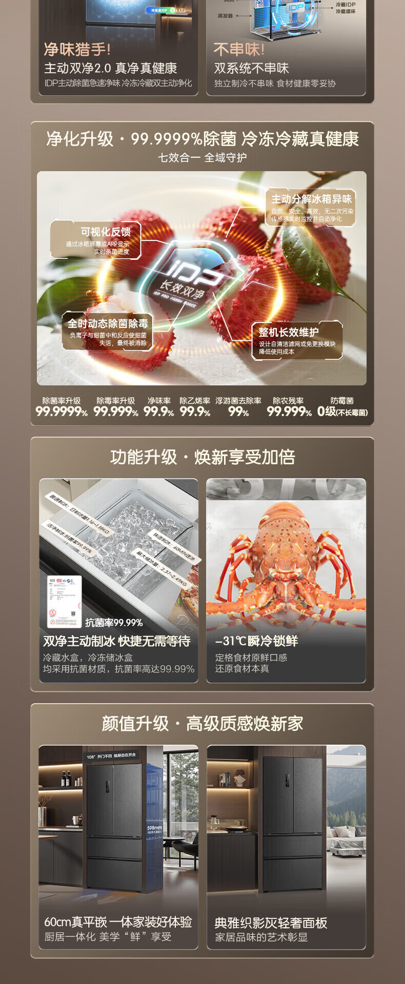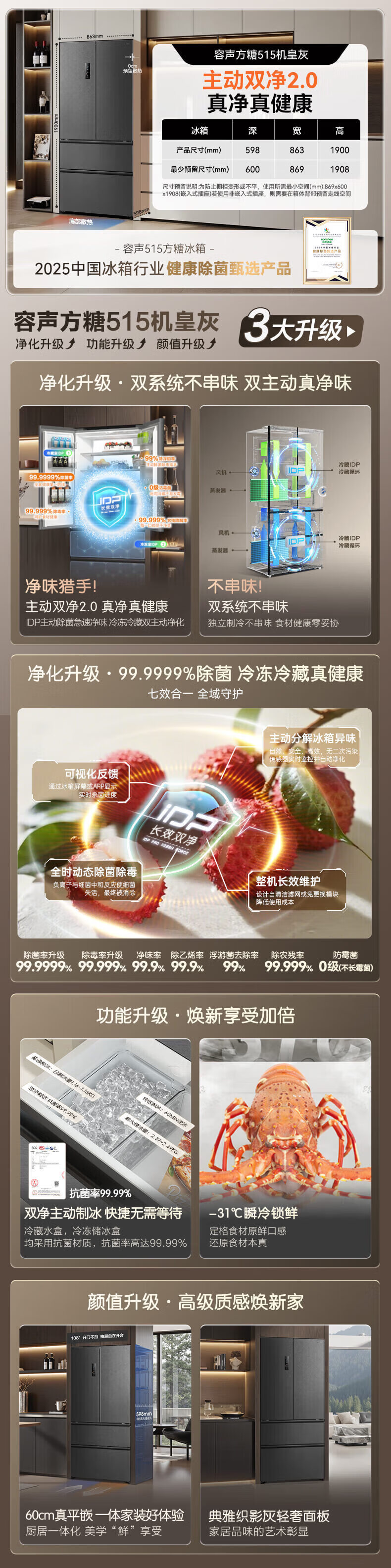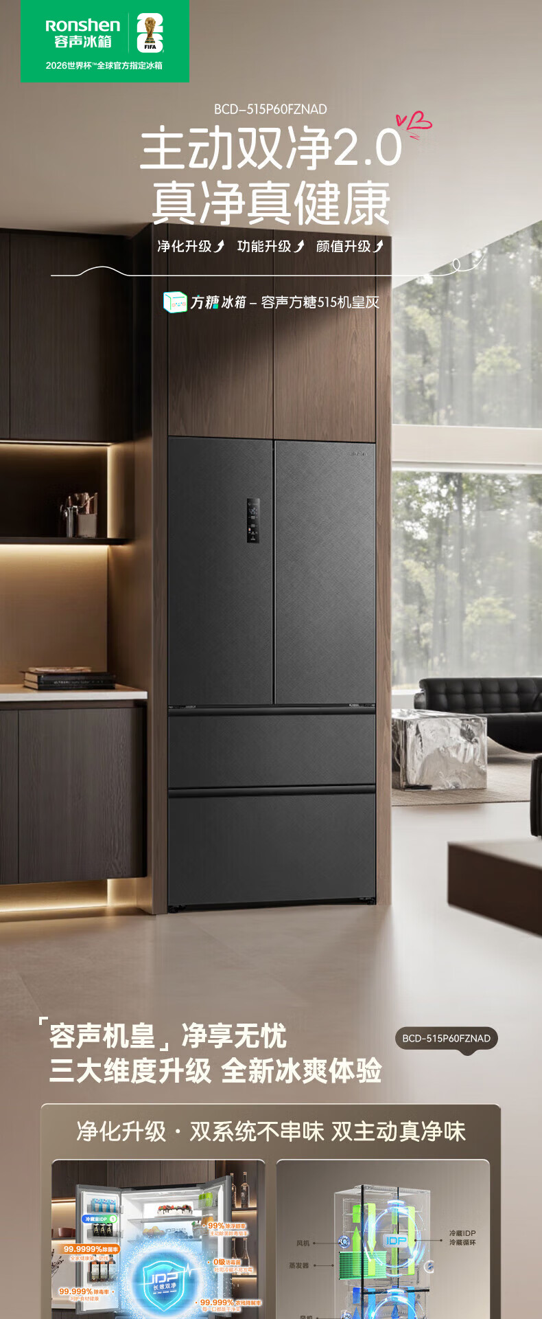 Rongsheng Cube 515 Machine Emperor Dual Purifier Dual System Automatic Ice Making French Multi-door Four-Door Thin Embedded Refrigerator Home First-Class Energy Efficiency Gray Active Sterilization Refrigerator Subsidy Dual Purifier Dual System + Automatic Ice Making