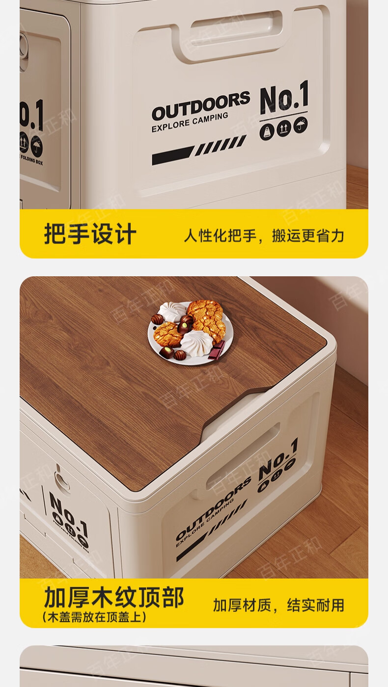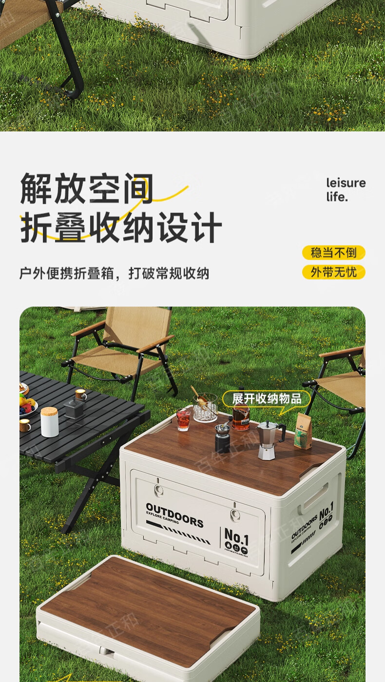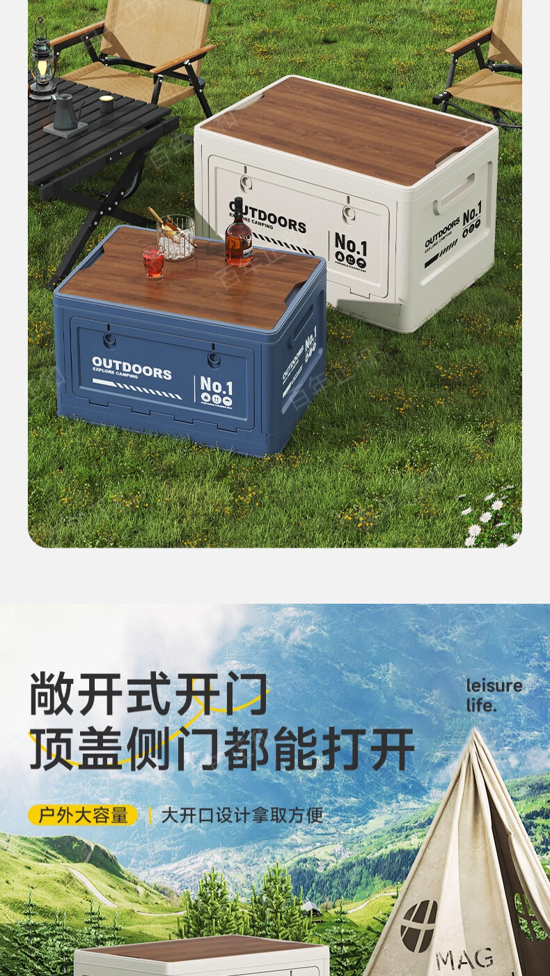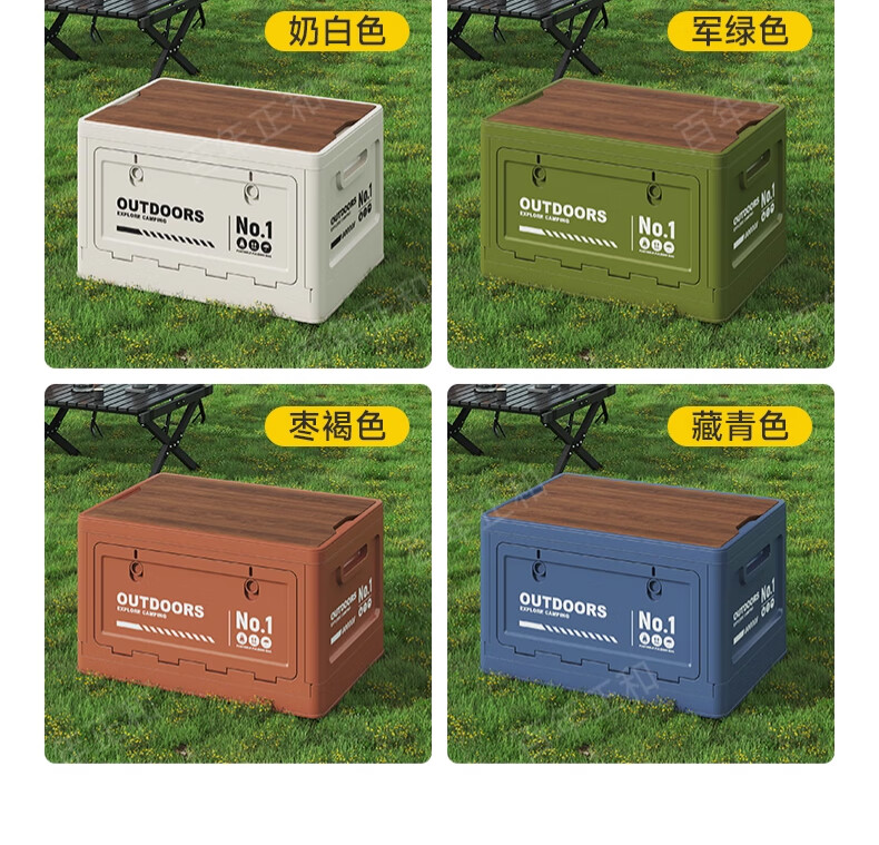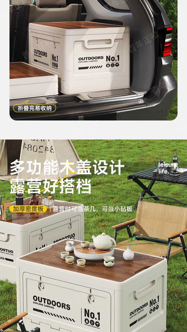 Camping storage box car camping storage box car trunk organizer large outdoor folding storage box off-white large - wooden cover