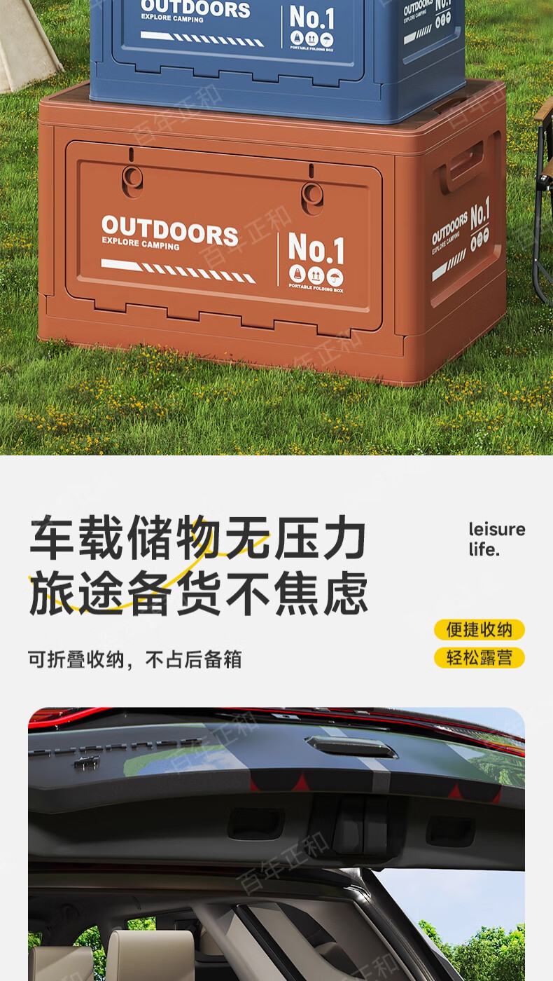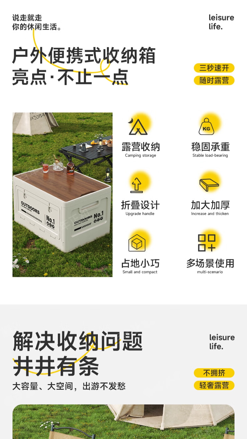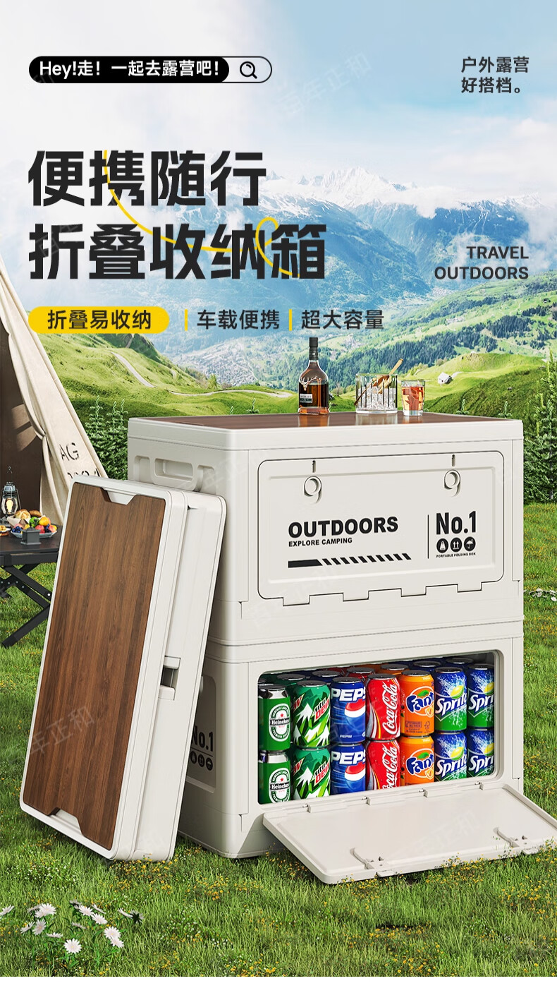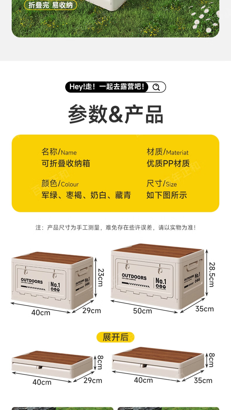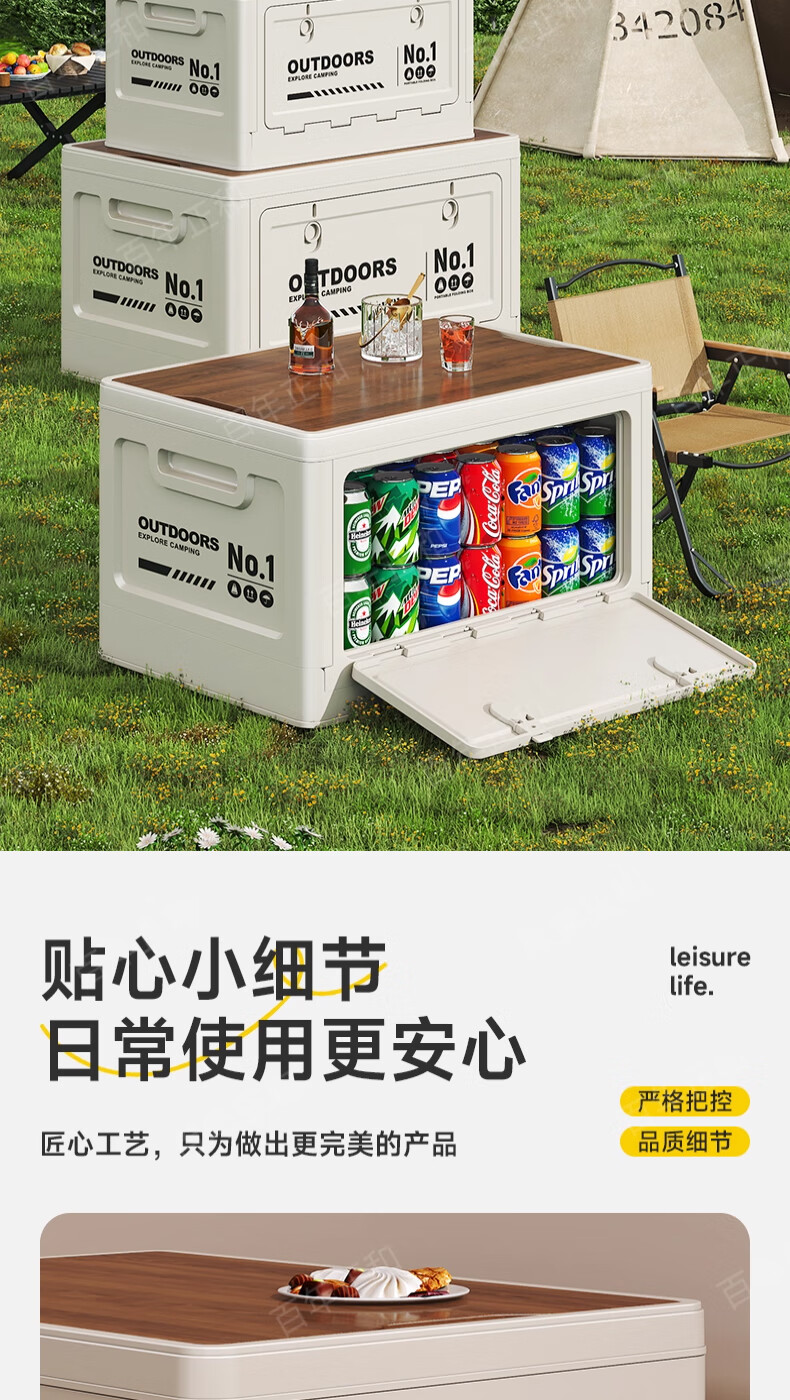 Camping storage box car camping storage box car trunk organizer large outdoor folding storage box off-white large - wooden cover