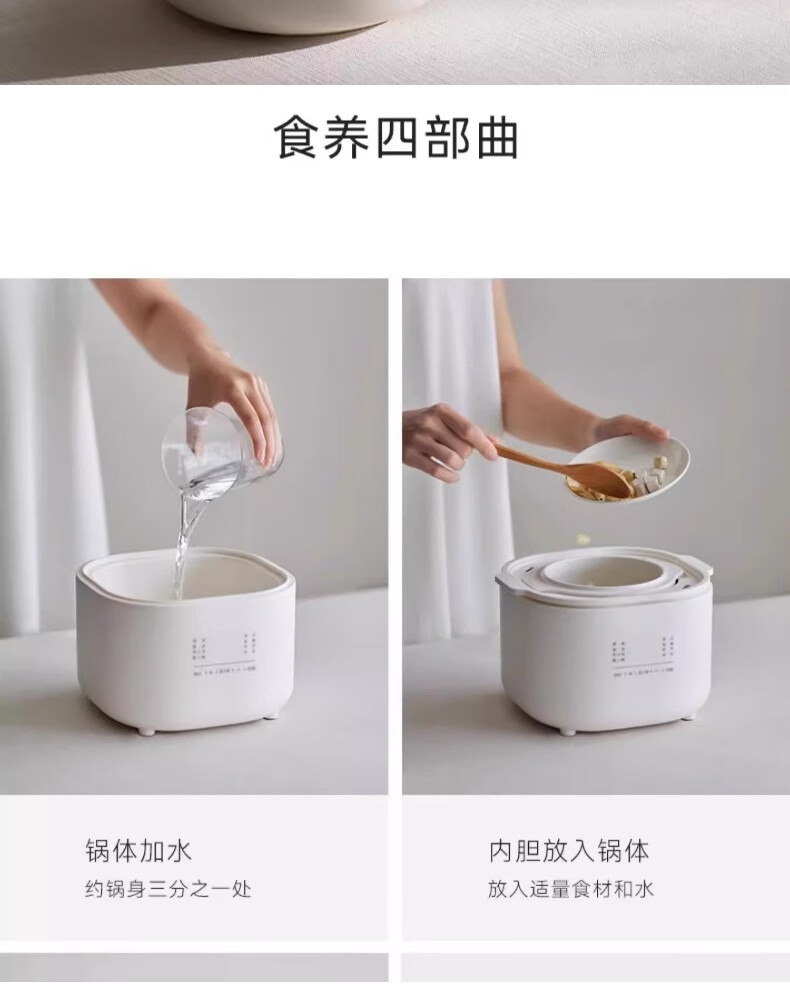 Xingshi Japanese electric stew pot bird's nest water-proof small stew pot for household soup baby porridge pot baby food supplement pot 1L capacity - with anti-scald handle