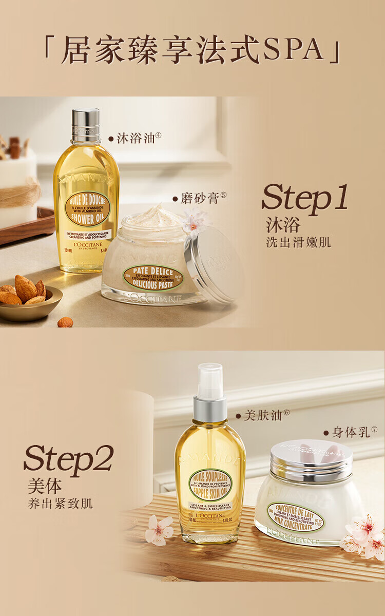 L'Occitane (L OCCITANE) Sweet Almond Shower Oil, Skin Beauty Oil Scrub, Shower Cream, New Year's Gift for Girlfriend and Wife, Sweet Almond Skin Beauty Oil 100ml