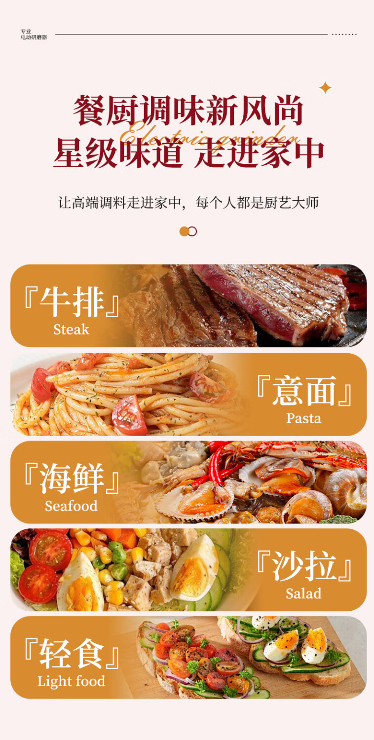 MZXM Japan imported quality electric grinder kitchen household grinder grinding pepper sea salt artifact handheld fully automatic high-end grinding milk color suitable for gifts