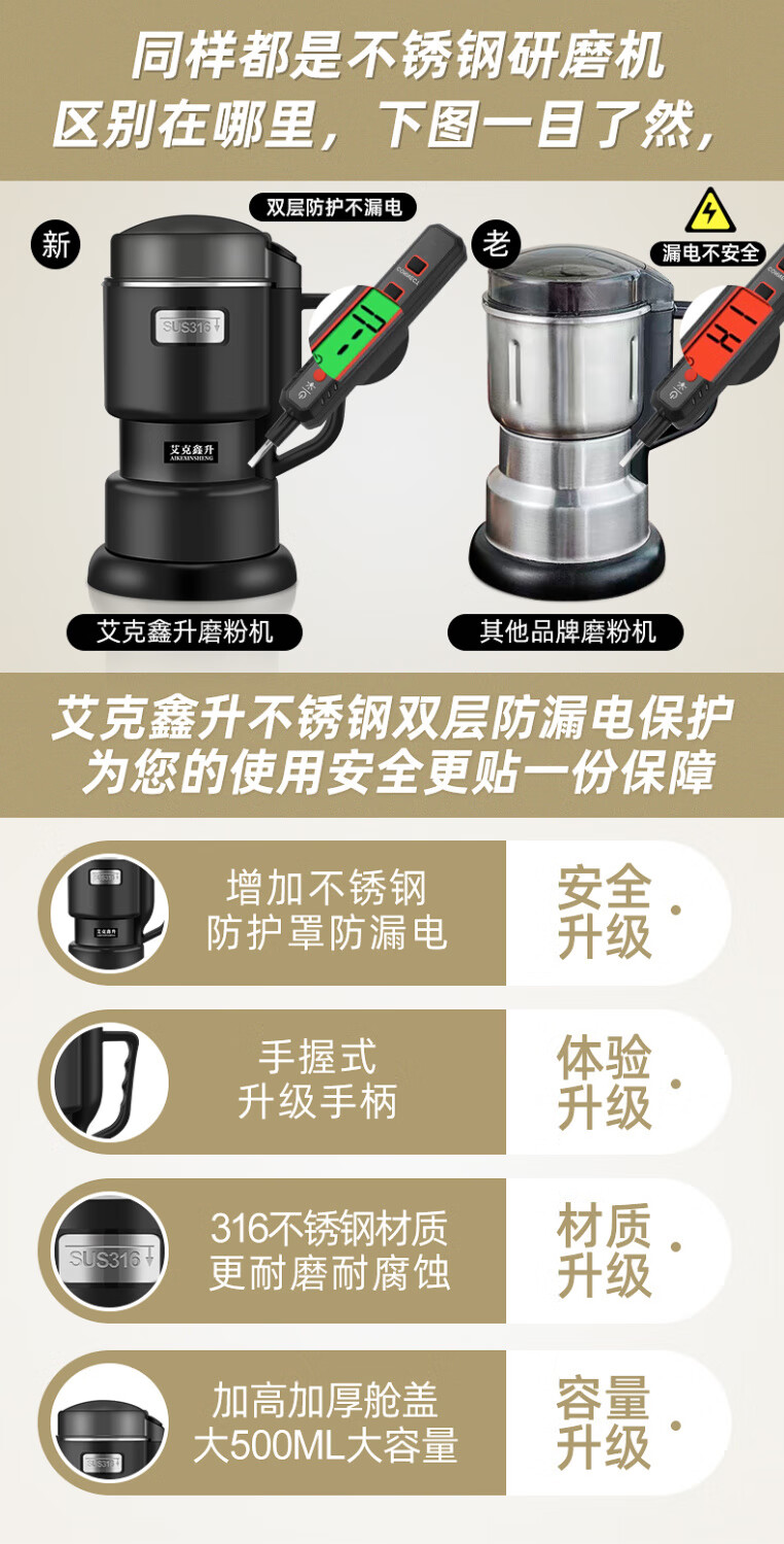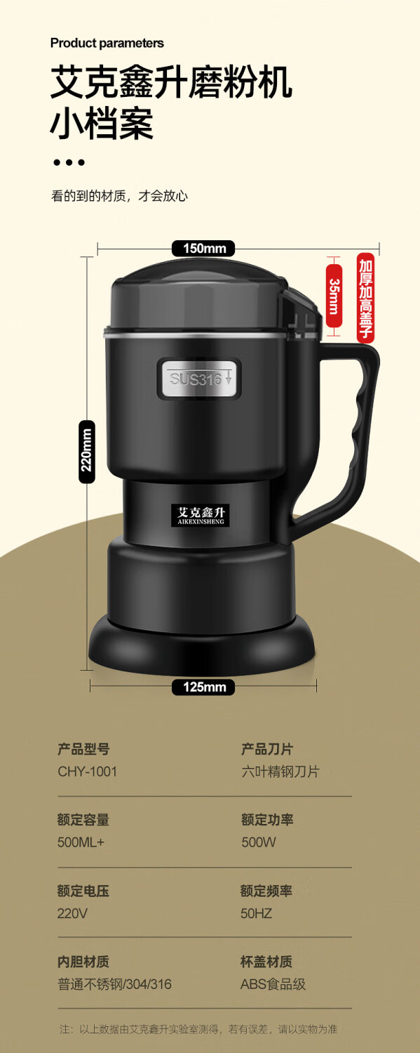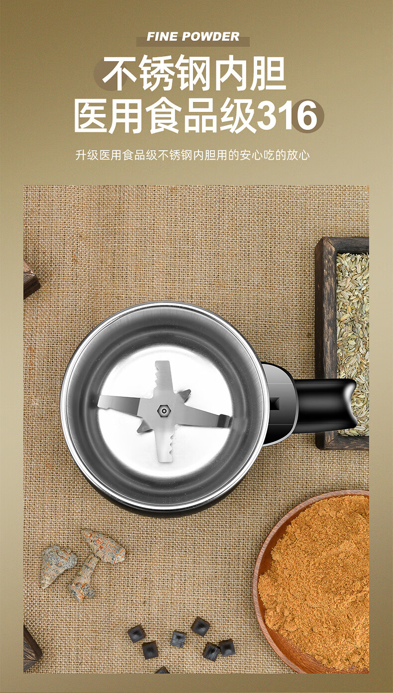 MZXM Japan imported quality crusher 304 household small electric Chinese herbal medicine grinding machine grain grinding stainless steel double-layer protection 304 material 500 large capacity large power 7 knives + mesh screen