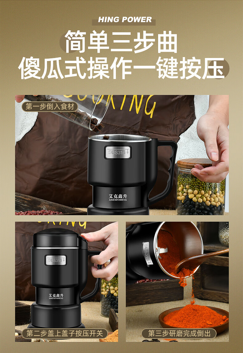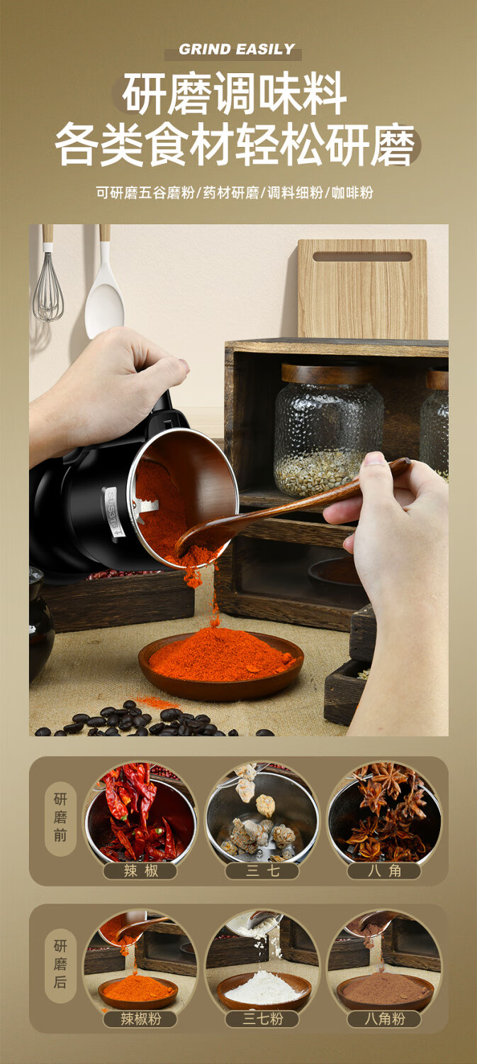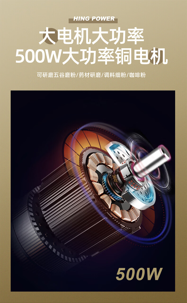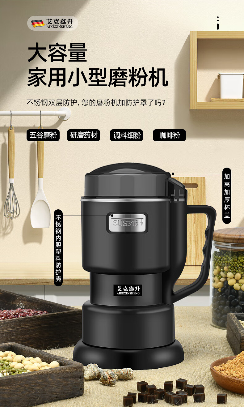 MZXM Japan imported quality crusher 304 household small electric Chinese herbal medicine grinding machine grain grinding stainless steel double-layer protection 304 material 500 large capacity large power 7 knives + mesh screen