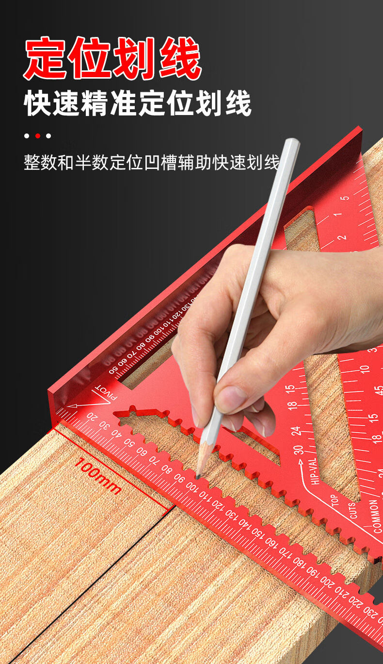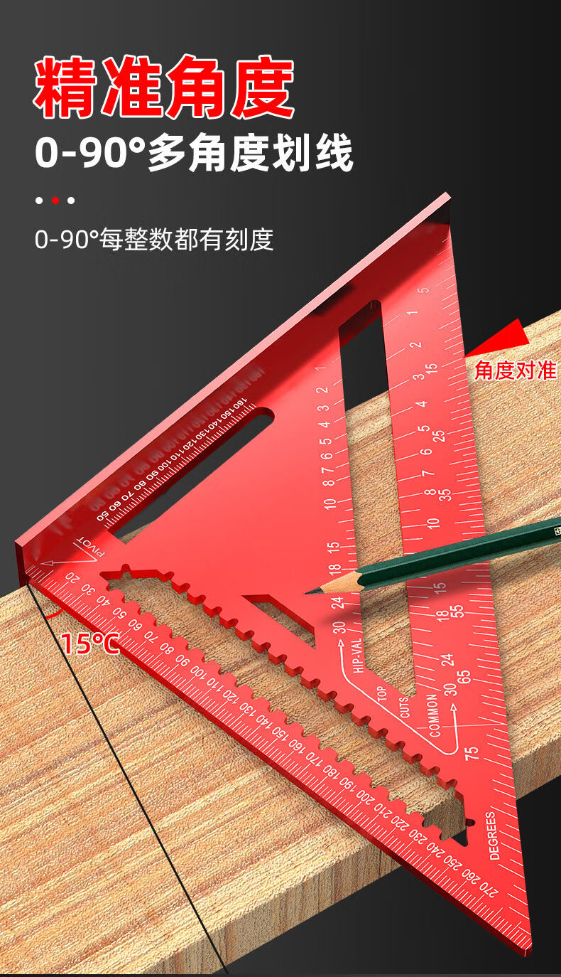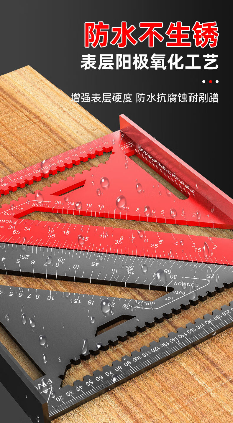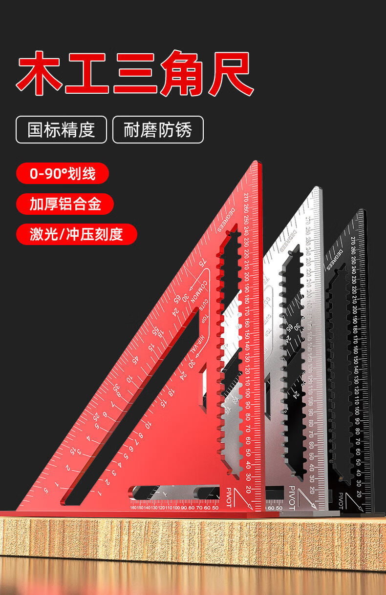 Yusenyi aluminum alloy triangle ruler large 45 degree thickened square ruler 90 degree right angle ruler woodworking and welding high precision alloy triangle ruler red model large 12 inches
