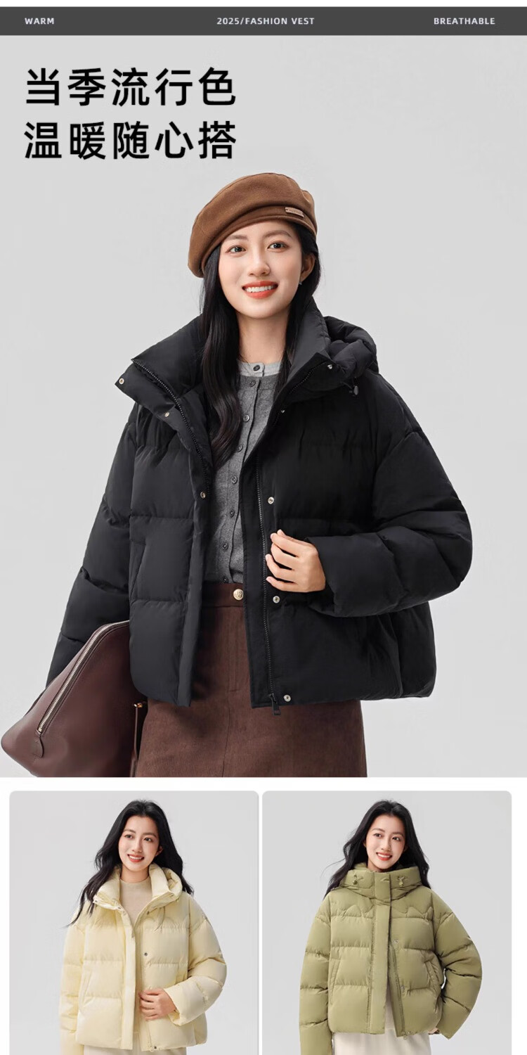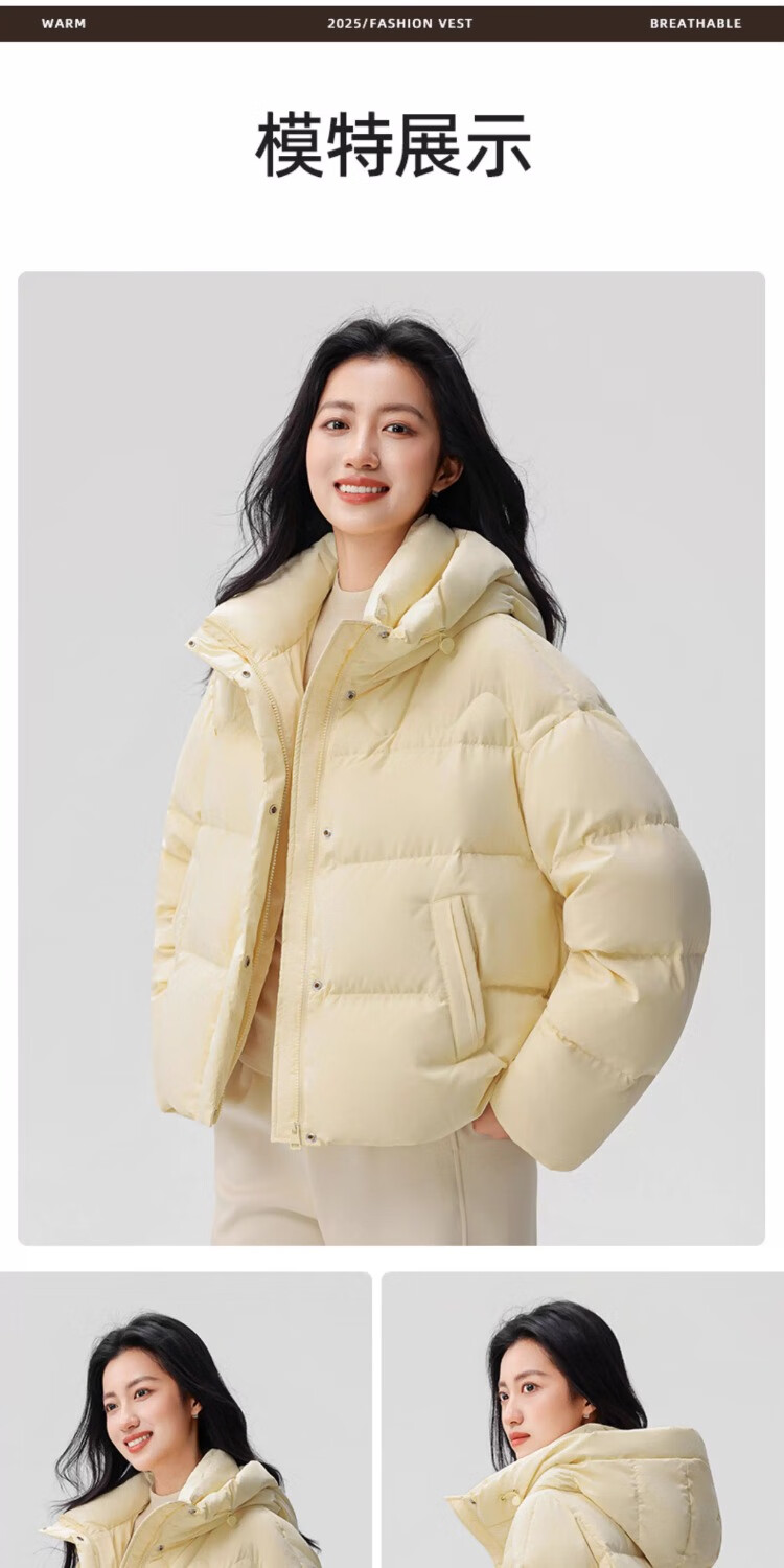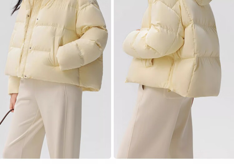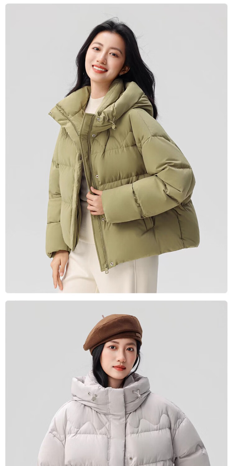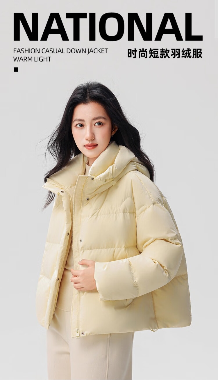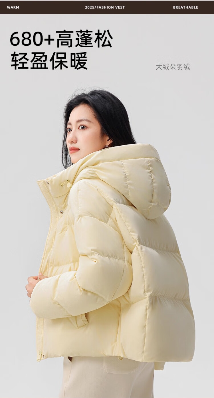 YAYA Down Jacket Women's 2025 Winter New Short Hooded Loose Trendy Versatile Fashion Casual Warm Jacket MY Beige M 160/84A