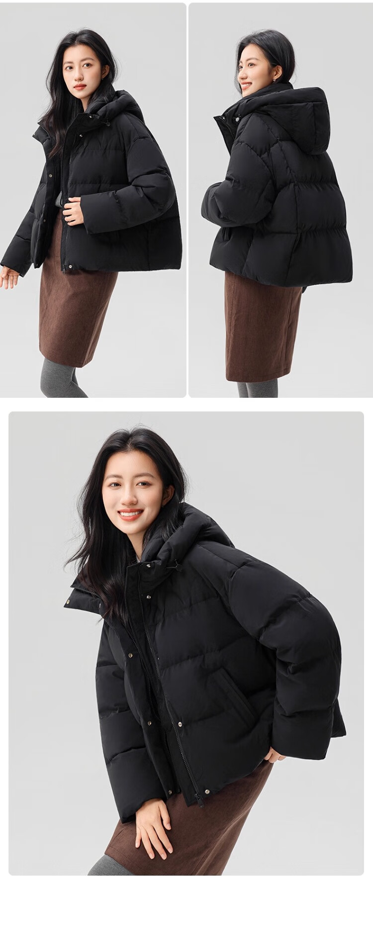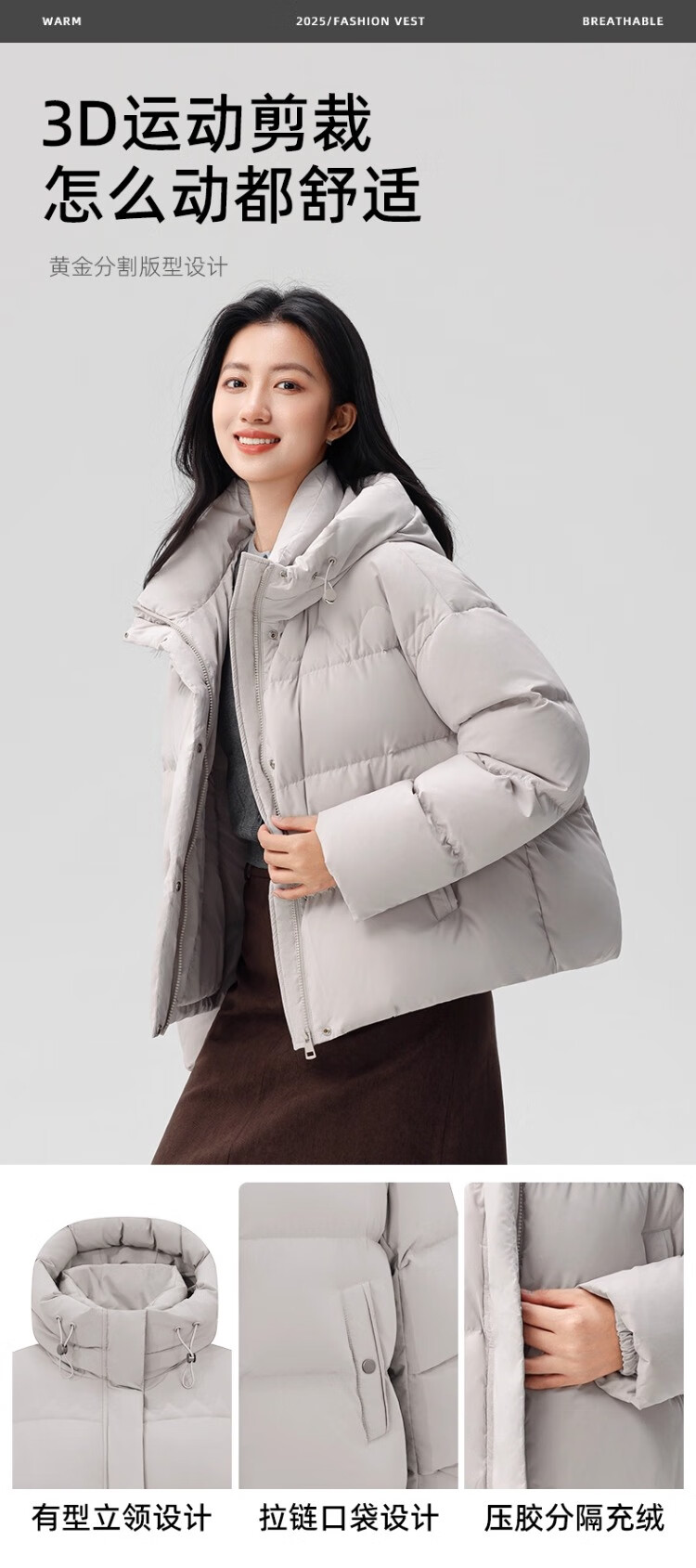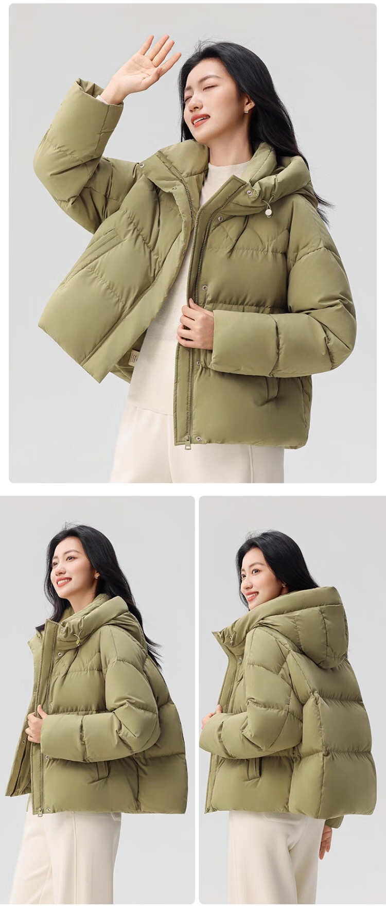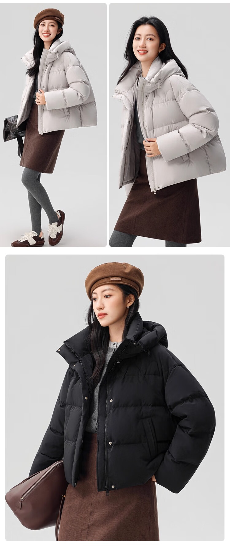 YAYA Down Jacket Women's 2025 Winter New Short Hooded Loose Trendy Versatile Fashion Casual Warm Jacket MY Beige M 160/84A