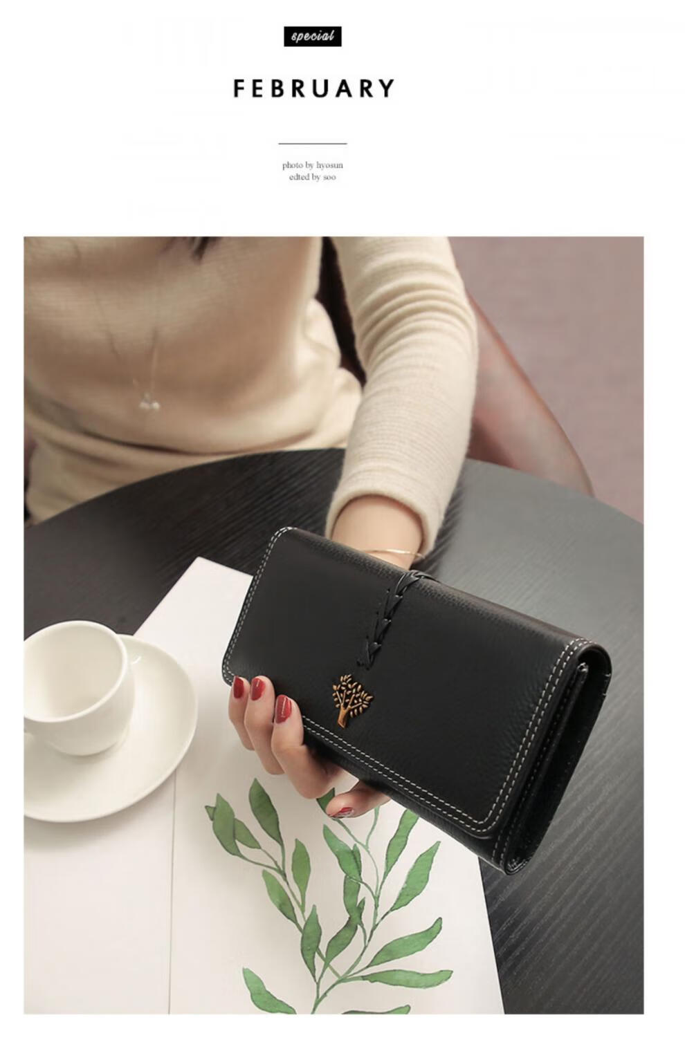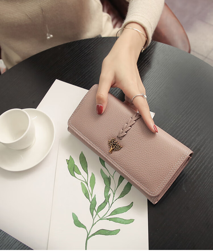 CHLING KAYAN small ck women's bag 2025 new Korean version trendy genuine leather two-fold women's wallet folding first-layer cowhide wallet black