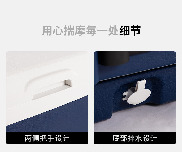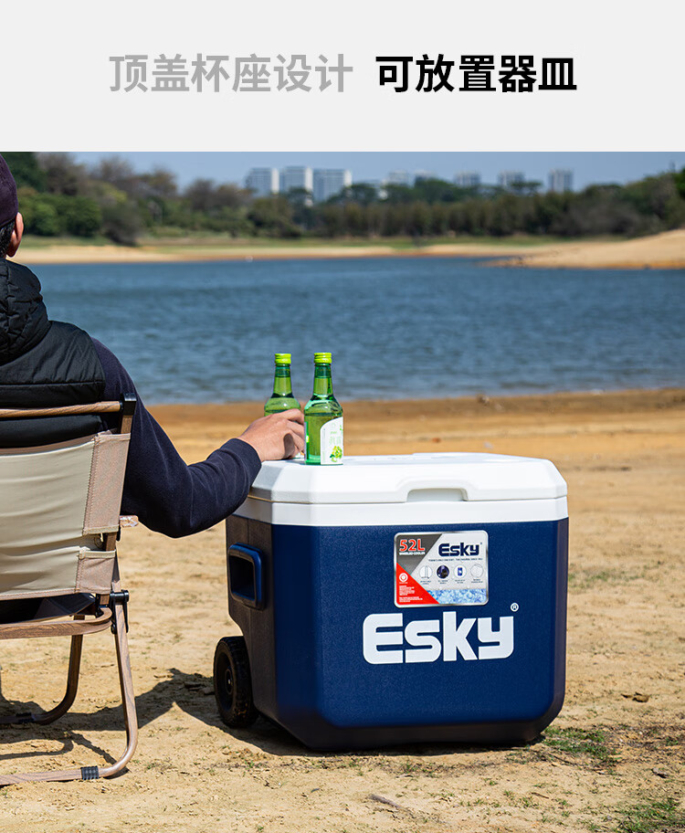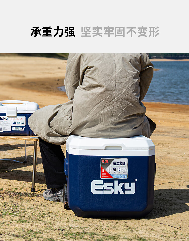 Eski outdoor insulated box refrigerated box car-mounted seafood food cold preservation box with rod and roller extra large capacity 52L deep sea blue high-efficiency model with rod_ice brick slot_roller_drainage outlet free 1