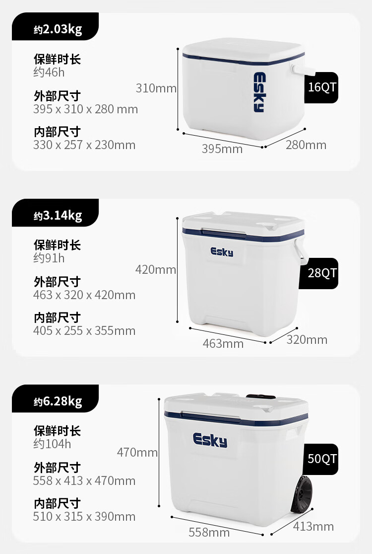 Esky Insulated Box Refrigerator Home Vehicle Mounted Outdoor Food Cooler Box Portable Commercial Stall Fresh Box Ice Bucket 15L Deep Sea Blue Flagship Model with Hinge_Sealed Buckle Free Ice Brick*2 14