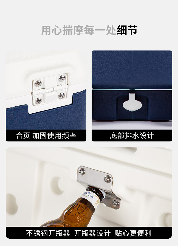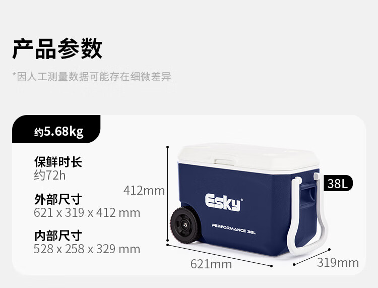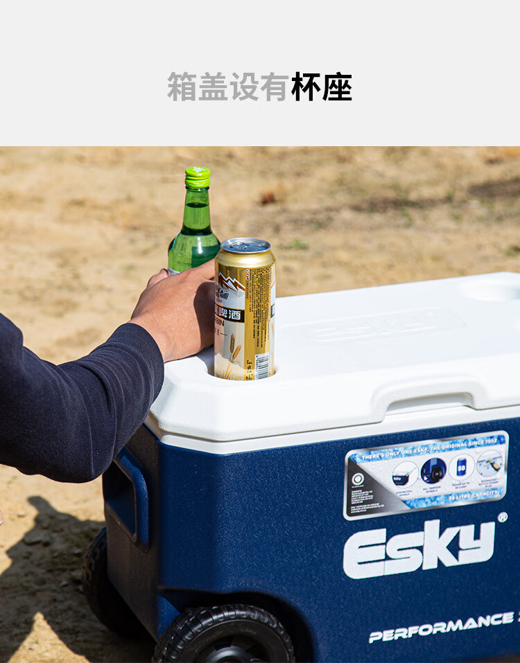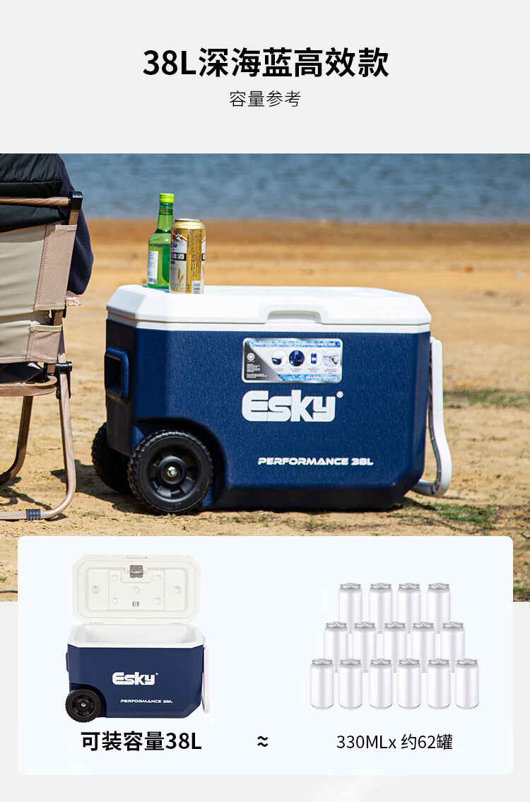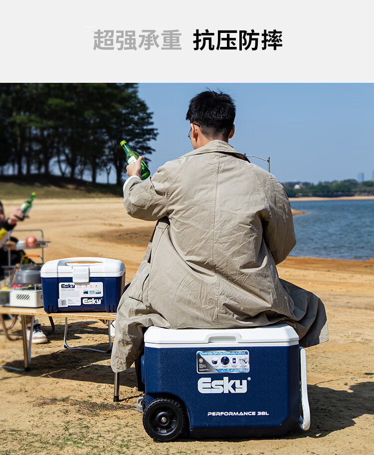 Eski insulated box 38L outdoor camping trolley box car food preservation box outdoor refrigerated box sea fishing box 38L pearl white high-efficiency model with trolley_cup holder_roller_drainage outlet ice delivery 1