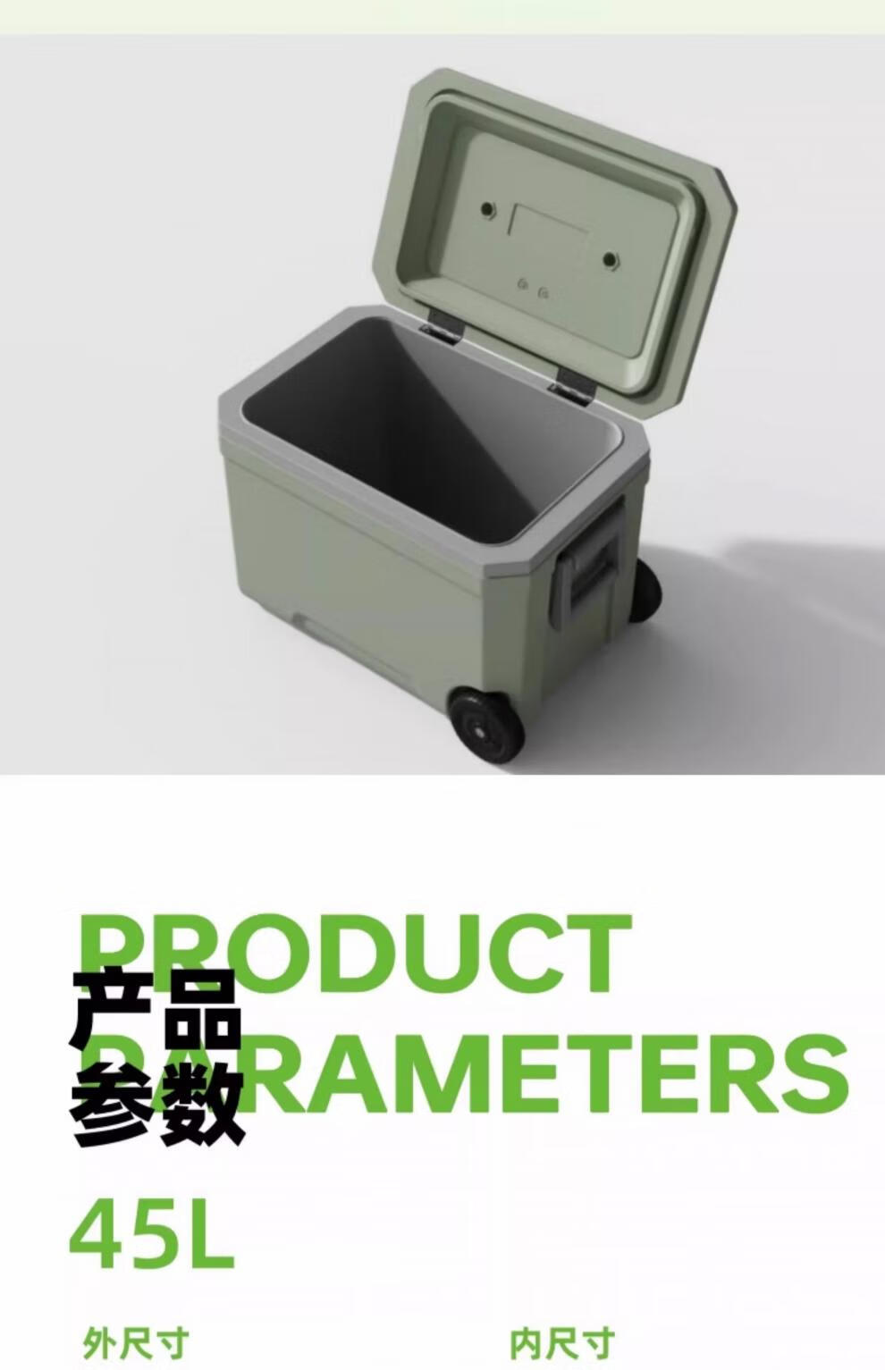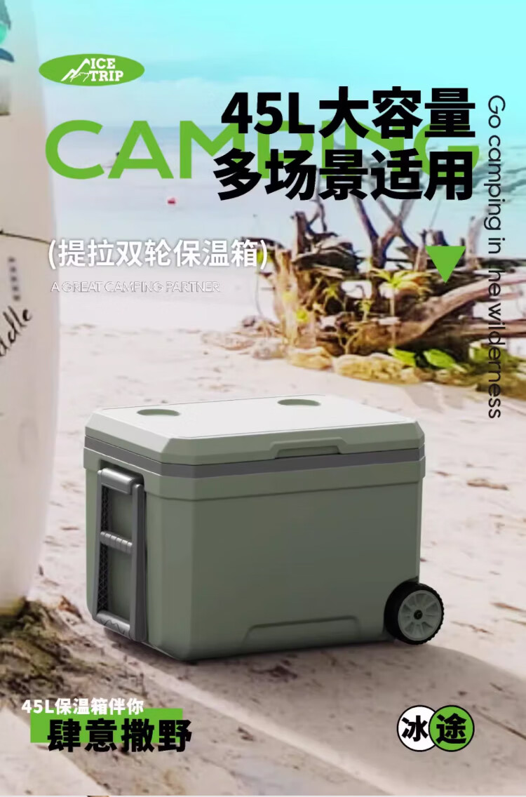 Bingtu ICETRIP insulated box ice refrigeration wheeled pull rod fresh-keeping ice bucket commercial stall outdoor camping sea fishing 45 liters green wheeled drainage hole_roller_handle_cup holder 1