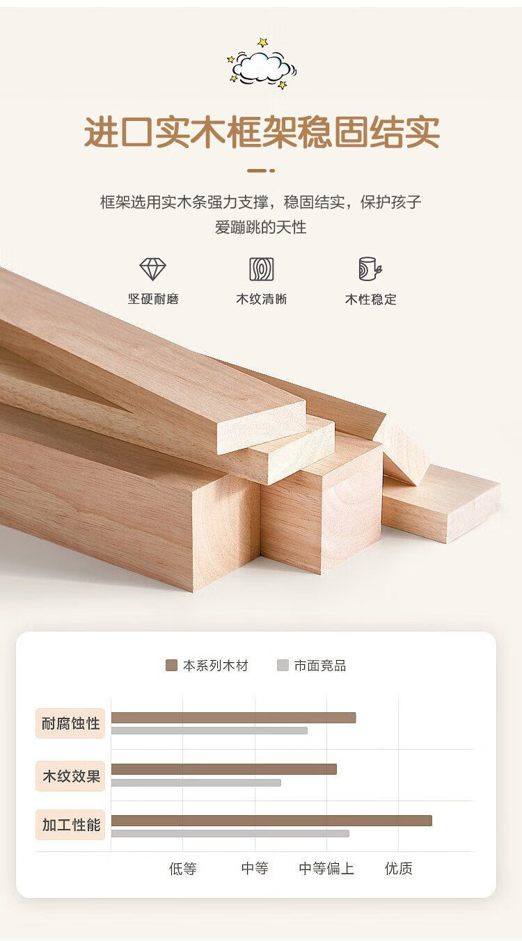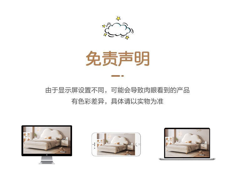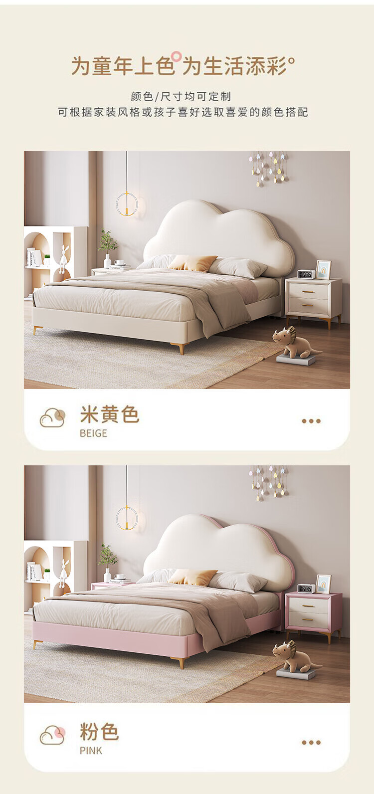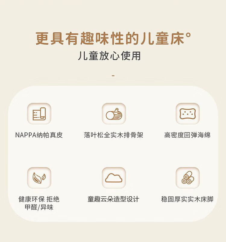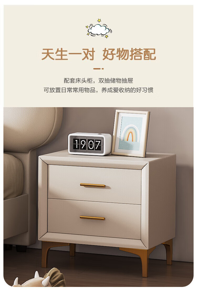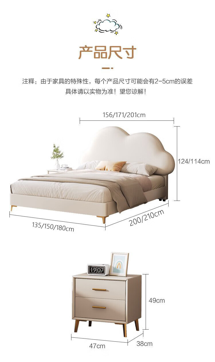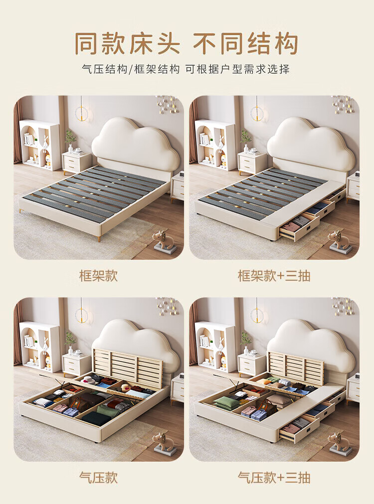 Cream Wind Cloud Children's Leather Bed Modern Simple Solid Wood Double Bed Boys and Girls Princess Bed Cartoon Storage Bed Quality/Children's Bed Color Note/Delivery to Home 1200mm*2000mm Frame Structure