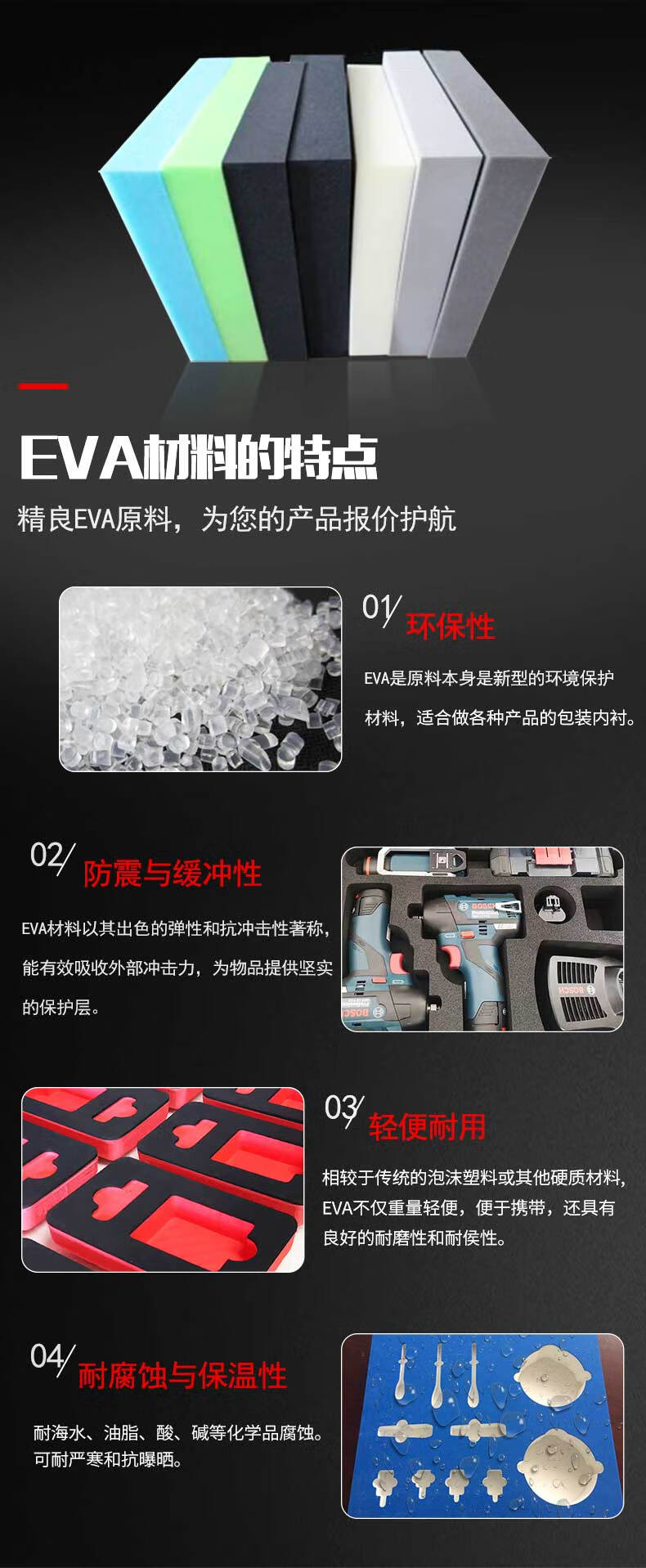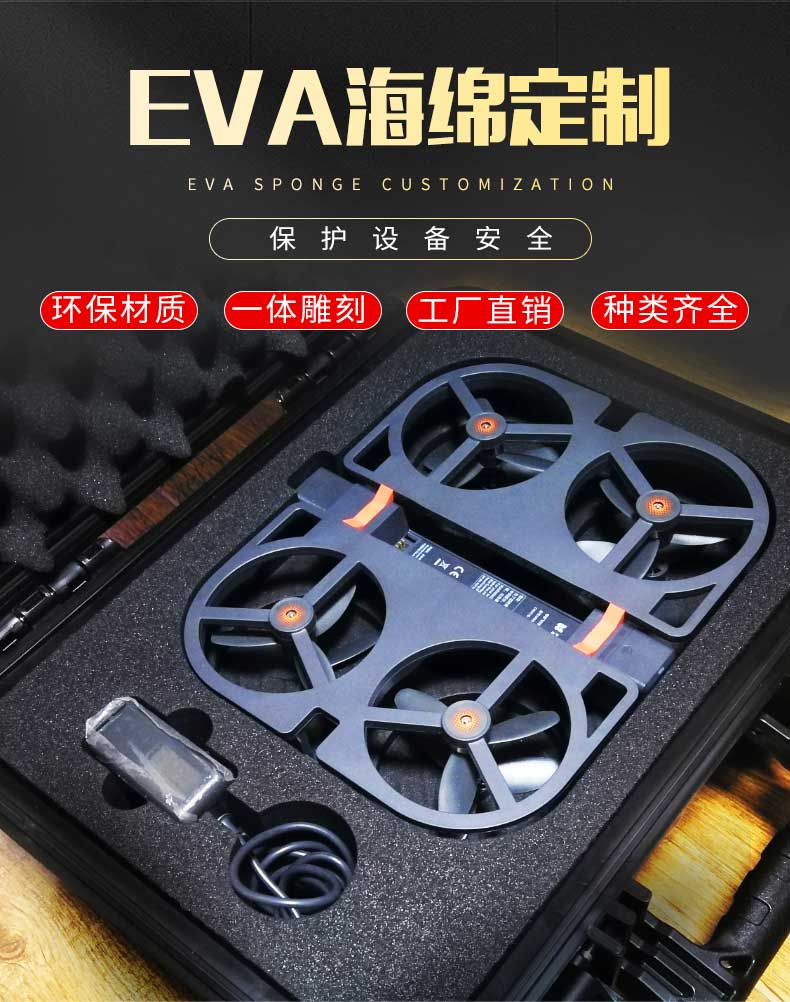 EVA sponge lined custom tool box packaging shockproof foam processing custom engraved black inner holder black 18-20 times 30-38 degrees