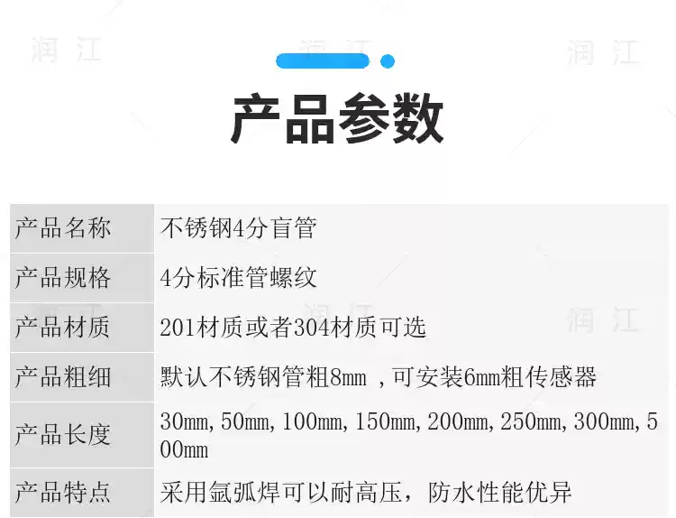 Solar water heater temperature sensing shell probe water tank protective sleeve stainless steel 4-point thread waterproof blind tube outer diameter 8mm long 150mm201 material
