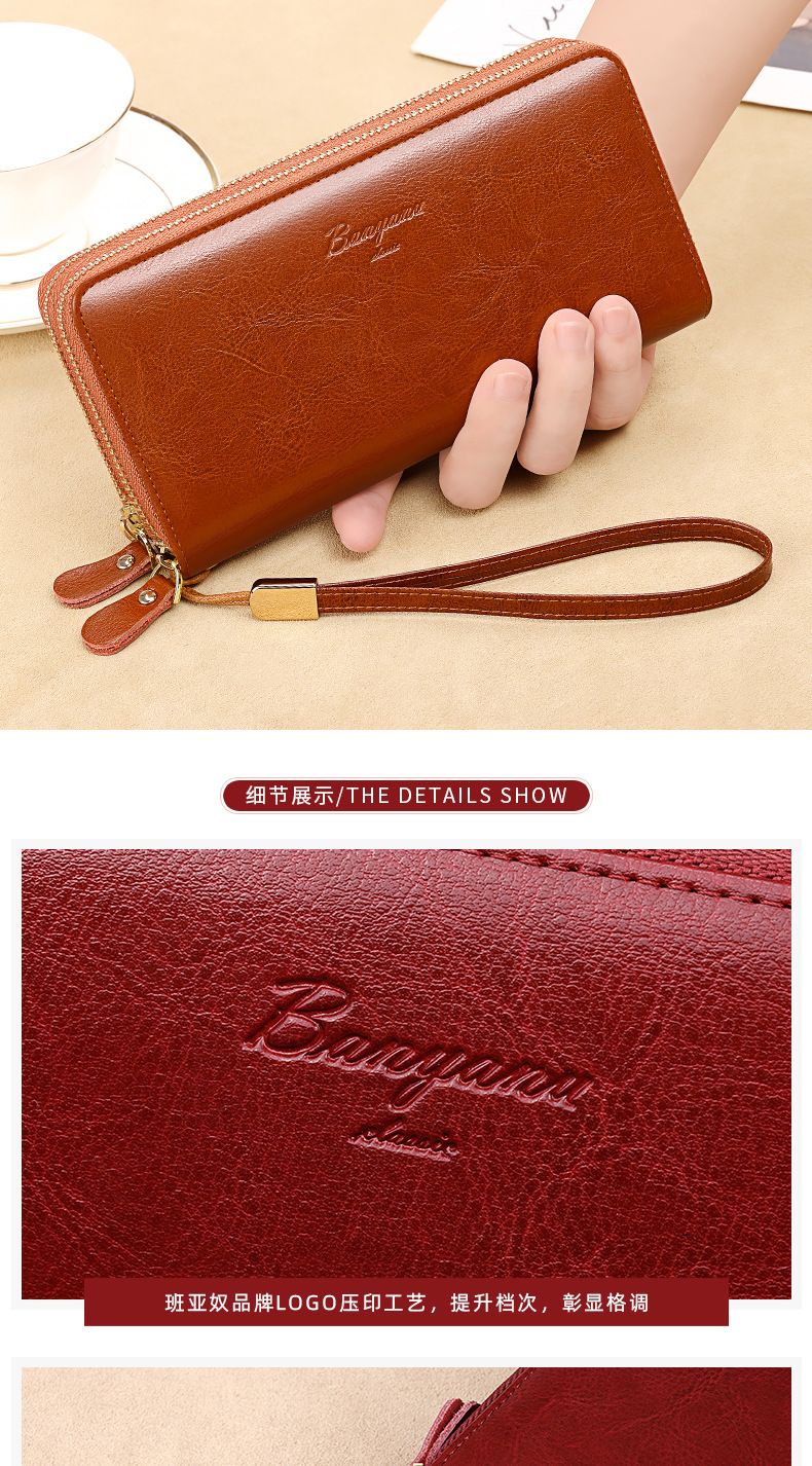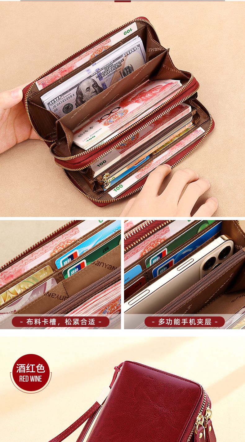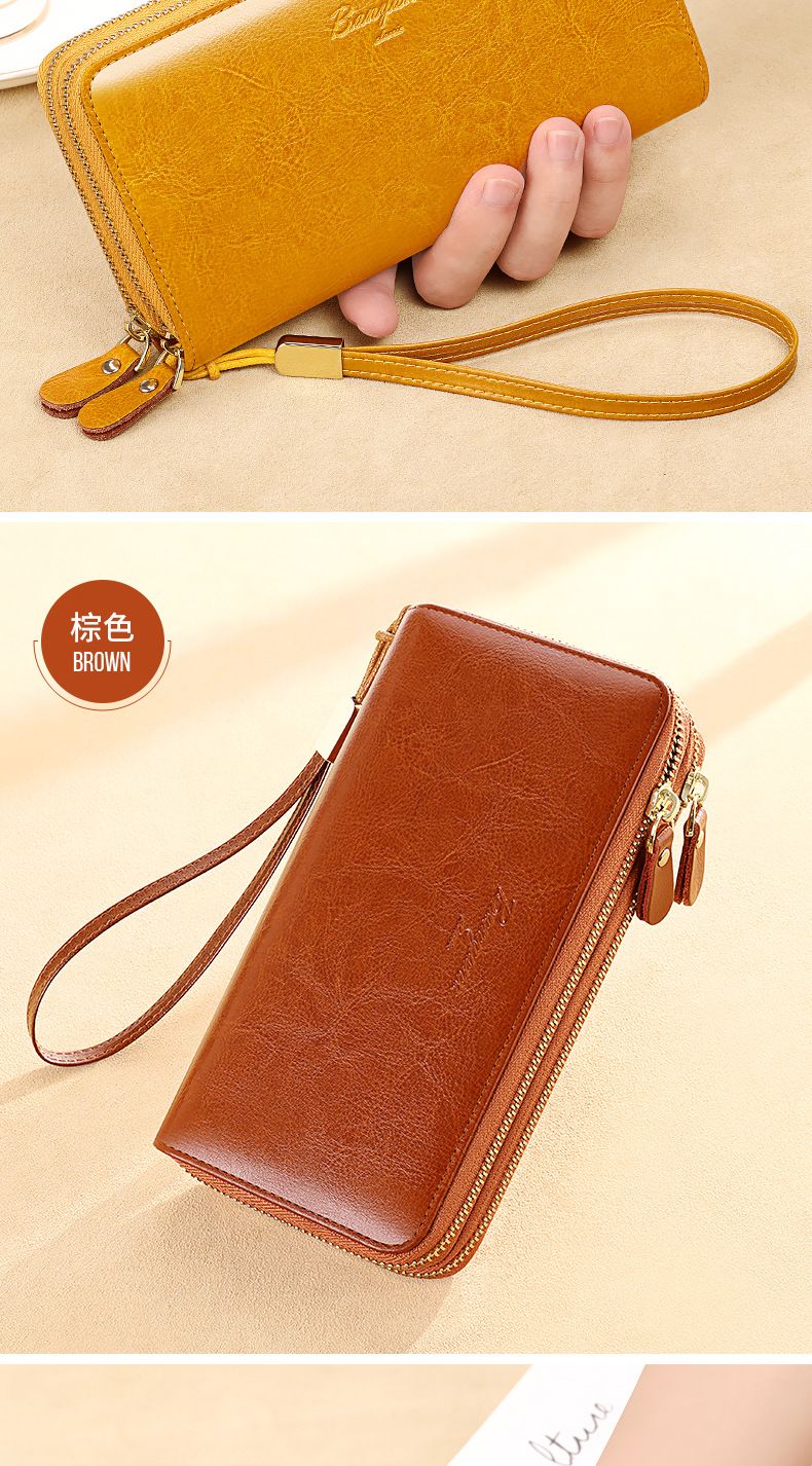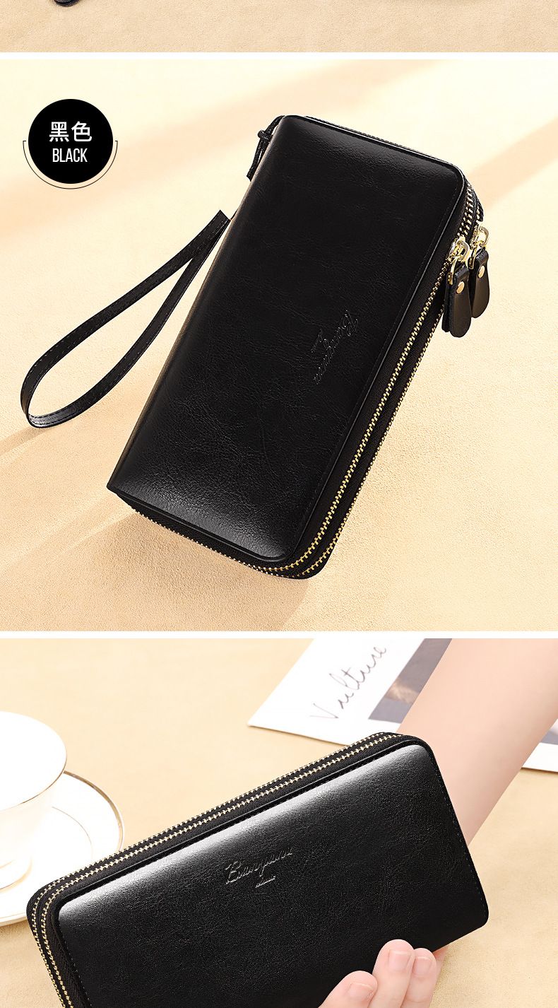 New high-looking leather long wallet women's double zipper large capacity clutch black (double zipper) anti-theft brush