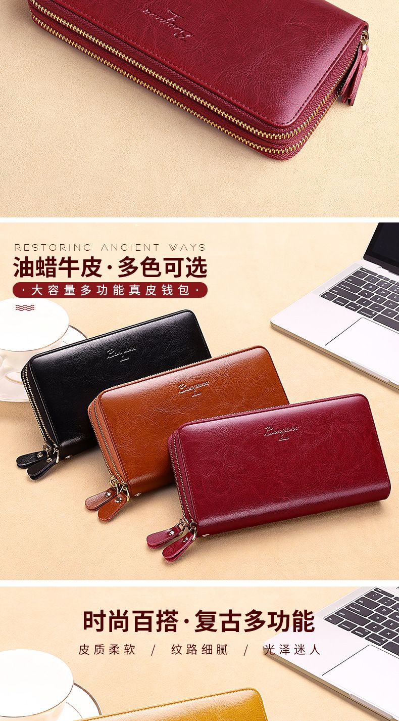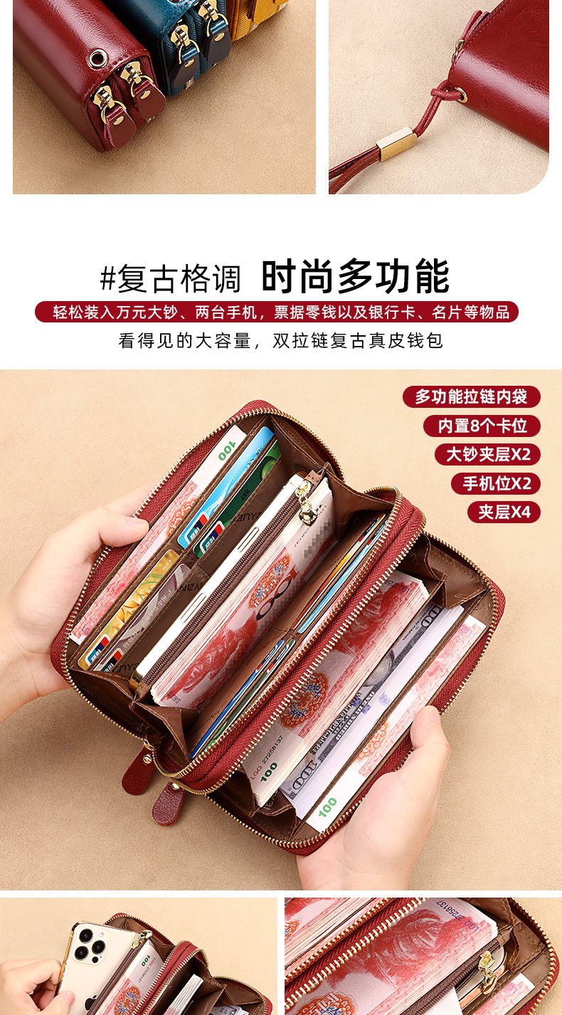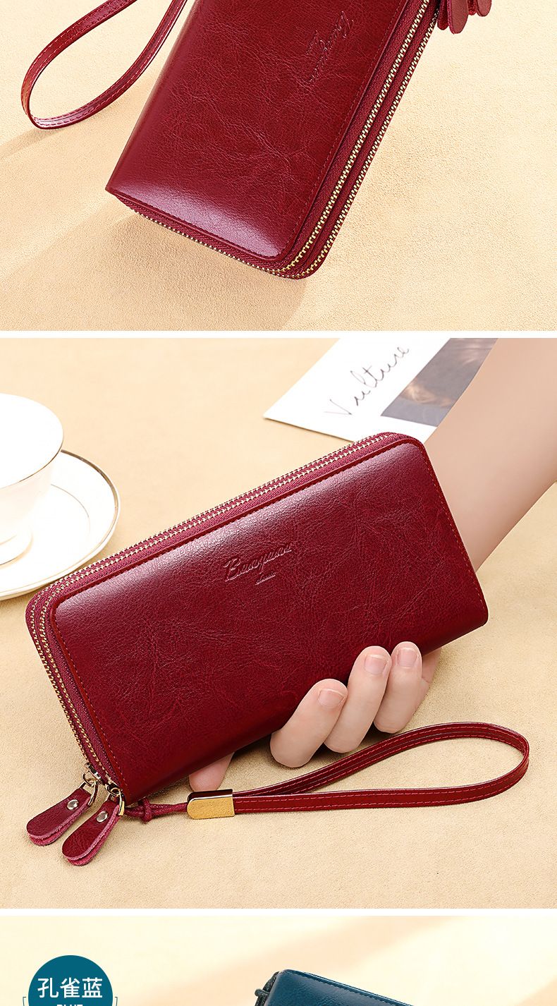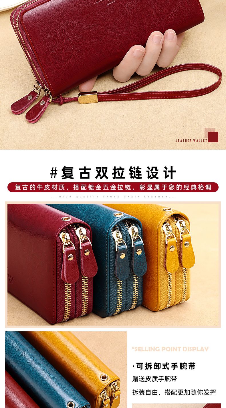 New high-looking leather long wallet women's double zipper large capacity clutch black (double zipper) anti-theft brush