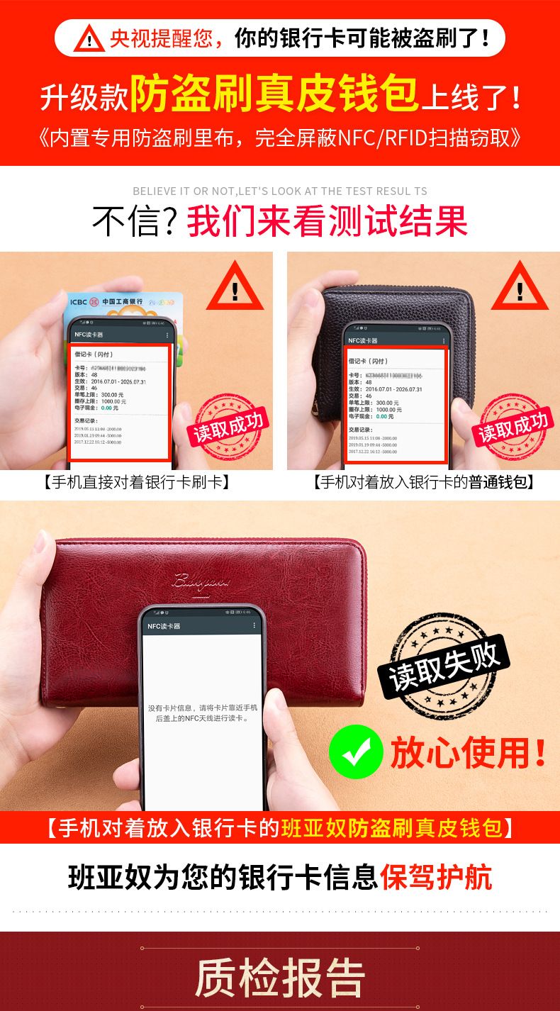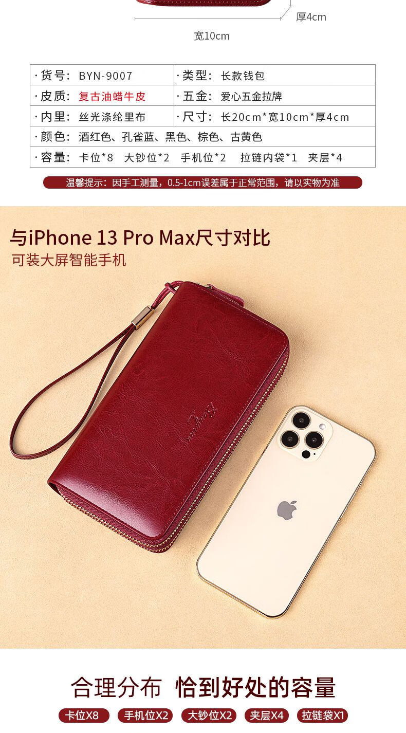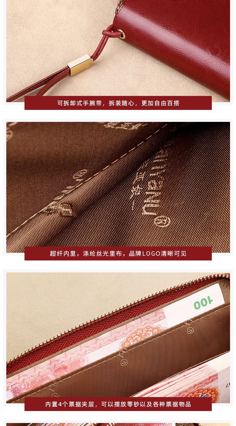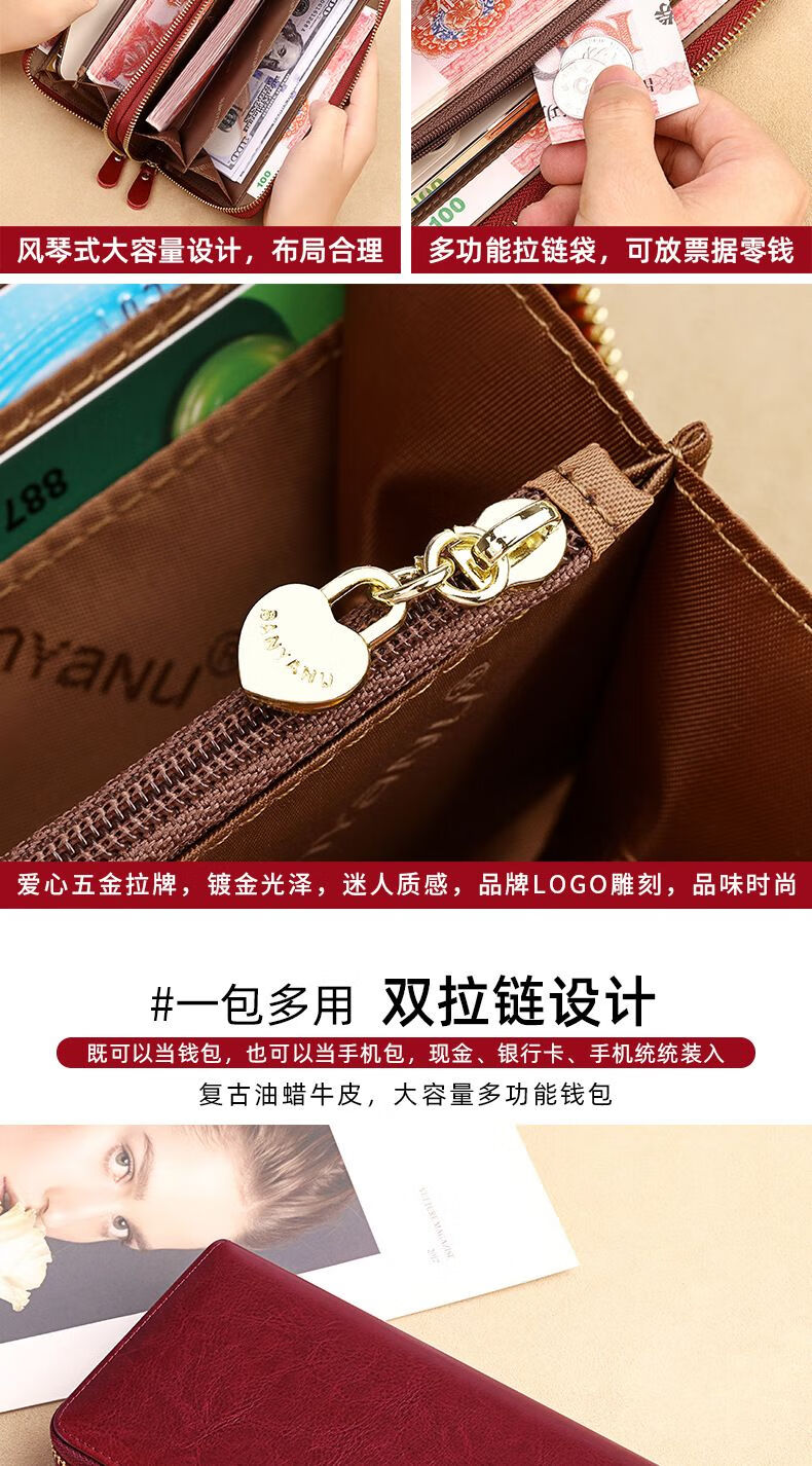 New high-looking leather long wallet women's double zipper large capacity clutch black (double zipper) anti-theft brush