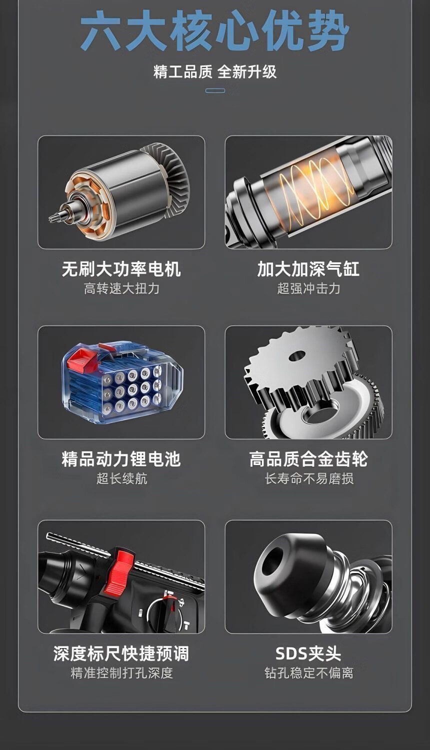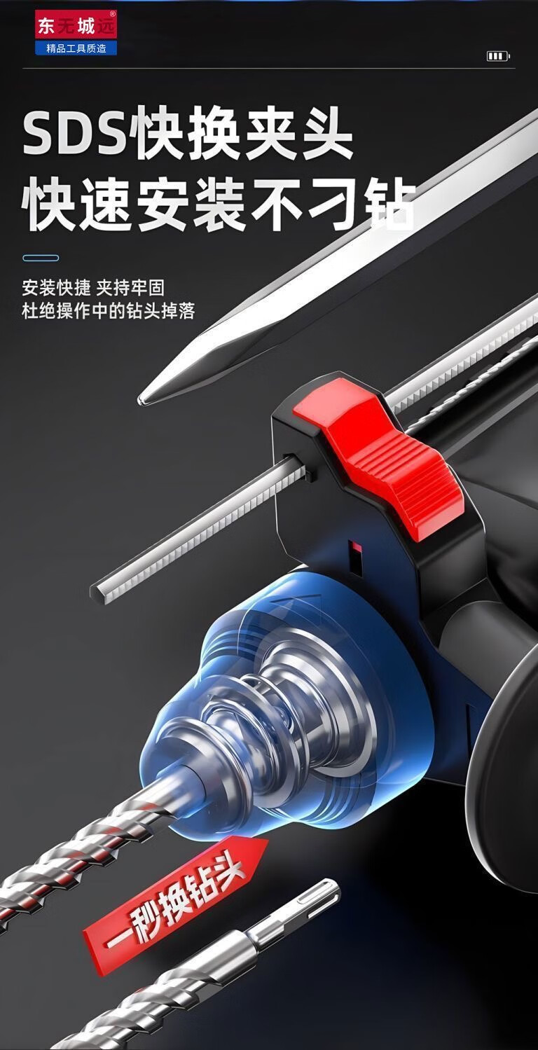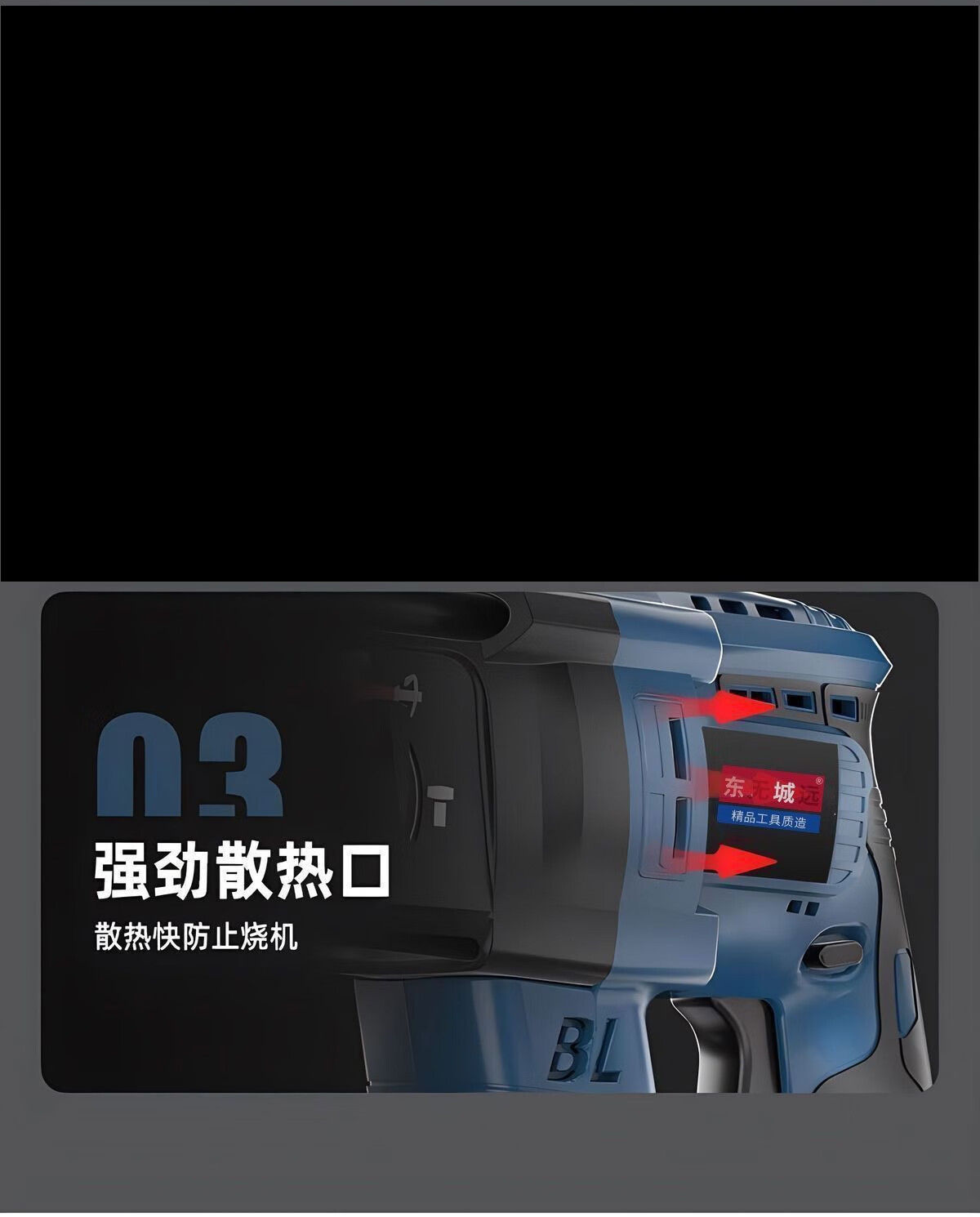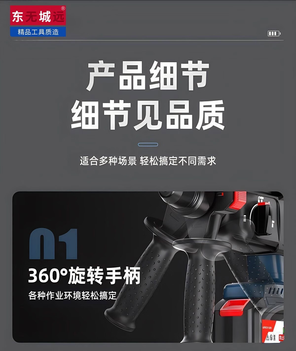 Dongcheng style brushless electric hammer rechargeable lithium battery pick high power concrete wall hole three-purpose impact drill for home use industrial grade 20 cells two batteries one charge + plastic box