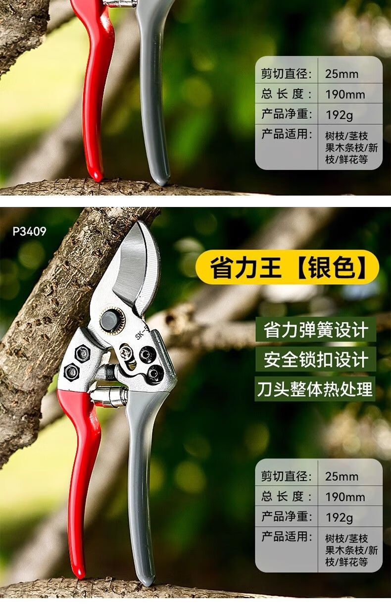 SK5 powerful gardening shears imported from Germany, stainless steel labor-saving pruning shears for thick branches of fruit trees (high-quality model in the main picture) upgraded hand guard (enhanced hardening process)