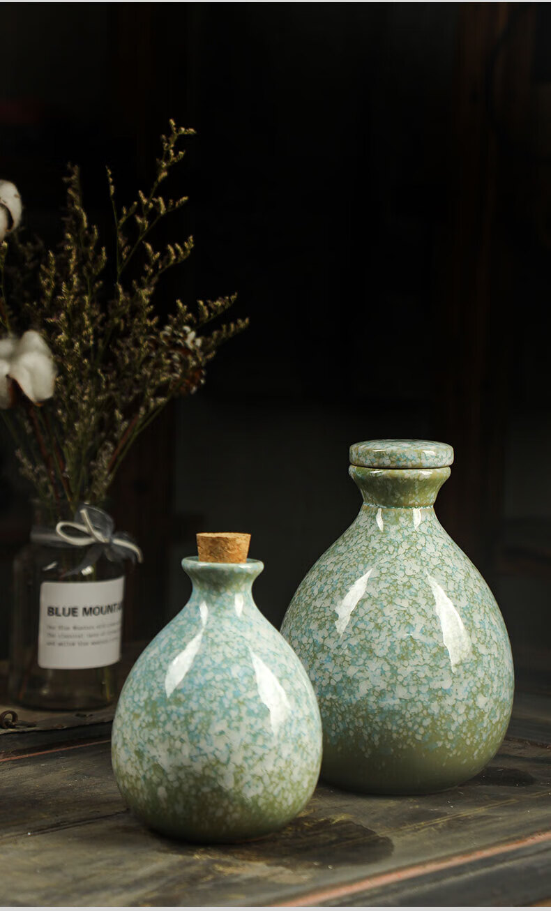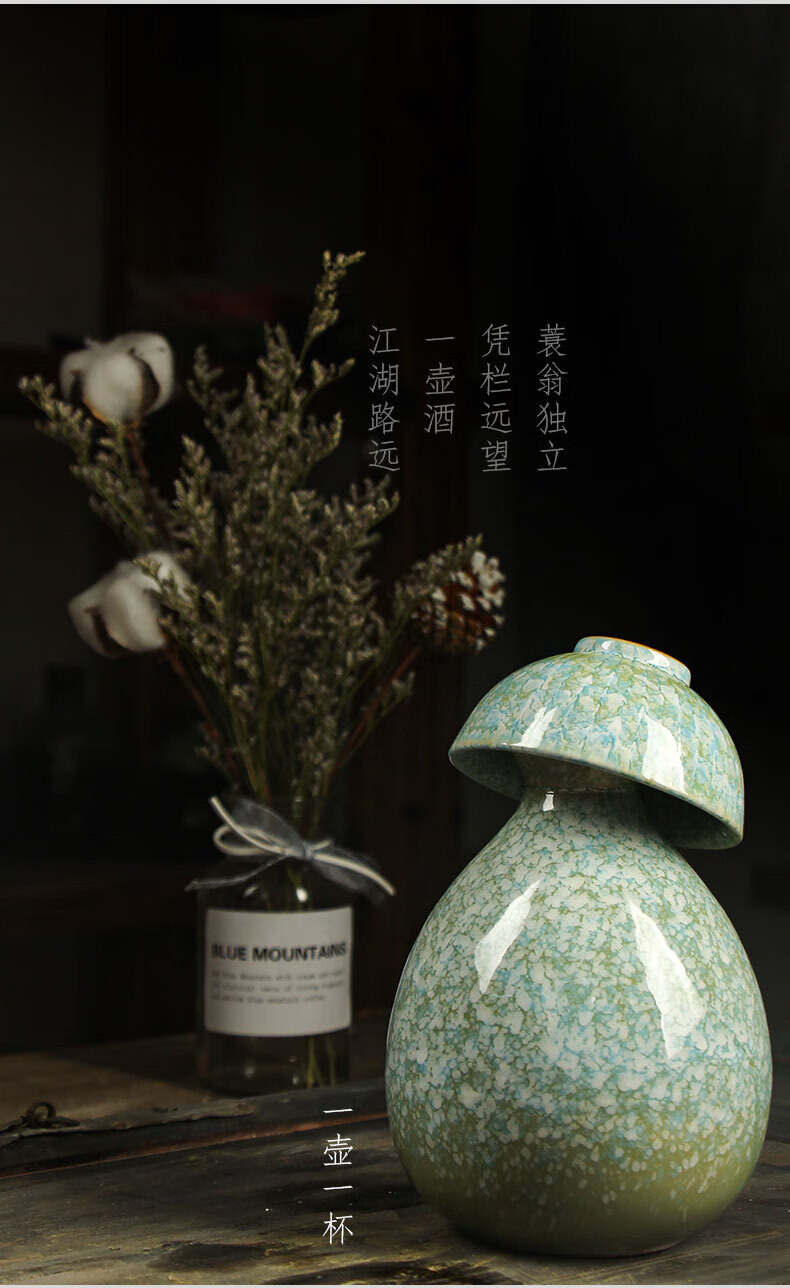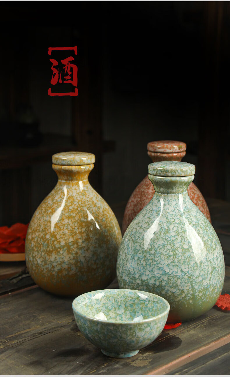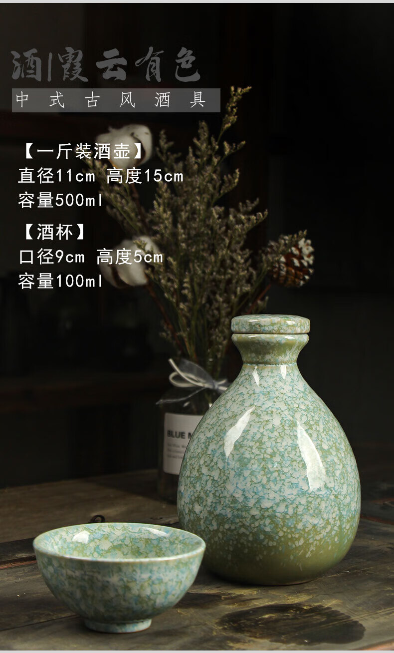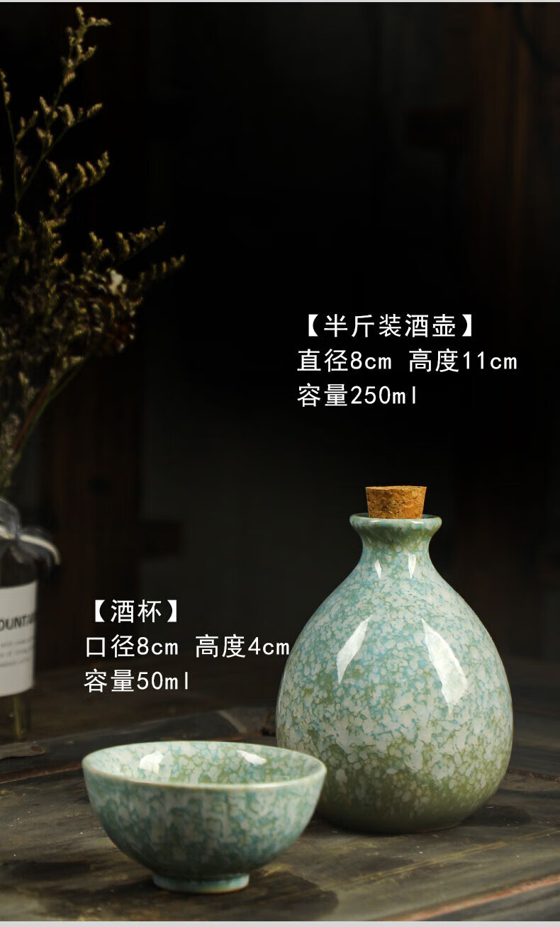 He Jiagong ancient ceramic wine jar household Chinese style sealed 1 jin half jin wine jug empty wine bottle wine glass wine set light pink one pot and one cup (one jin)