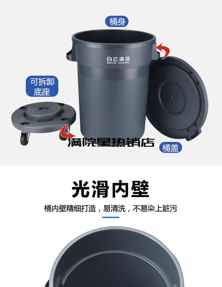 Baiyun Clean Baiyun sanitation trash can large thickened round storage bucket with wheels outdoor kitchen manufacturer 5-wheel base 120L168L base