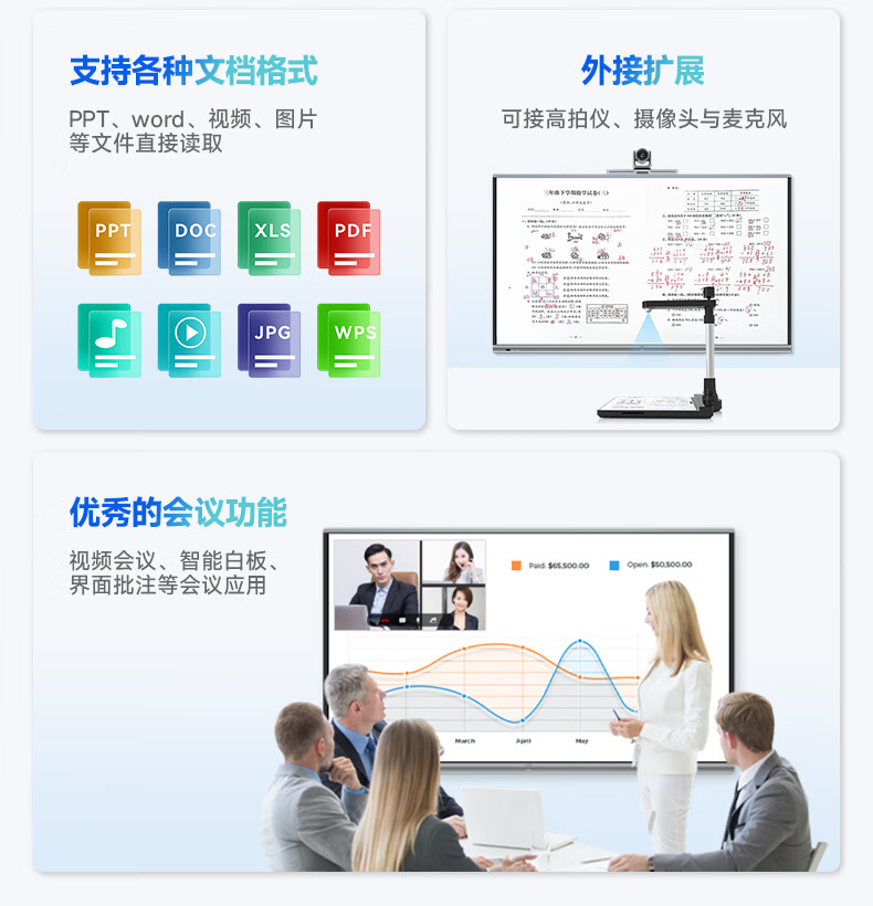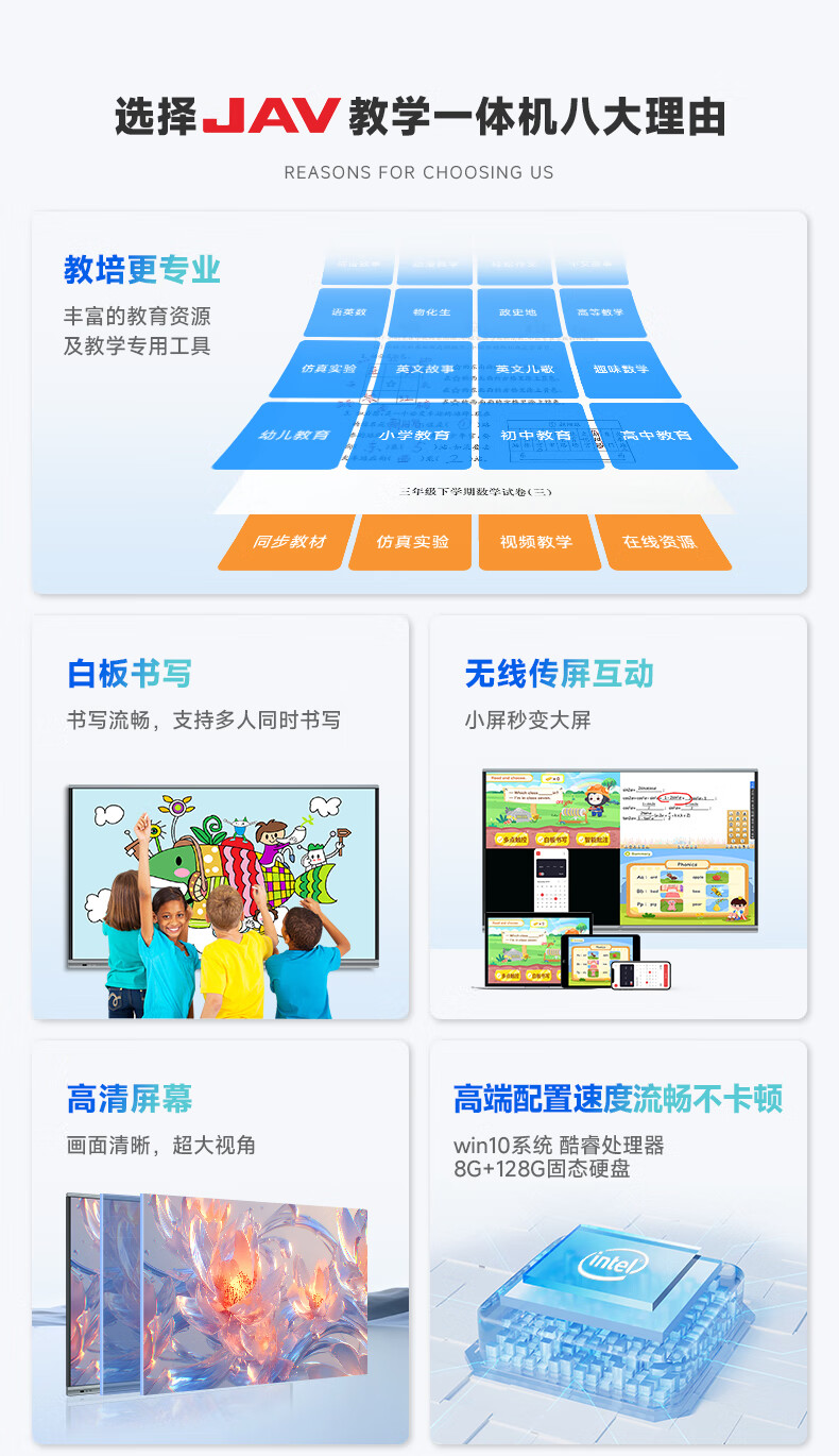 JAV multimedia teaching all-in-one machine AI interactive electronic whiteboard touch screen large screen display multimedia touch integrated kindergarten education training smart TV 75-inch Win10 same screen device + page turning pen + cart Windows Core i7 8G + 256G