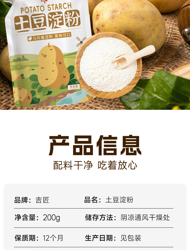 Authentic pure potato flour, raw starch, potato starch, potato starch, household commercial thickening special flour, potato starch 200g*1 bag