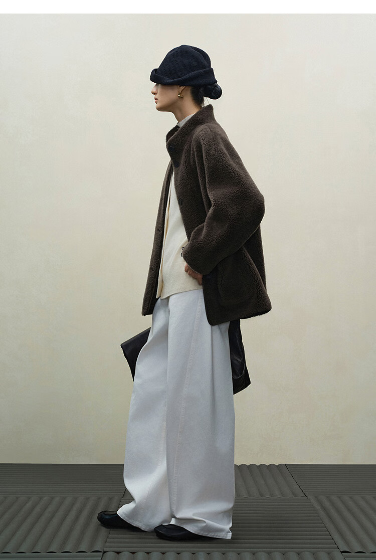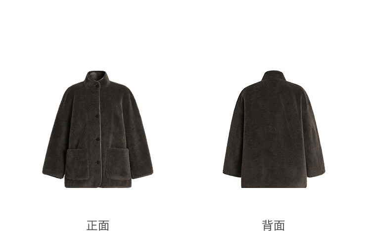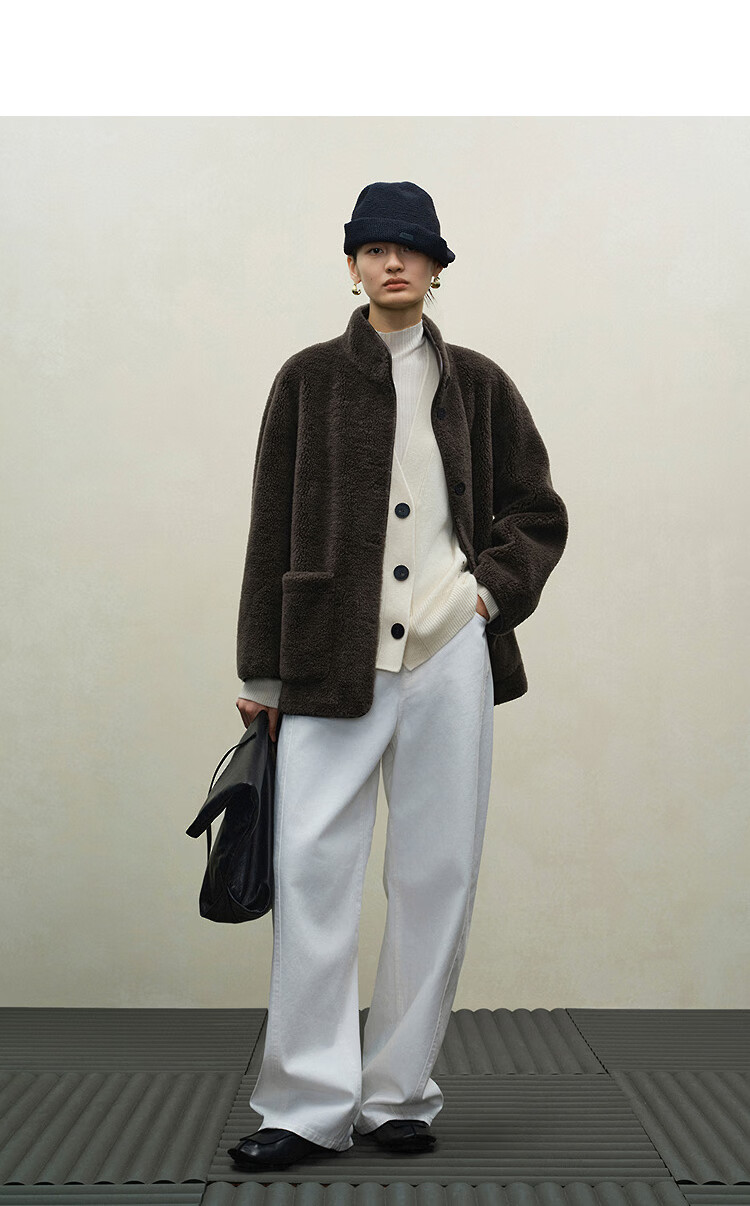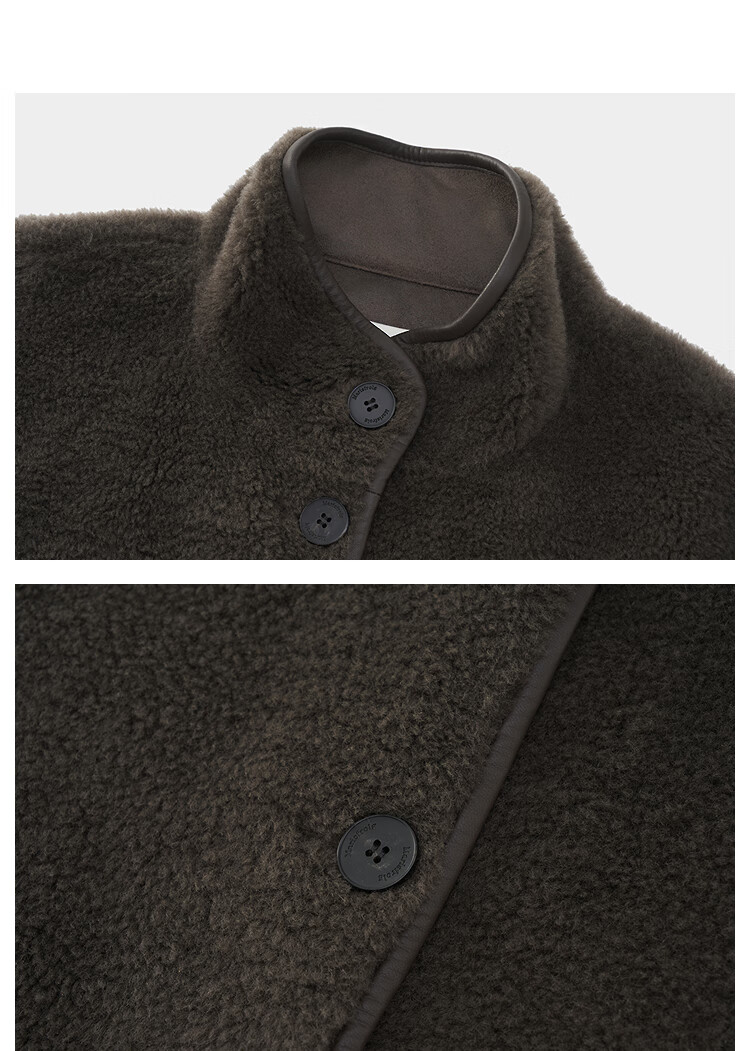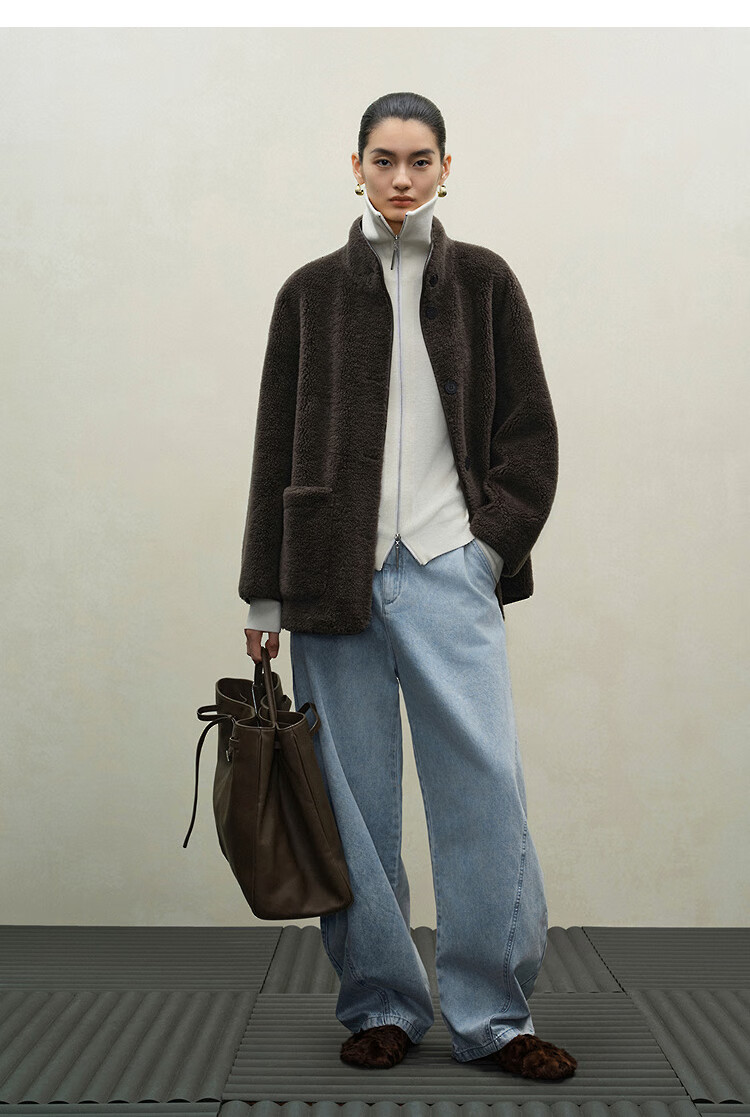 Marisfrolg 2025 winter new stand-up collar silhouette lambswool eco-friendly fur coat brown gray M