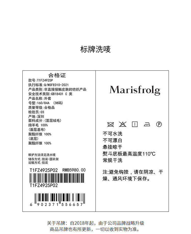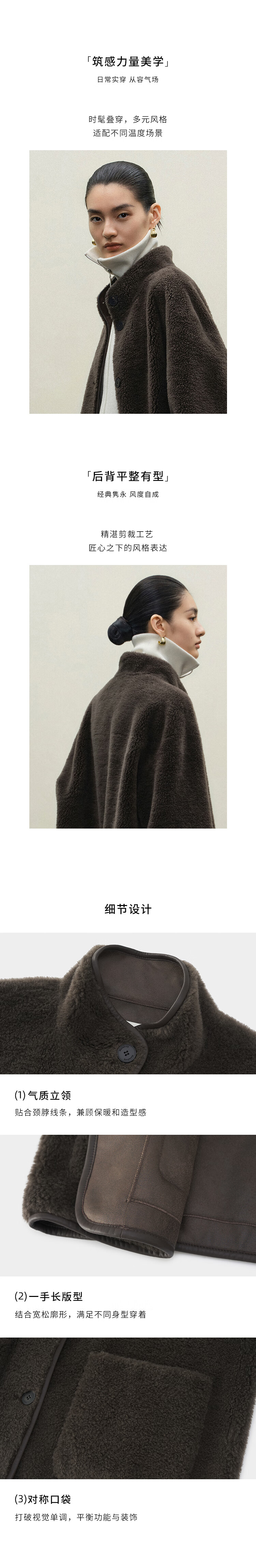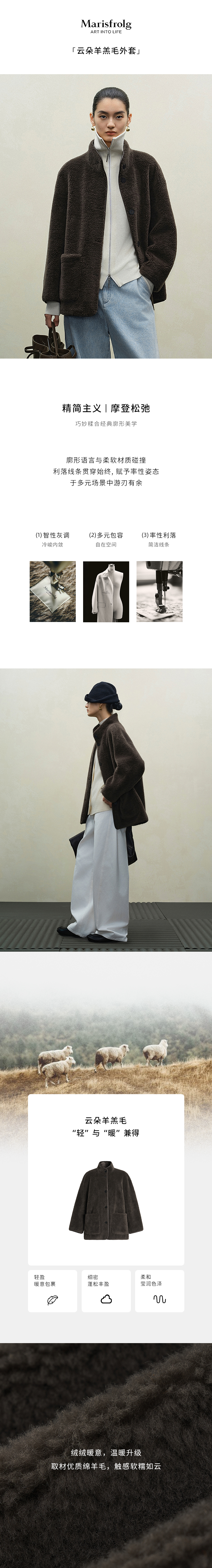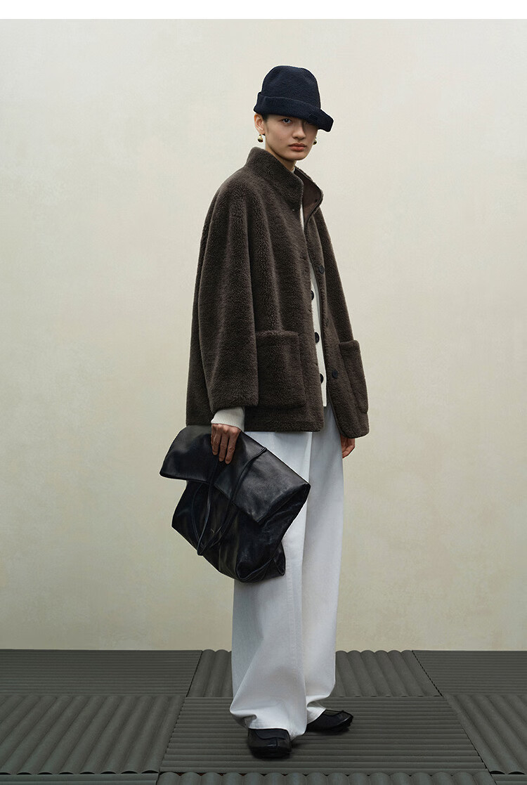 Marisfrolg 2025 winter new stand-up collar silhouette lambswool eco-friendly fur coat brown gray M