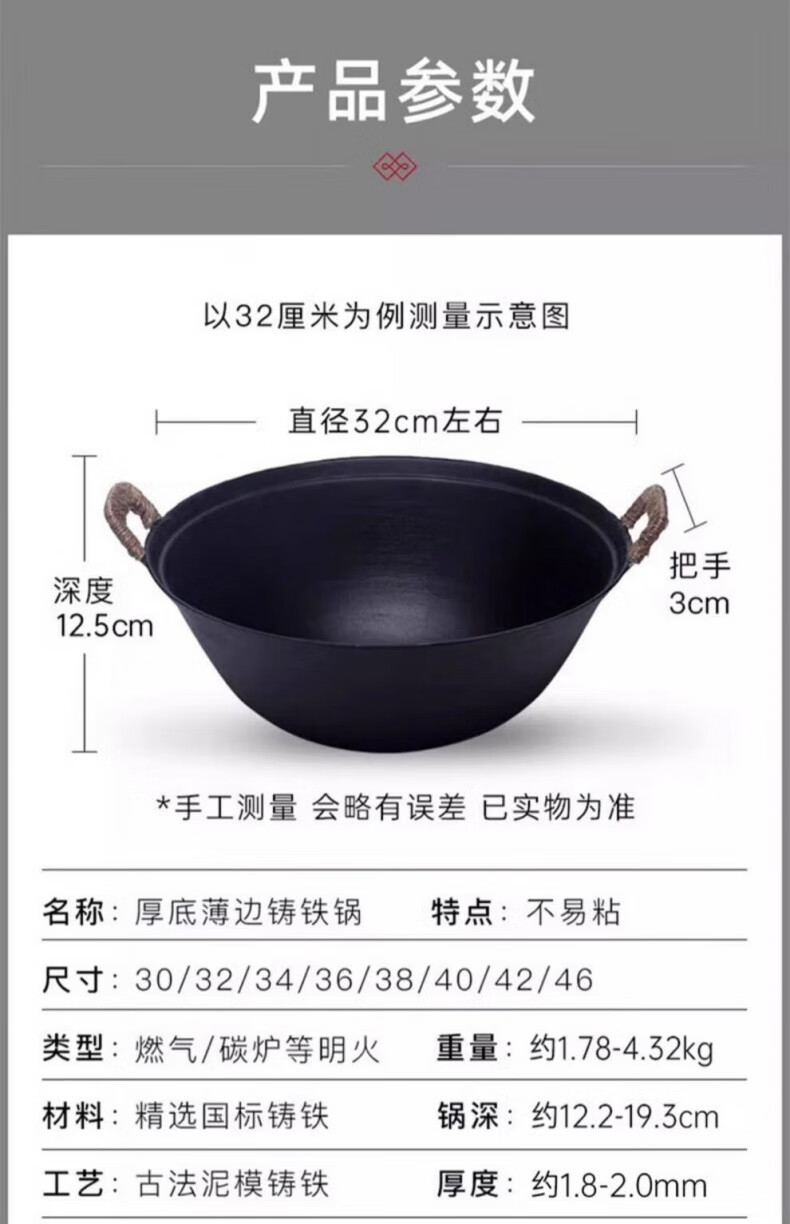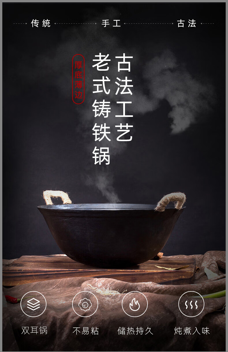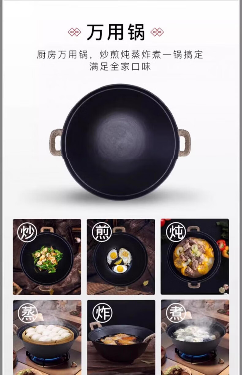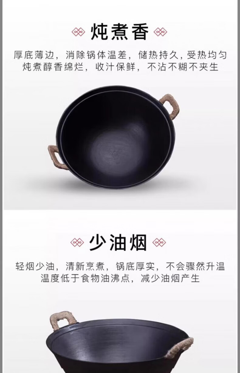 Zhensanhuan old-fashioned iron pot cast iron pot uncoated and not easy to stick double-eared stew pot stew pot wok thick bottom thin edge 30cm