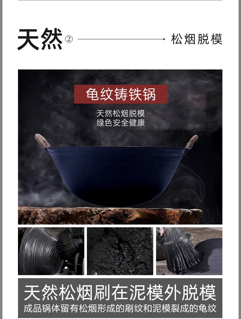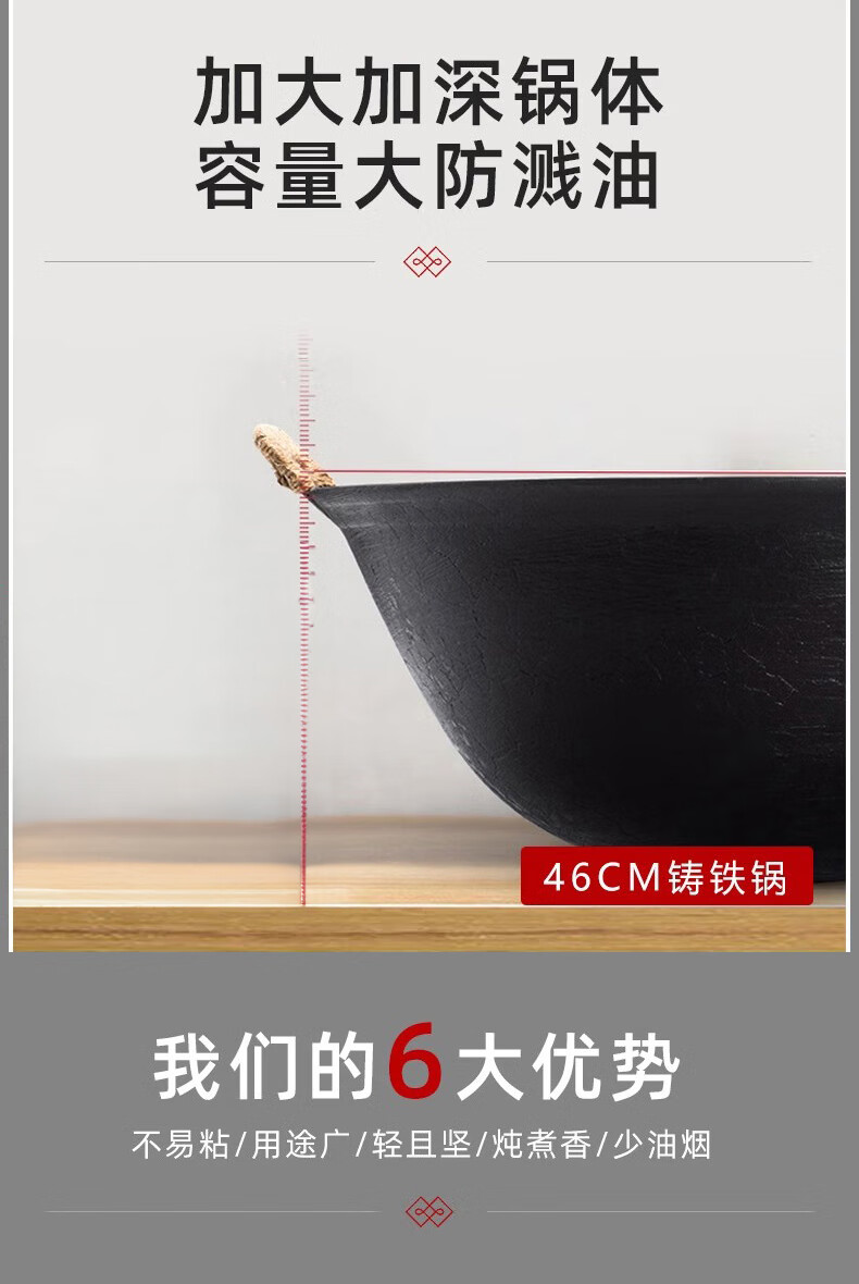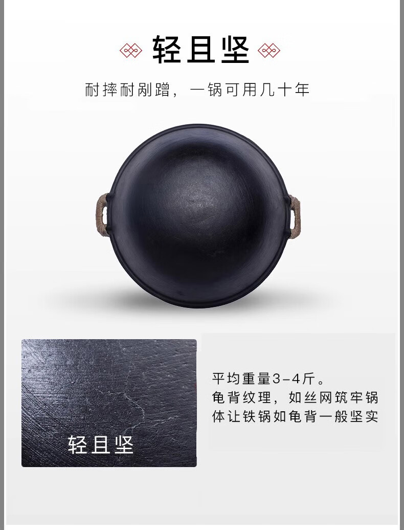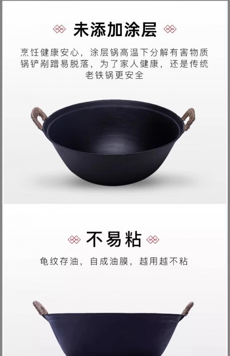 Zhensanhuan old-fashioned iron pot cast iron pot uncoated and not easy to stick double-eared stew pot stew pot wok thick bottom thin edge 30cm