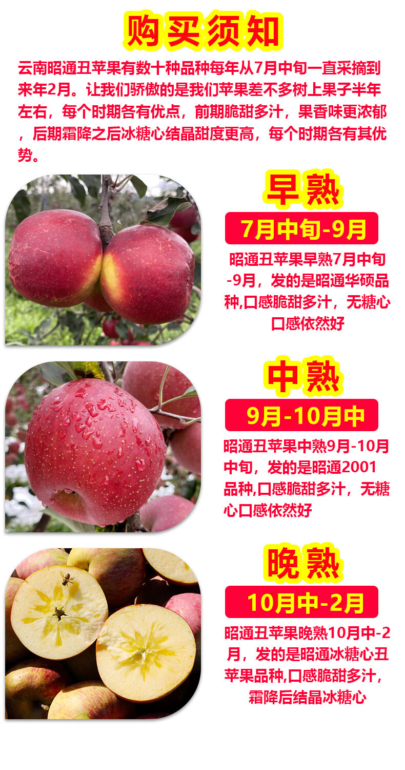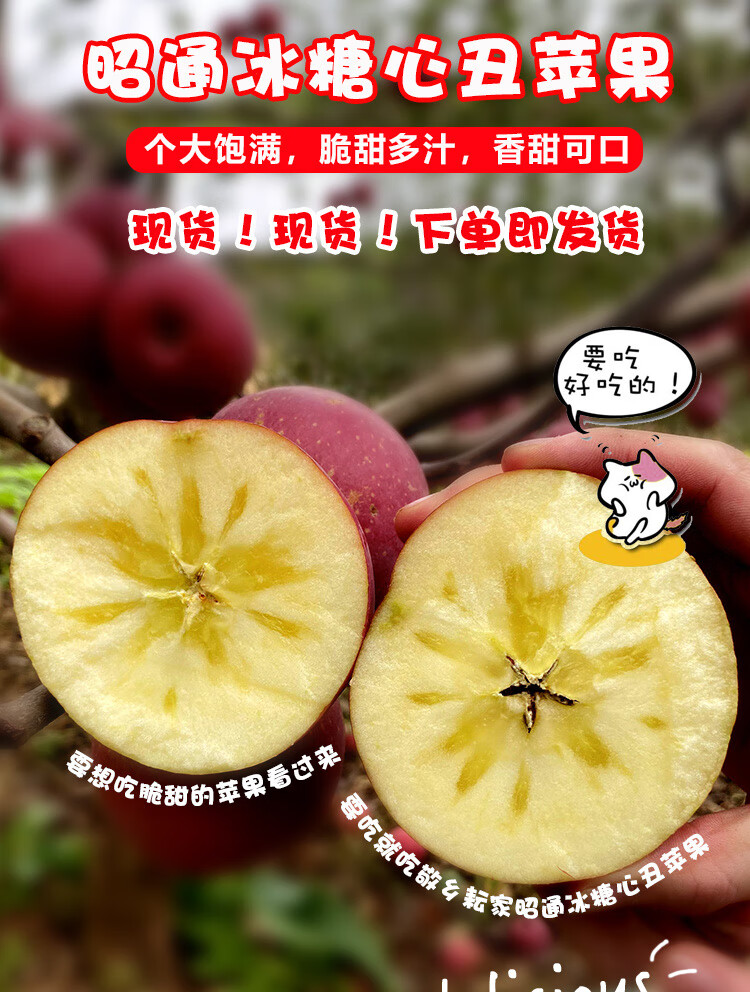Yunnan Zhaotong rock candy heart ugly apple fruit fresh seasonal whole box Fuji red dew apple crispy sweet Mid-Autumn Festival selected fruit single fruit 50-60mm 2 catties trial pack