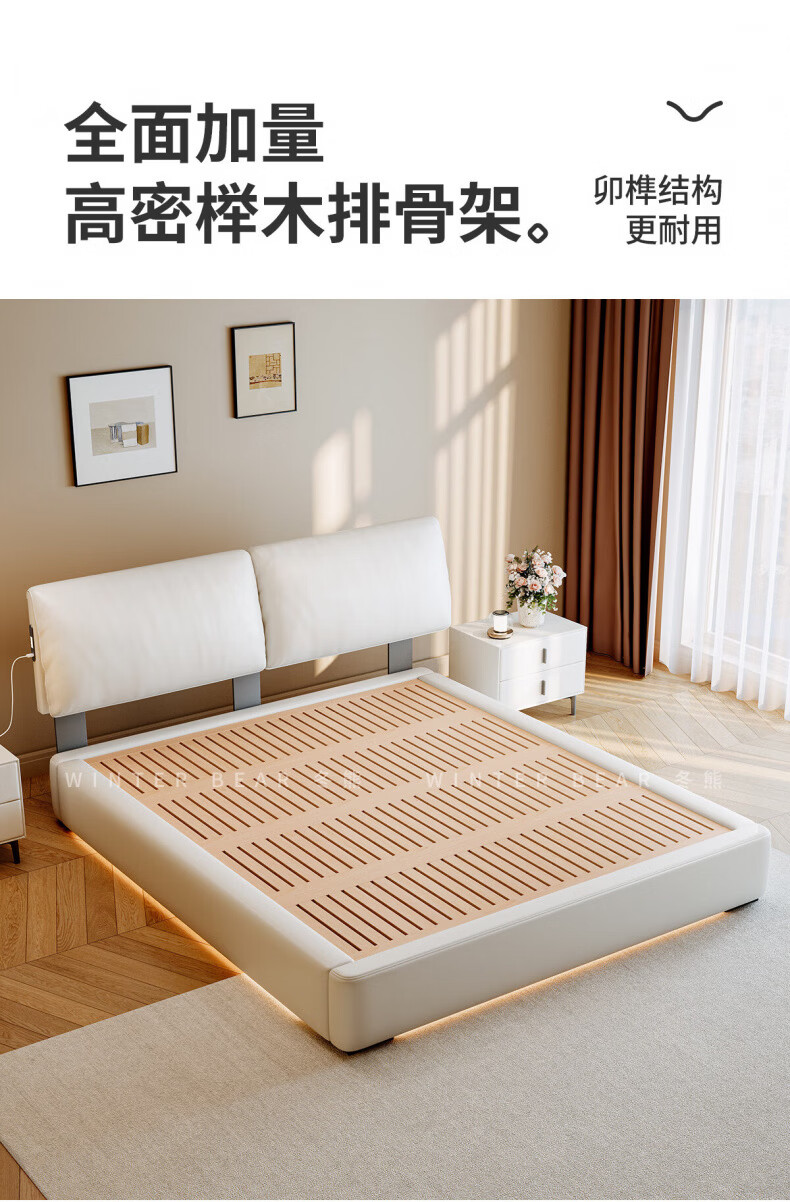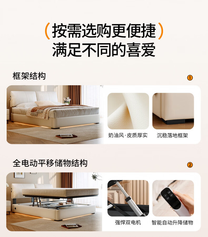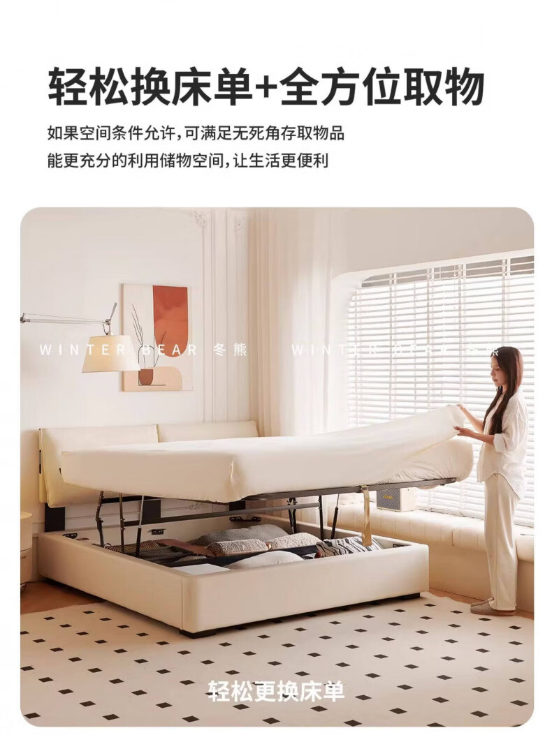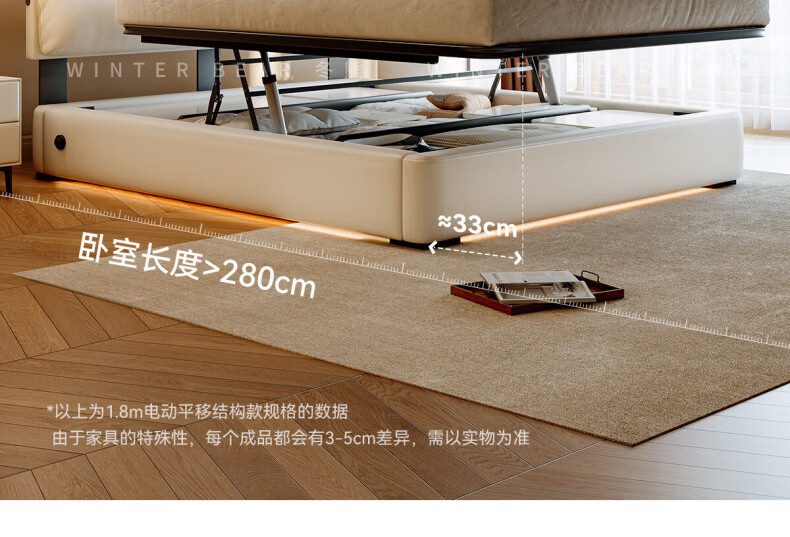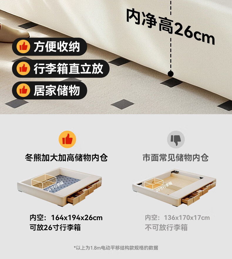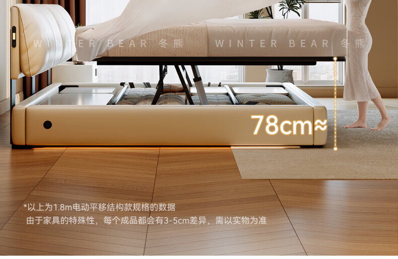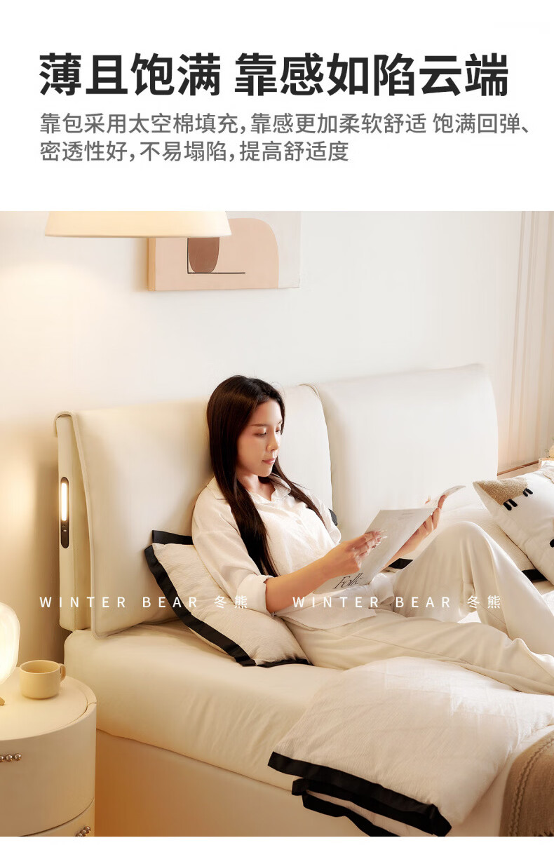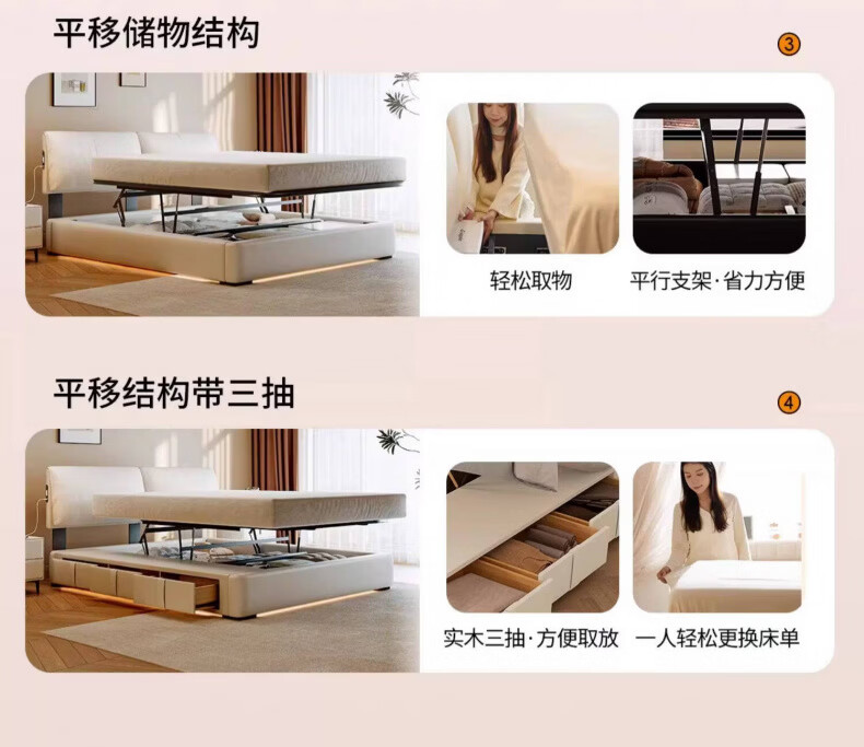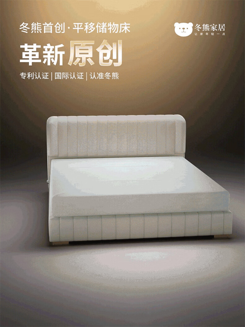 Dongxiong Ultra-Thin Leather Bedside Bed Master Bedroom Small Apartment Adjustable Double Elephant Ears High Box Storage Translation Bed Smart Version Imported Cowhide/All Solid Wood Beech Rib Frame 1500mm*2000mm Electric Translation Storage Structure